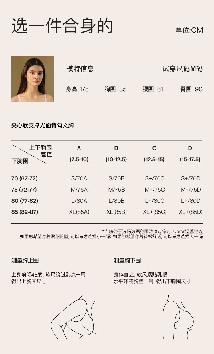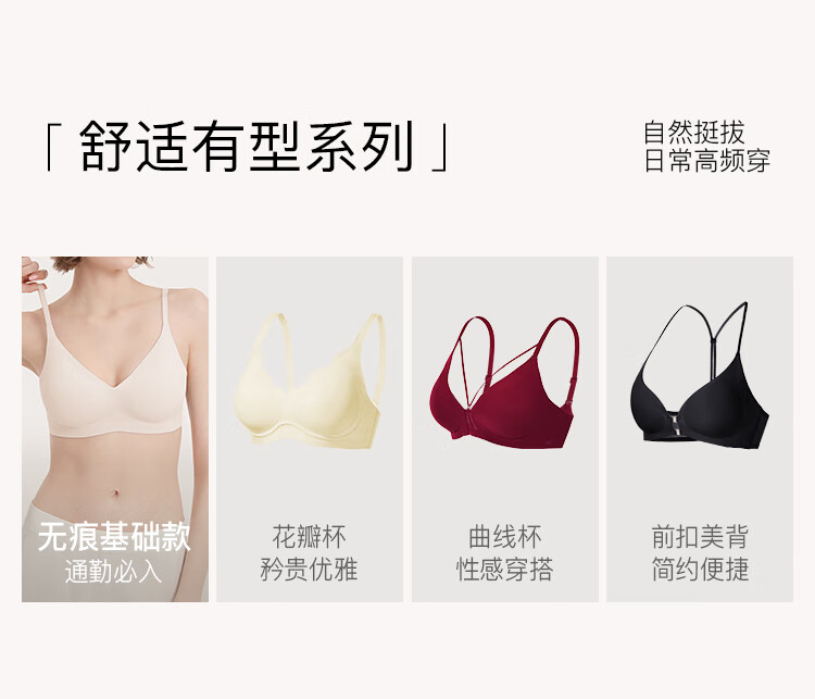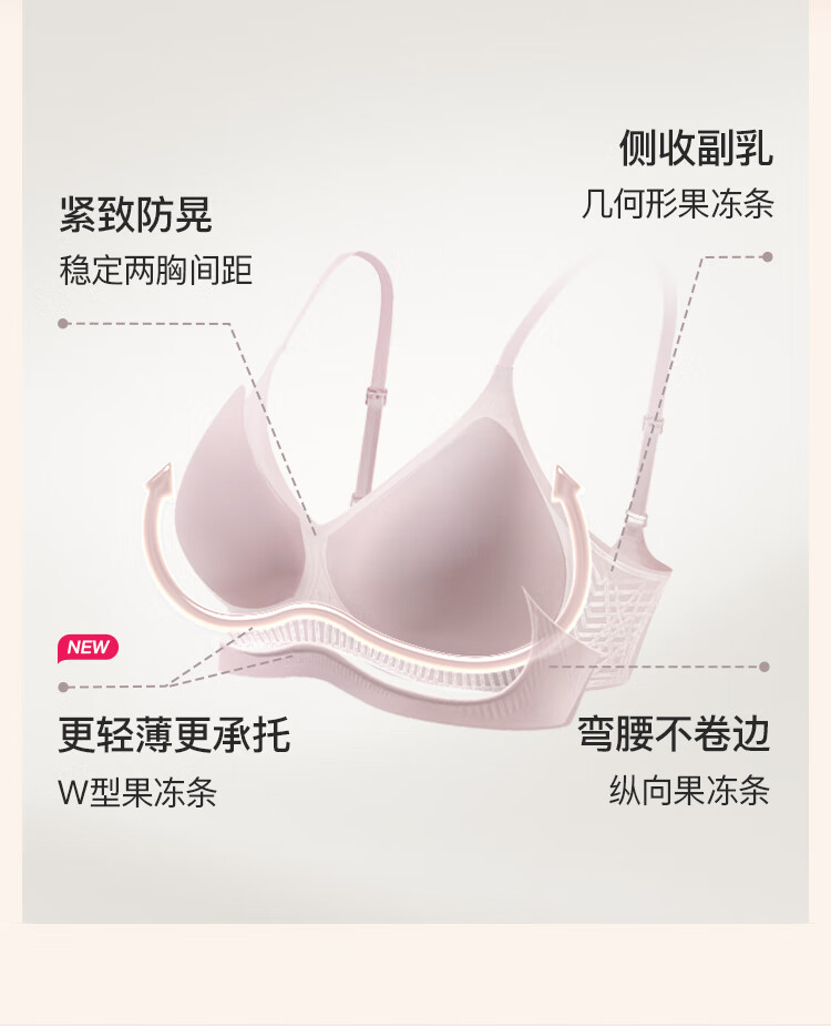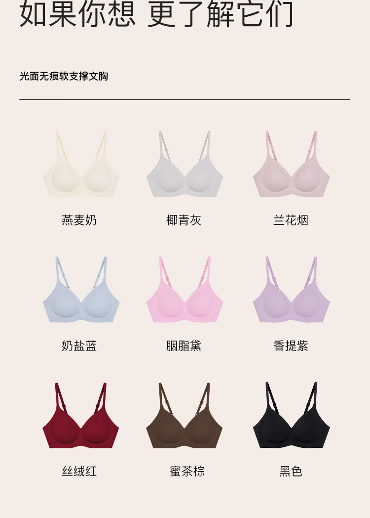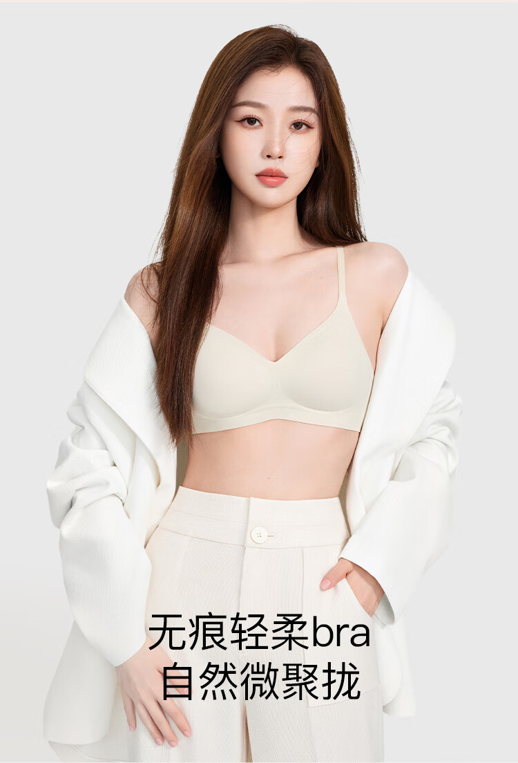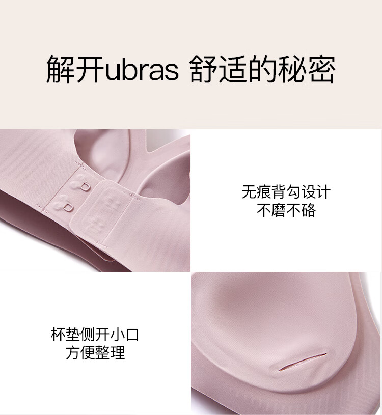 ubras[虞书欣同款]夹心软支撑光面小胸聚拢女无痕内衣隐形无钢圈文胸罩 【背勾款】燕麦奶色 M 75A/75B