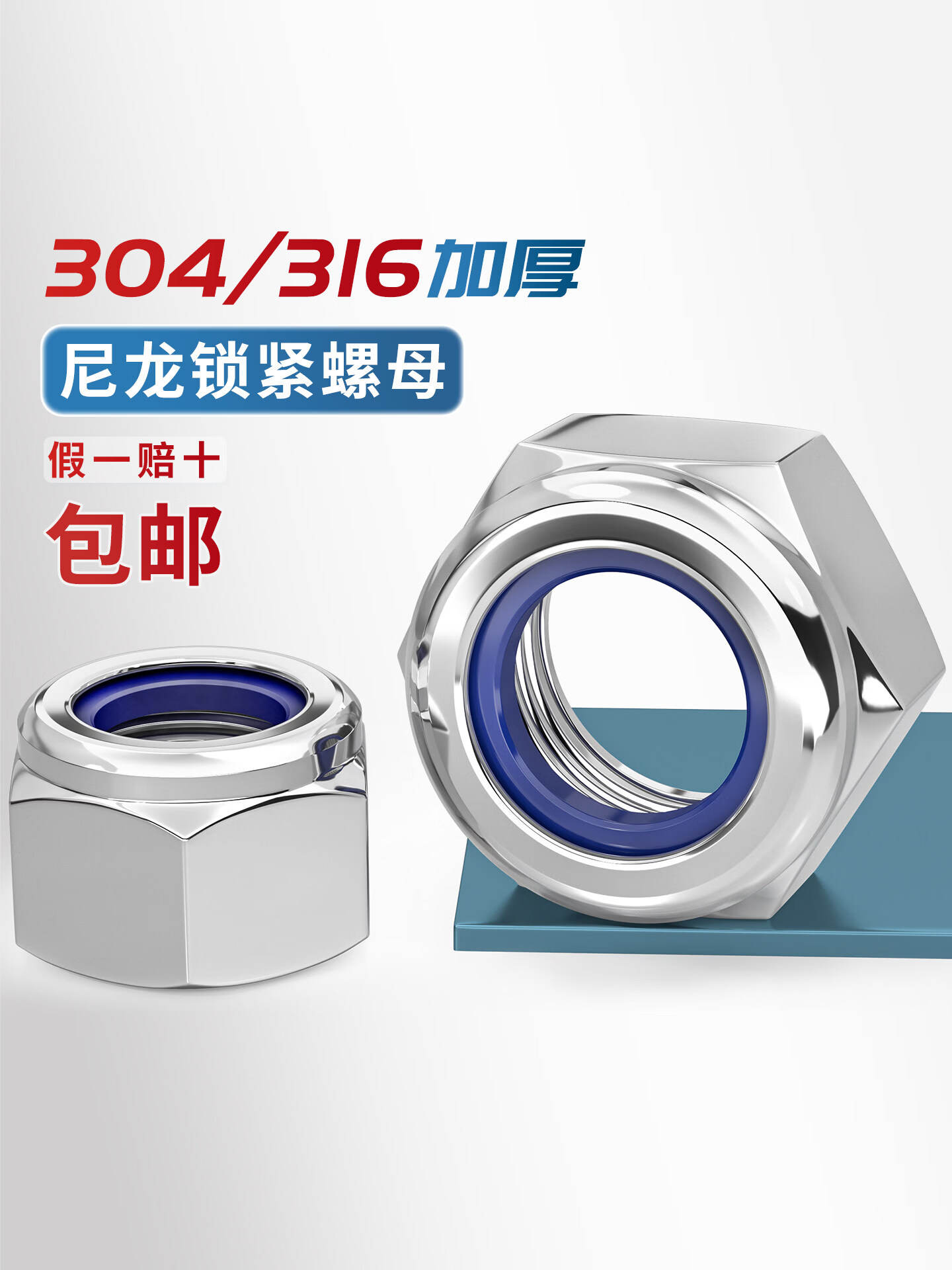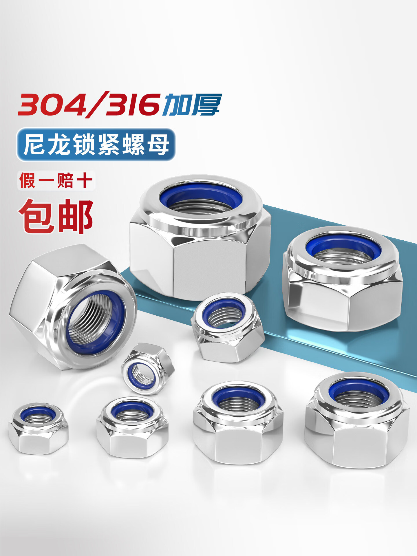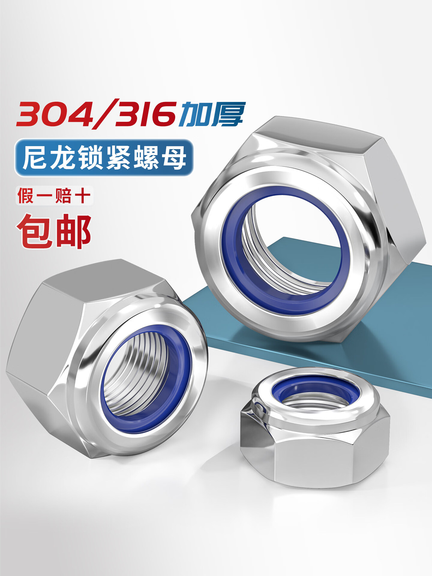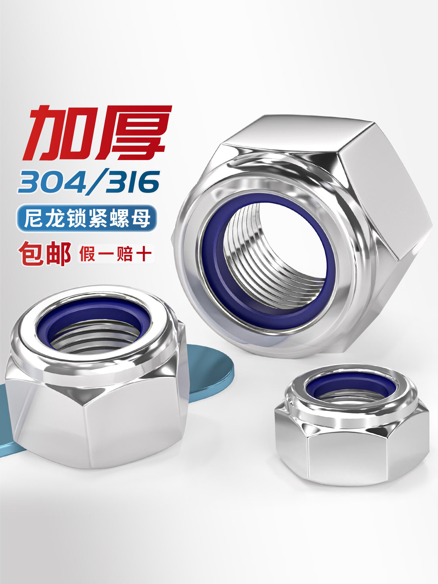 天卓五金304/316不锈钢尼龙加厚/薄型锁紧螺母六角防滑防松自锁螺丝帽M3M4 201尼龙防松螺母套装