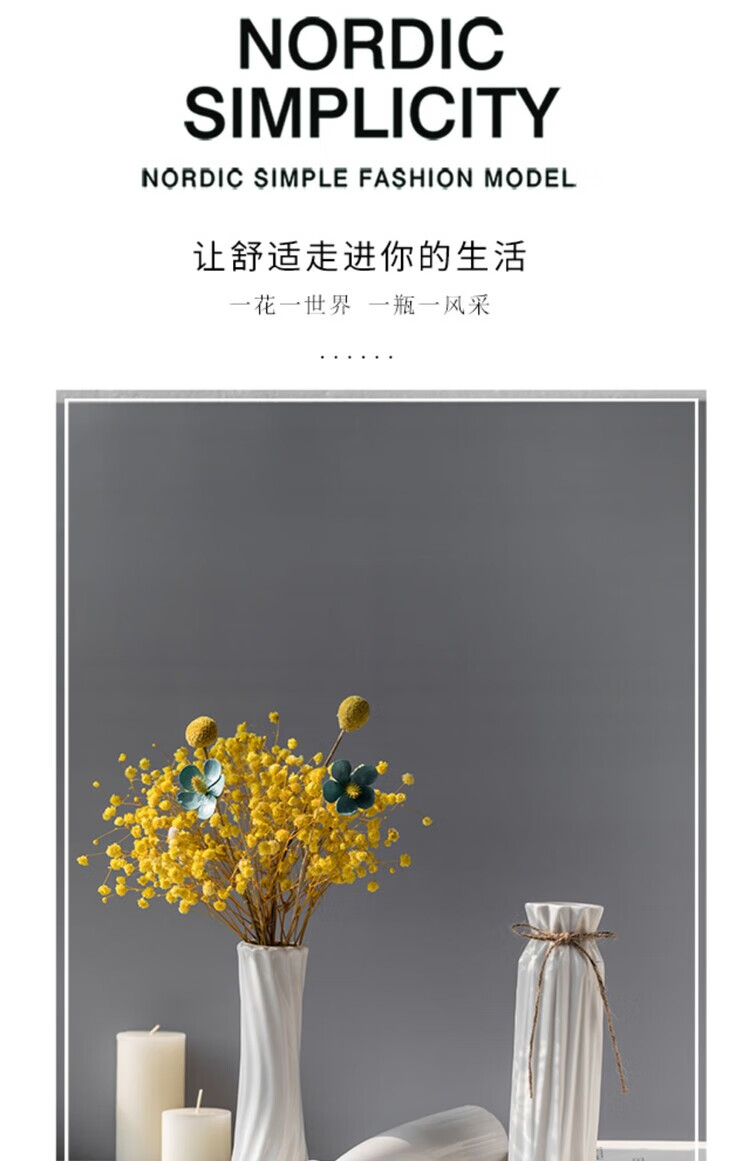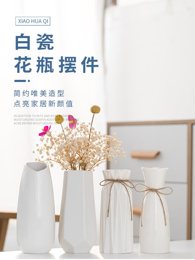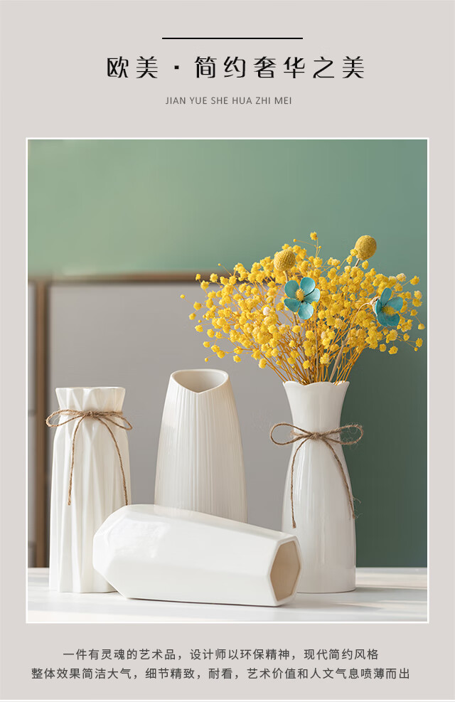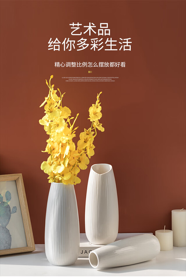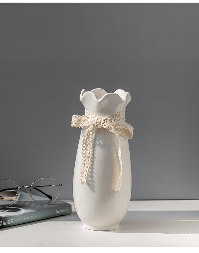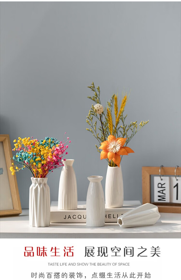 OYKTN白色简约陶瓷花瓶水养北欧现代创意家居客厅餐桌干花插花装饰摆件 白浅【20厘米】