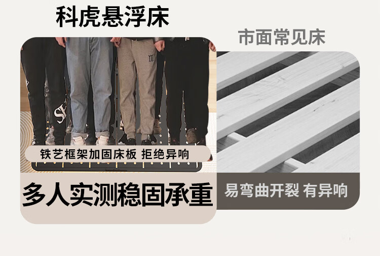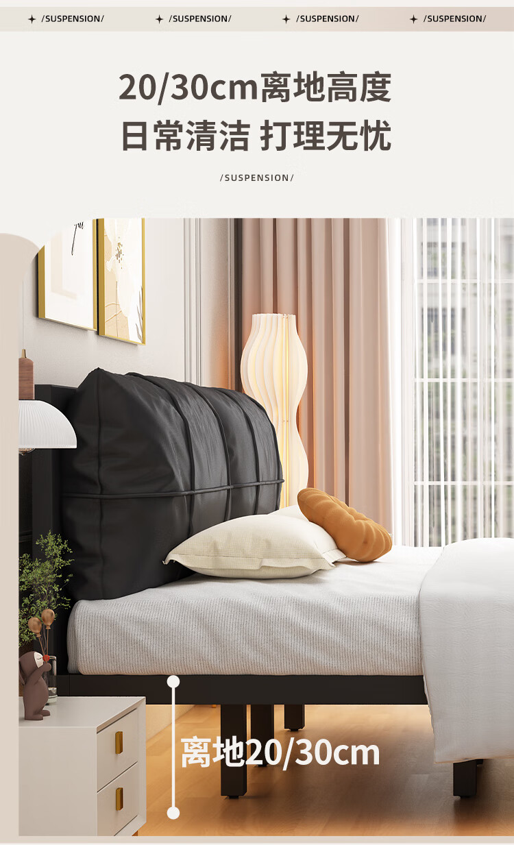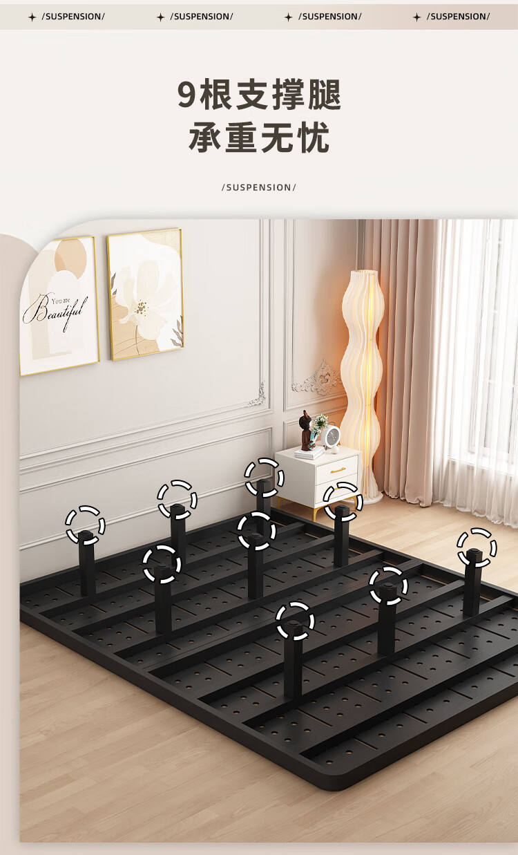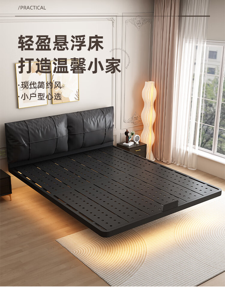 科虎悬浮床1.5米x2米主卧大床无床头床 炫酷黑·整铺床板 220*200cm