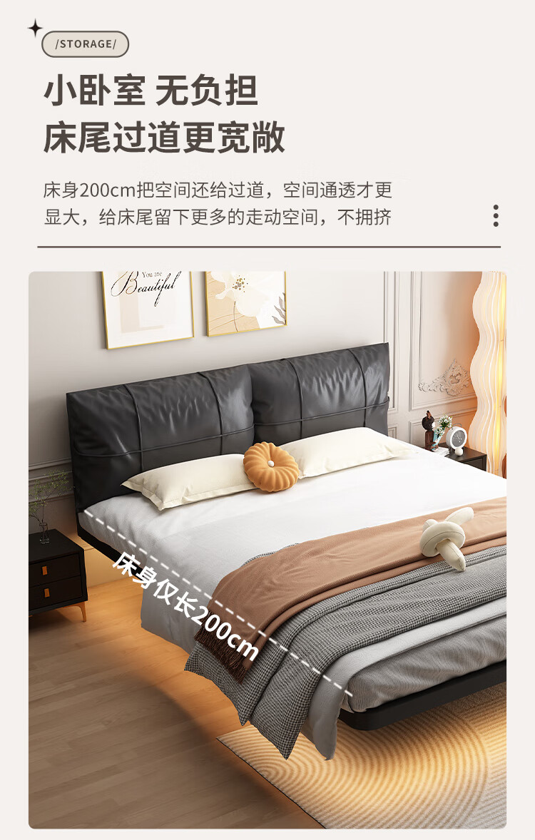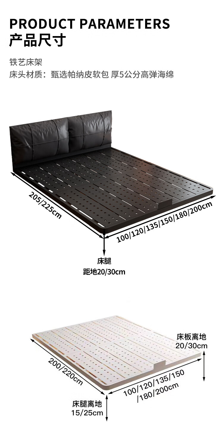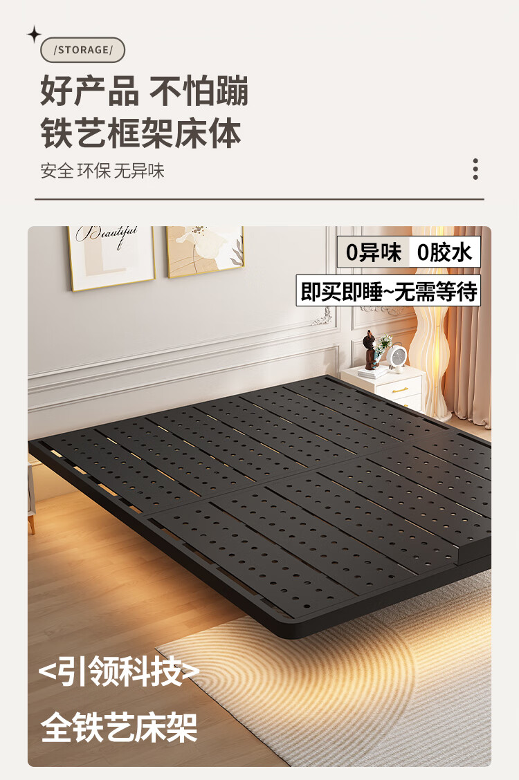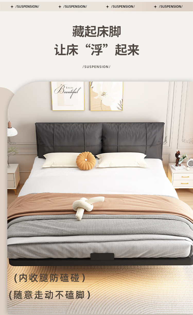 科虎悬浮床1.5米x2米主卧大床无床头床 炫酷黑·整铺床板 220*200cm