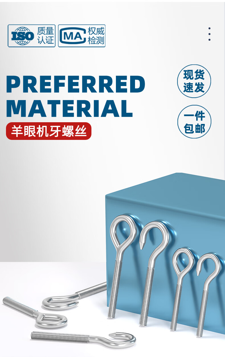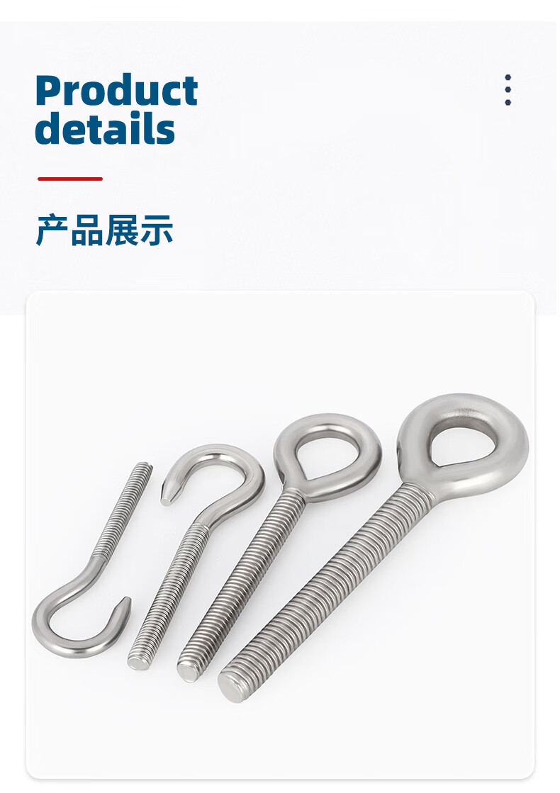 天卓五金304不锈钢吊环螺丝带圈挂钩螺杆圆环形钩形螺栓羊眼钩环M4M5-M20 M4(圈/正)-10个 正牙