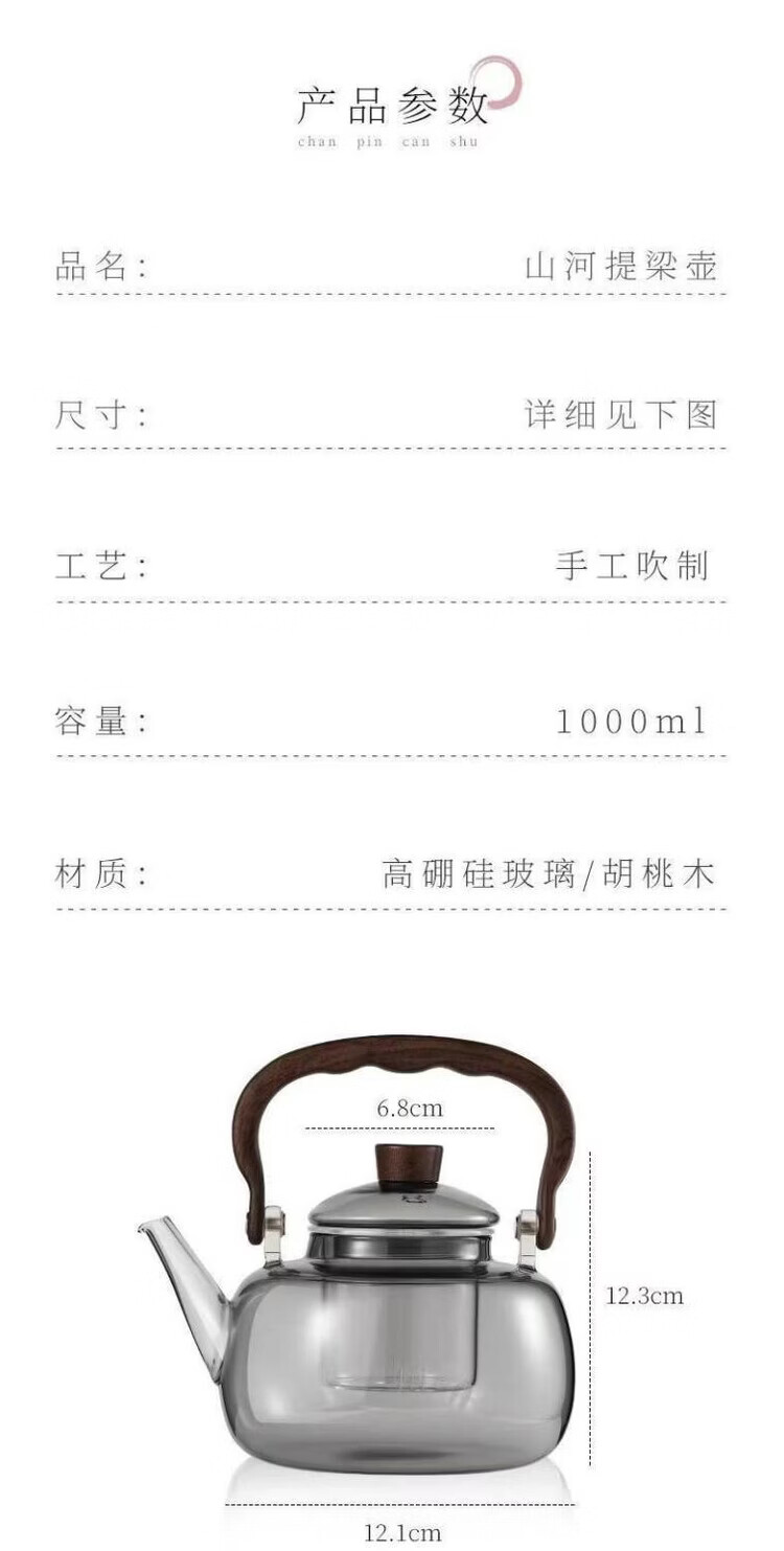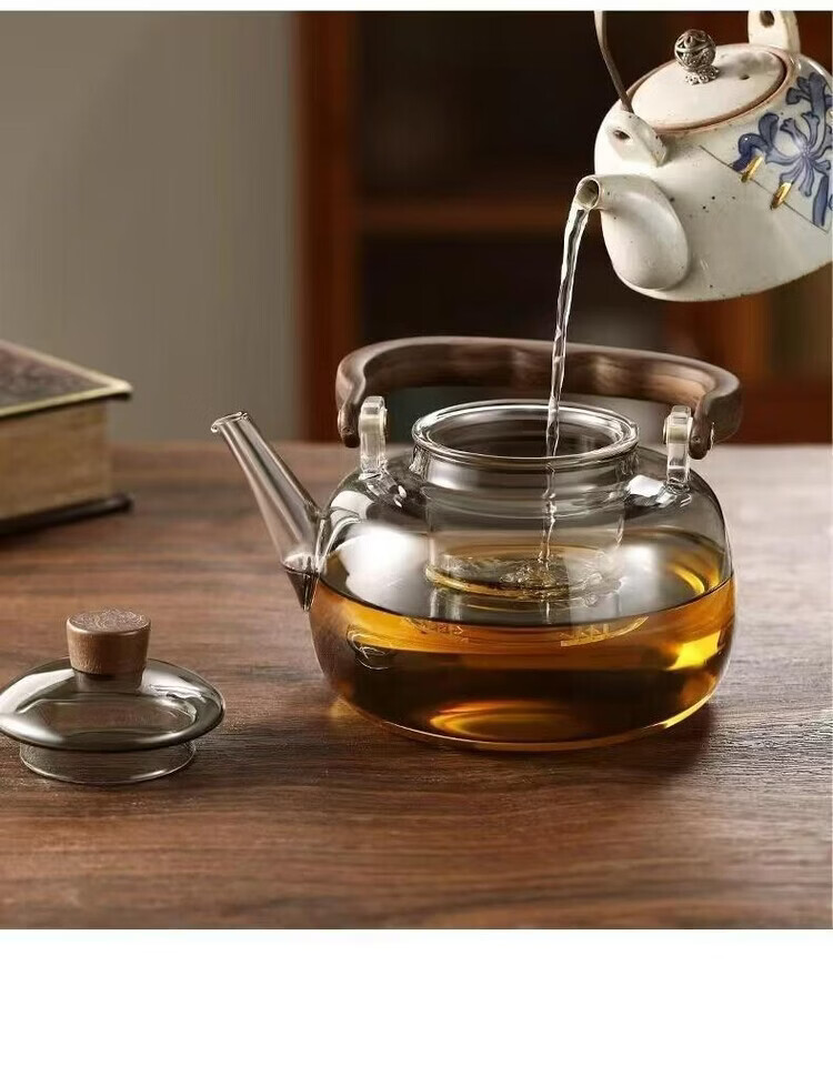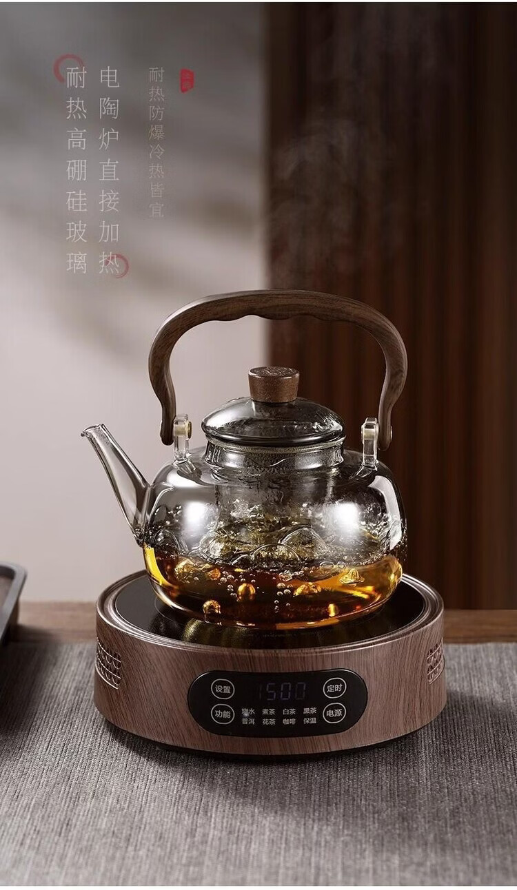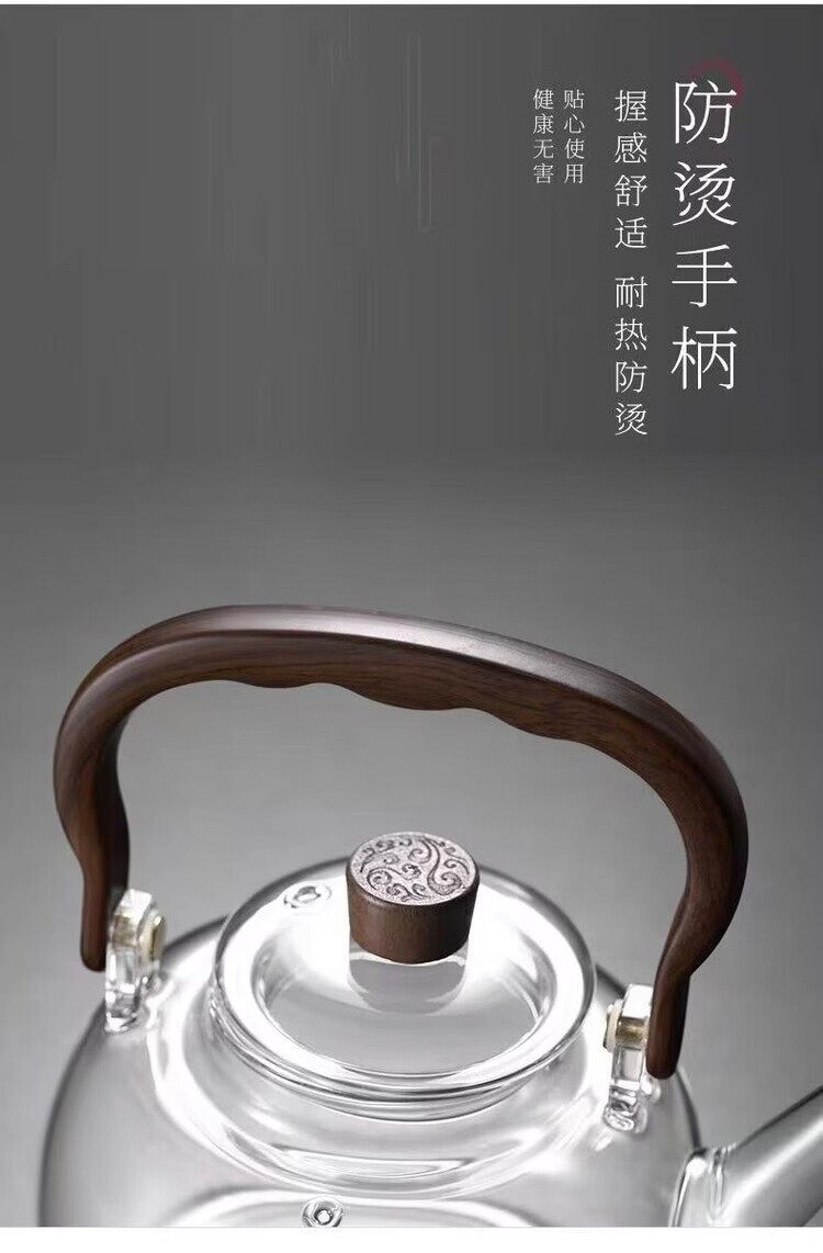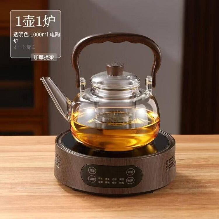 咏夏新款玻璃煮茶器耐高温提梁壶家用办公大容量加热壶电陶炉专用茶具 透明提梁壶单壶(1000毫升)