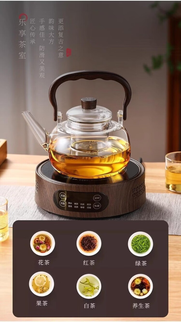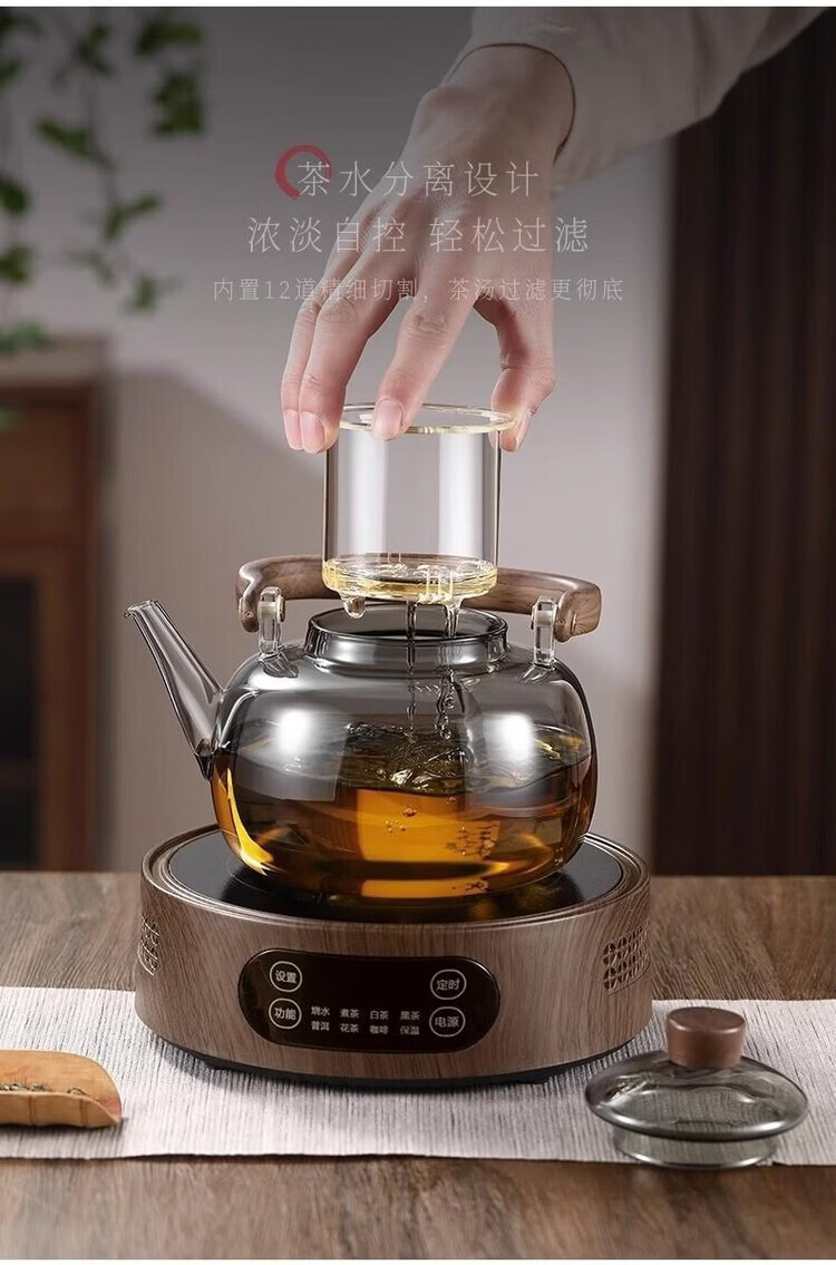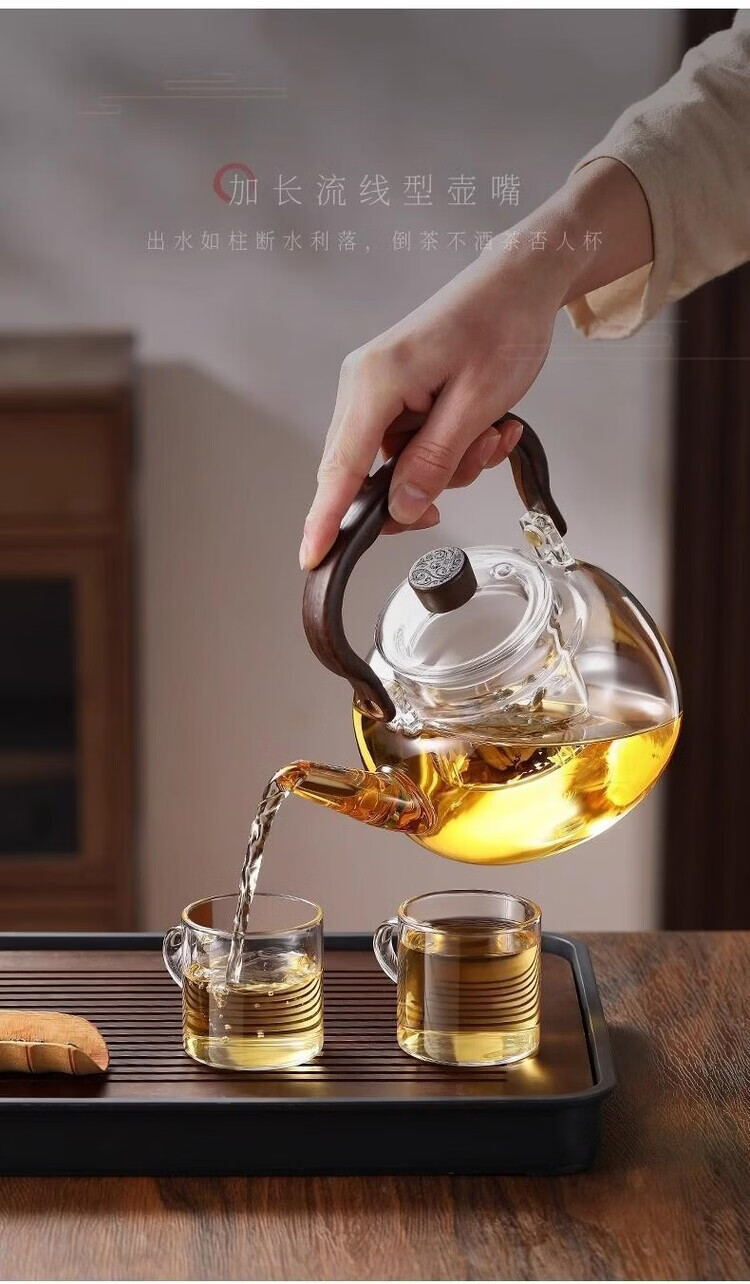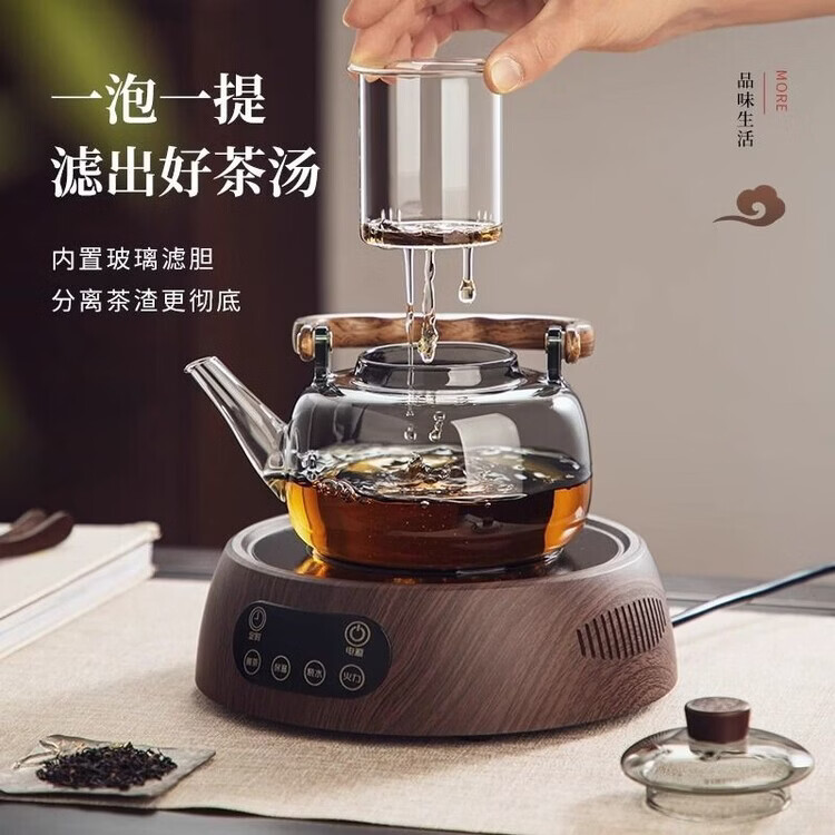 咏夏新款玻璃煮茶器耐高温提梁壶家用办公大容量加热壶电陶炉专用茶具 透明提梁壶单壶(1000毫升)