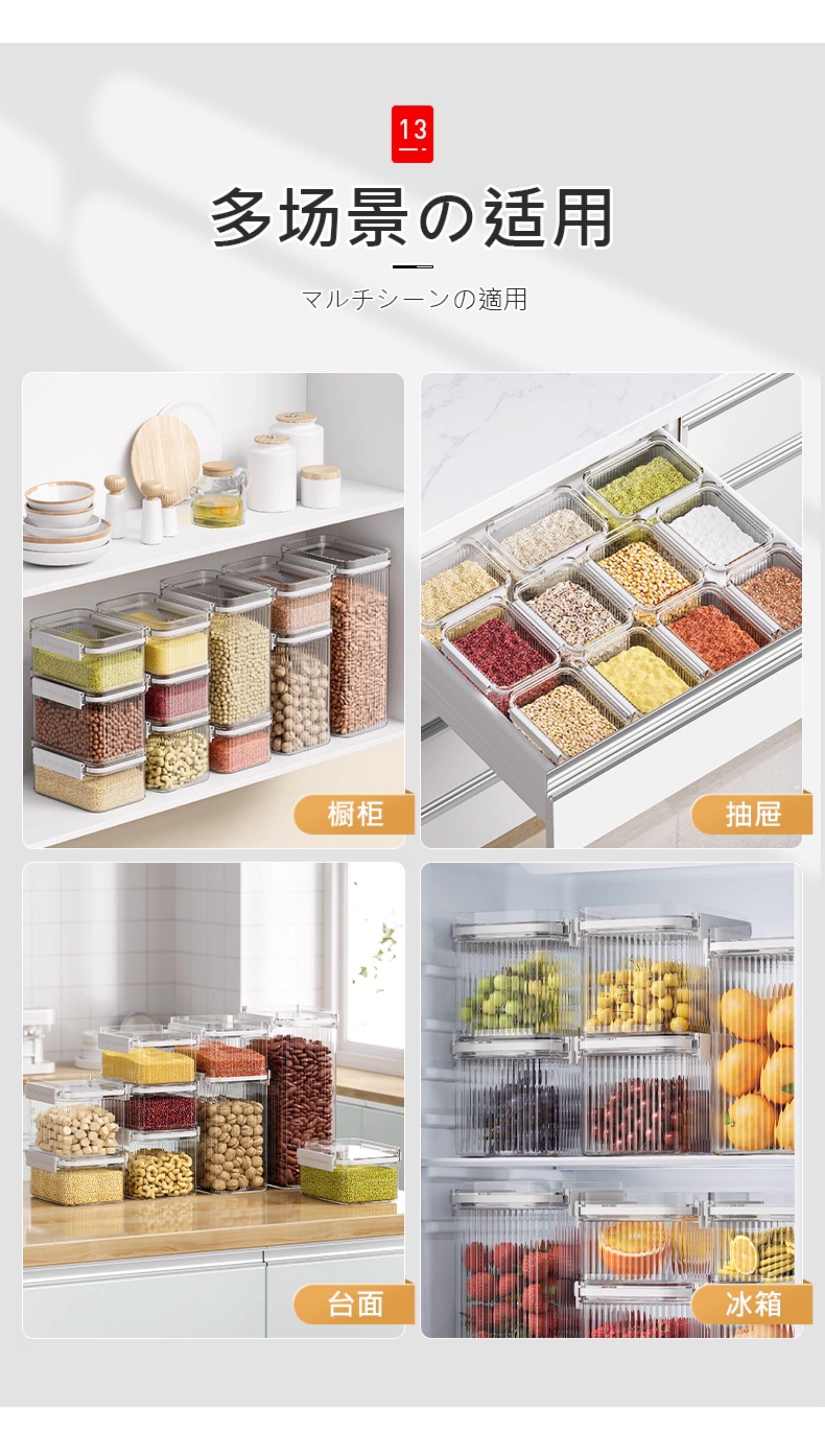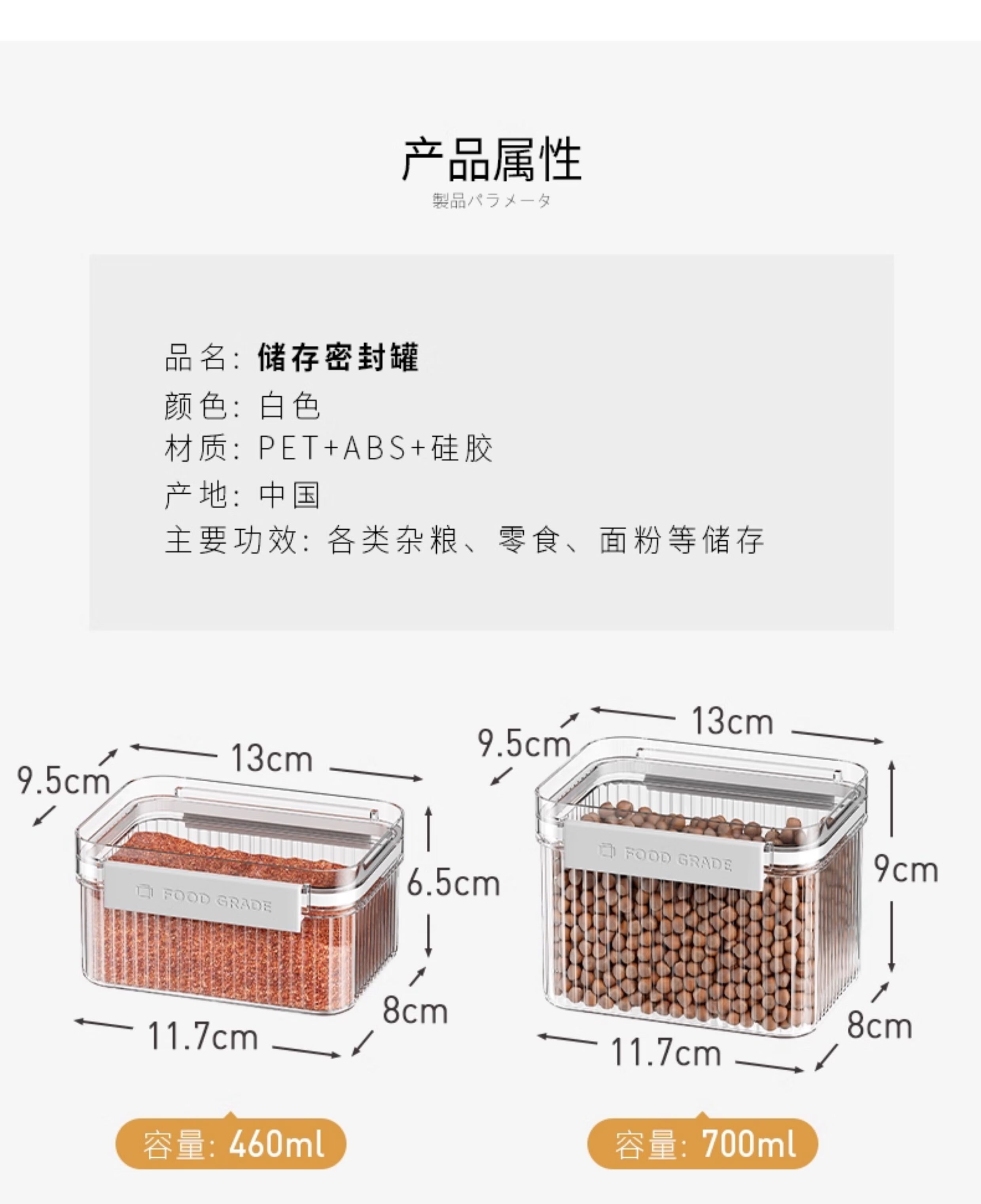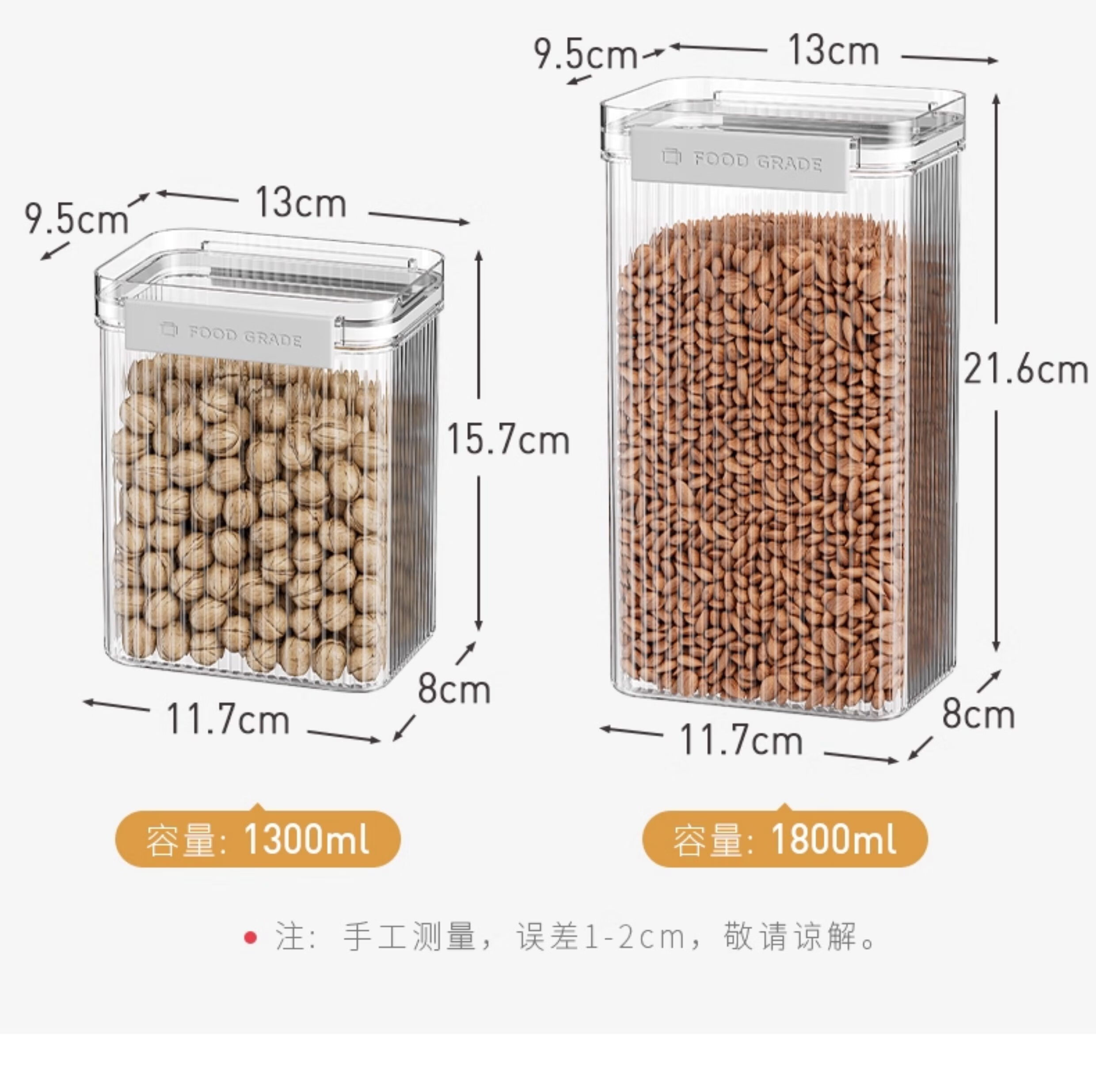 吱凡密封罐五谷杂粮收纳盒厨房干货香料豆子坚果防潮食品级透明储物罐 【1300ml*4】不密封包退