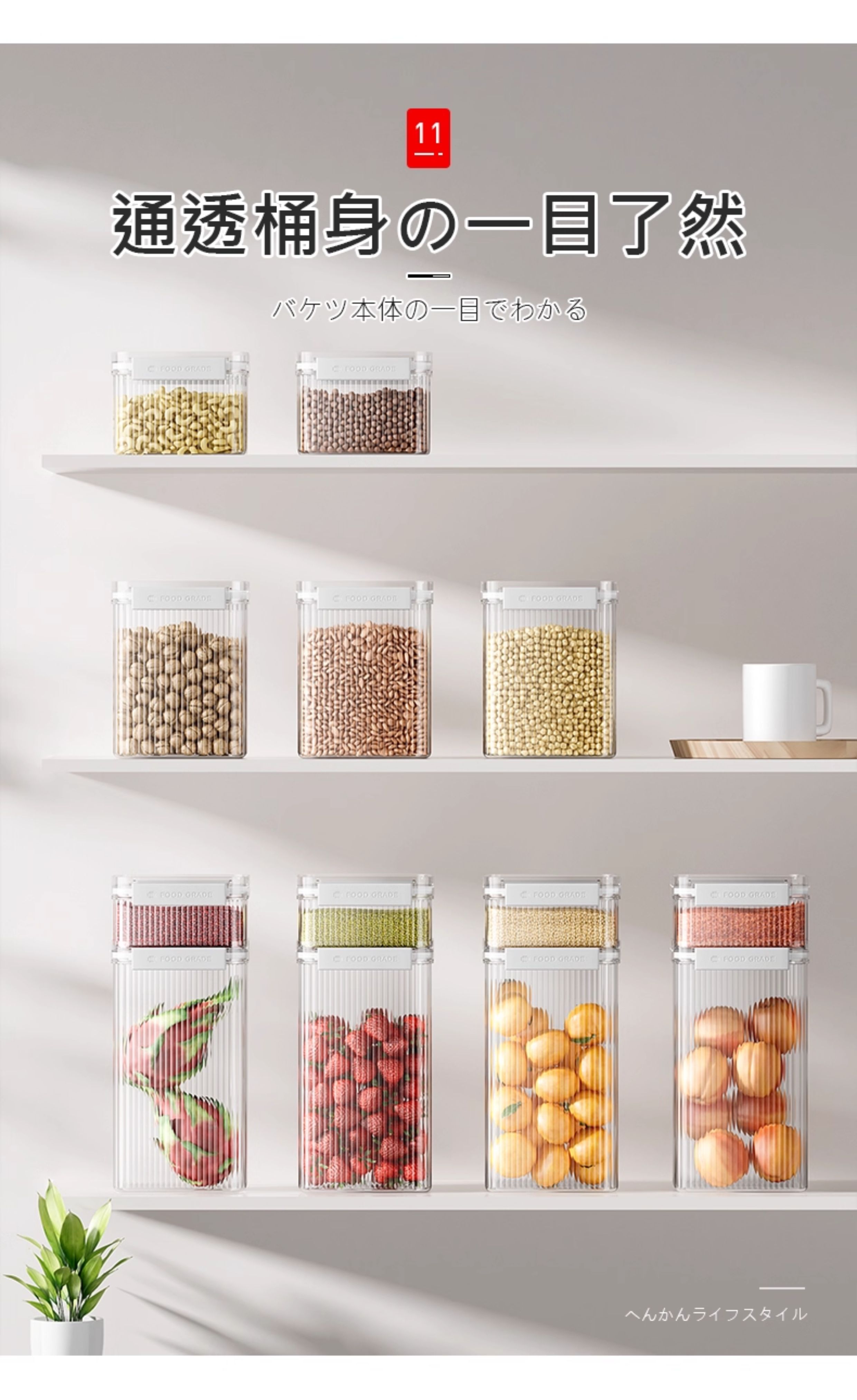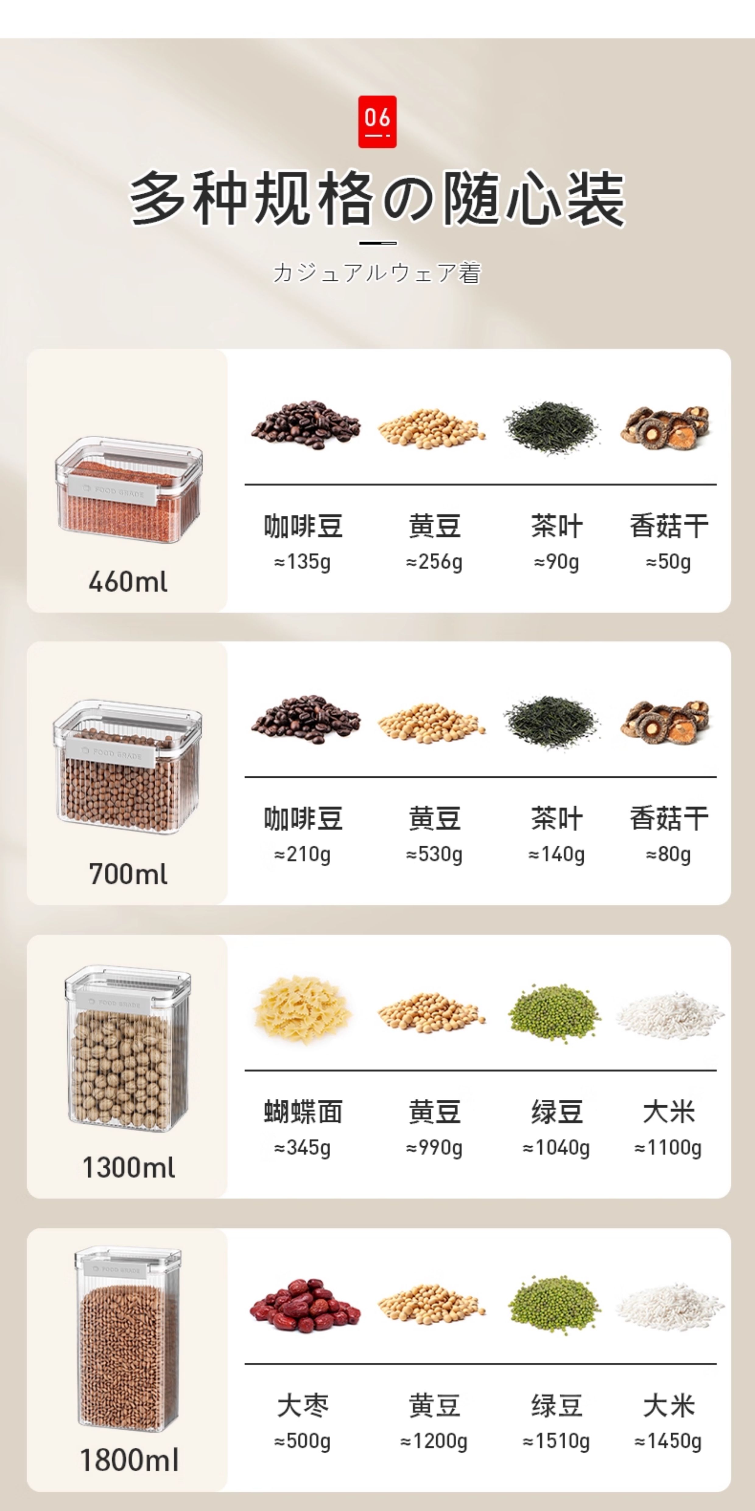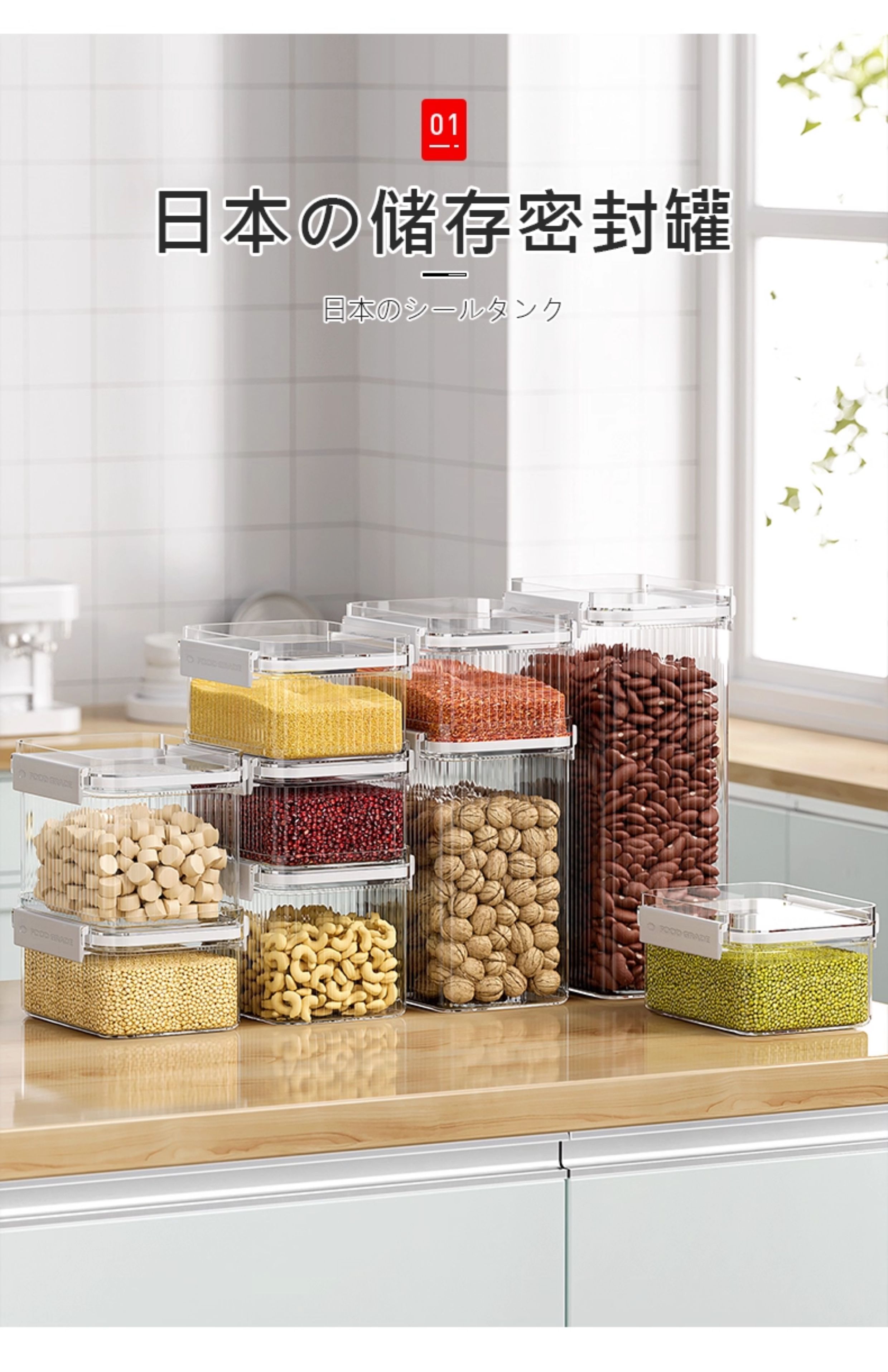 吱凡密封罐五谷杂粮收纳盒厨房干货香料豆子坚果防潮食品级透明储物罐 【1300ml*4】不密封包退