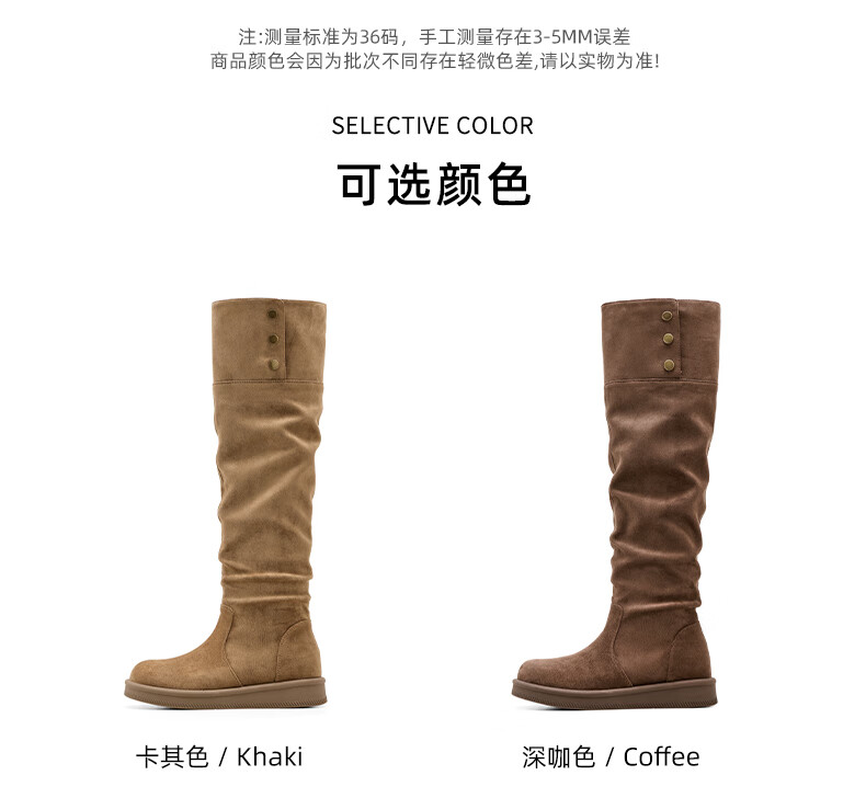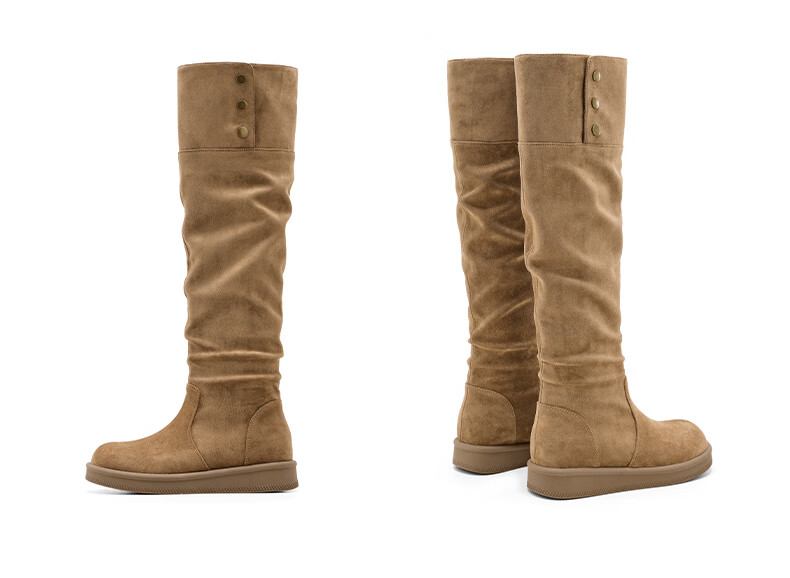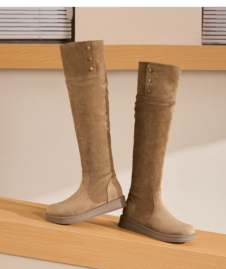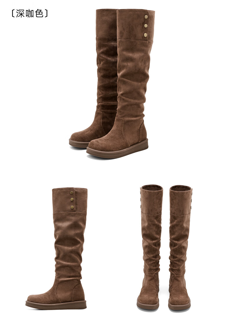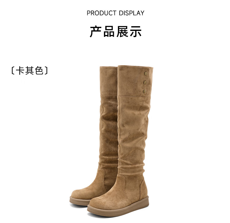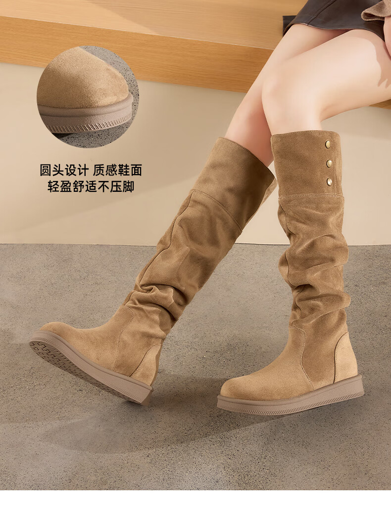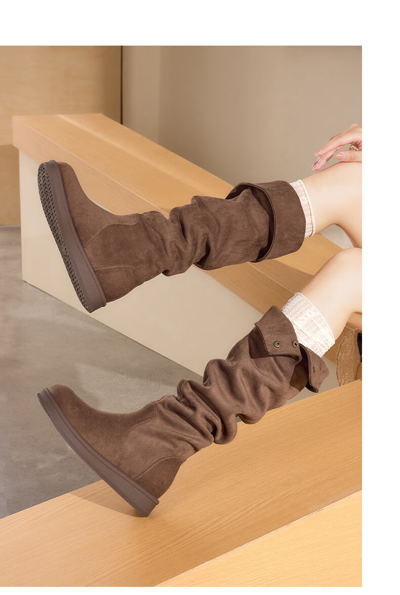 星期六长筒靴女2025新款秋冬爆款绒面不过膝女靴复古美拉德显瘦堆堆靴女 卡其色 37