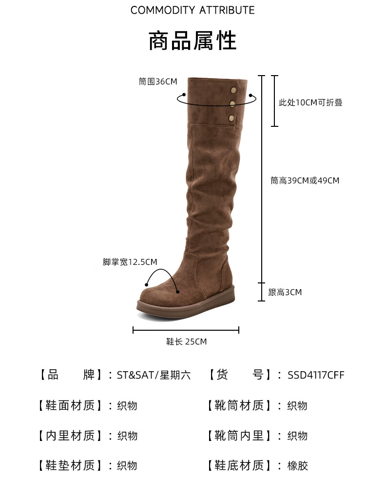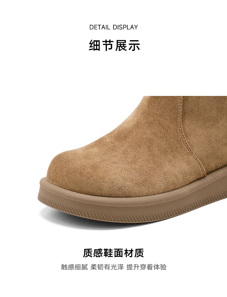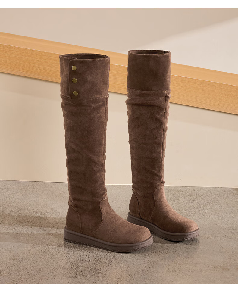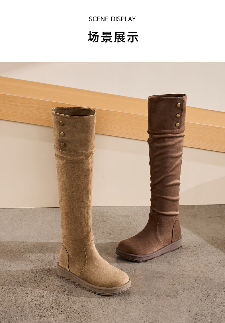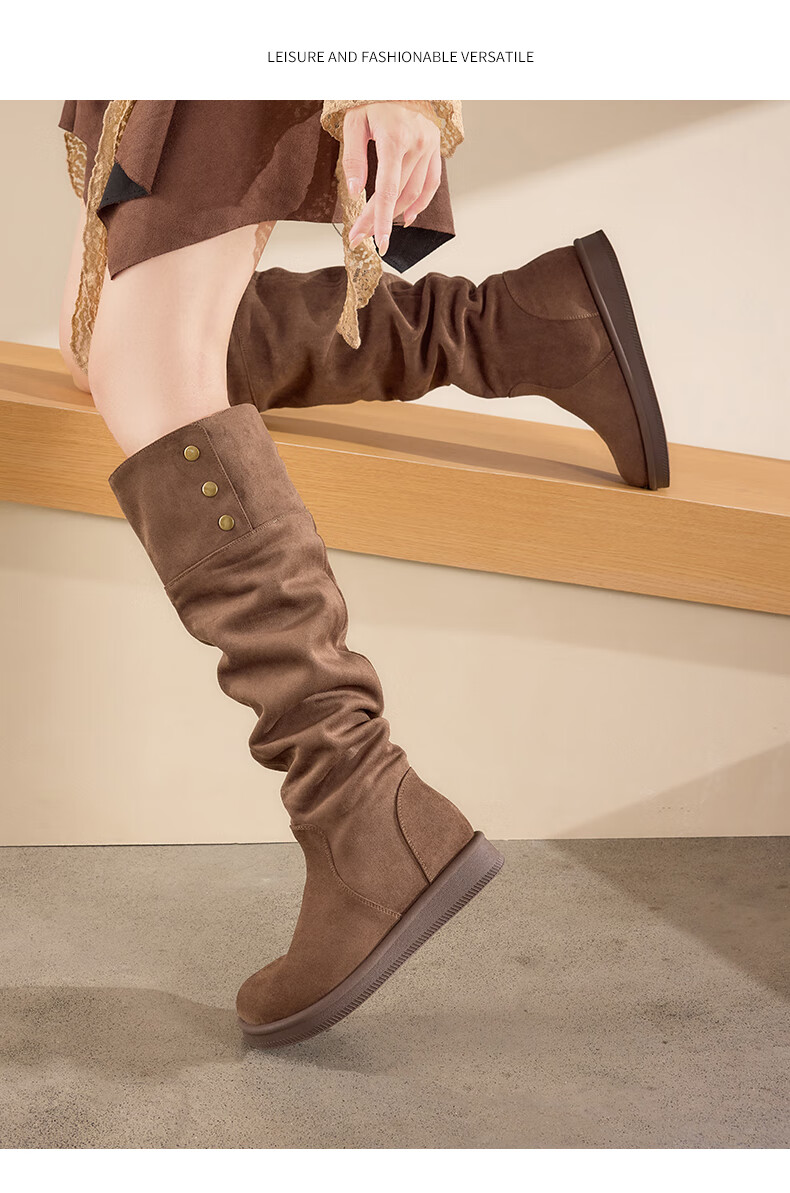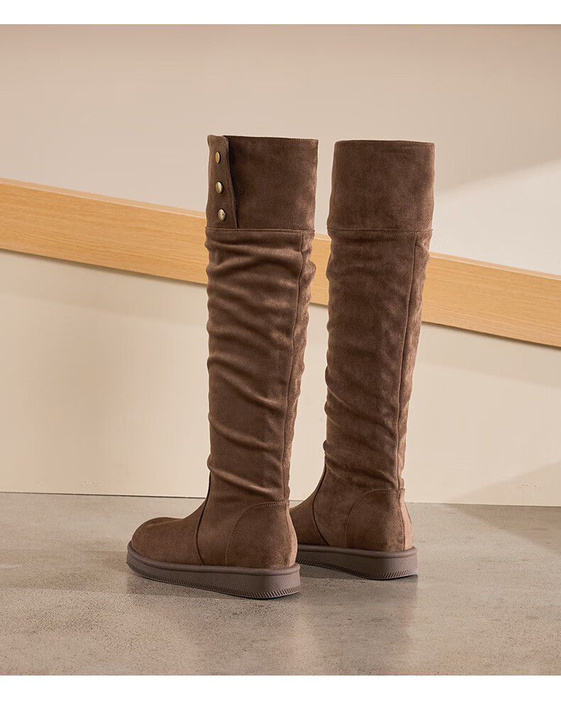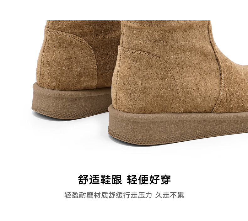 星期六长筒靴女2025新款秋冬爆款绒面不过膝女靴复古美拉德显瘦堆堆靴女 卡其色 37