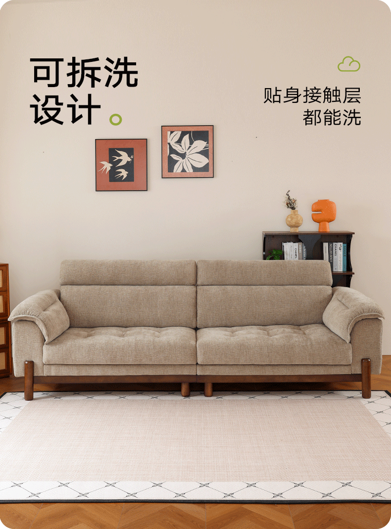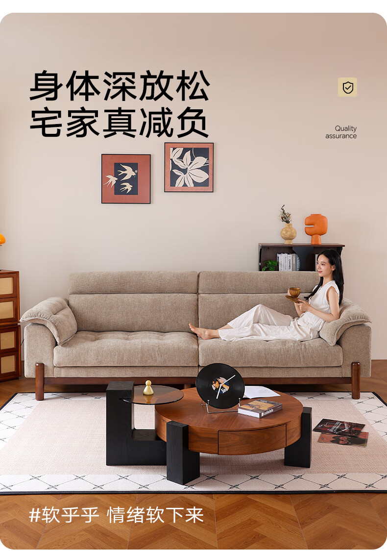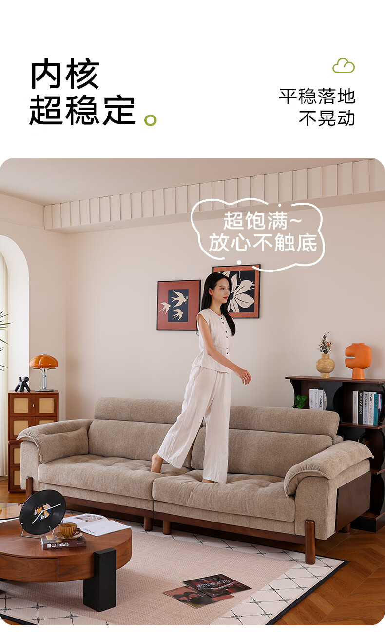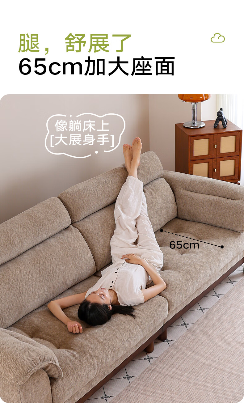 帝乐曼现代简约雪尼尔布艺沙发可拆洗客厅中古风小户型直排布艺棉麻沙发 3.0米直排【框架质保终身-可拆洗设计】 【豪华版】S级透气棉麻布+双层高回弹海绵