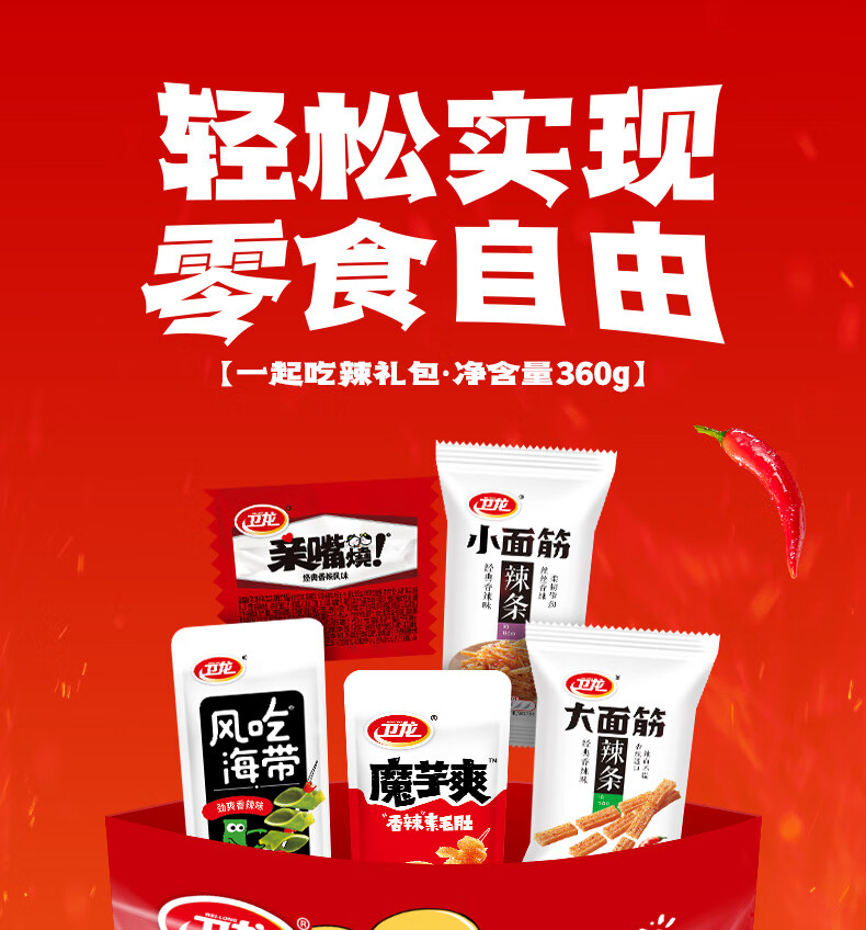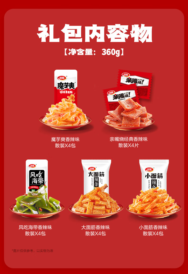 卫龙 辣条+魔芋爽+海带+亲嘴烧 零食大礼包360g 解馋小零食 聚会节日