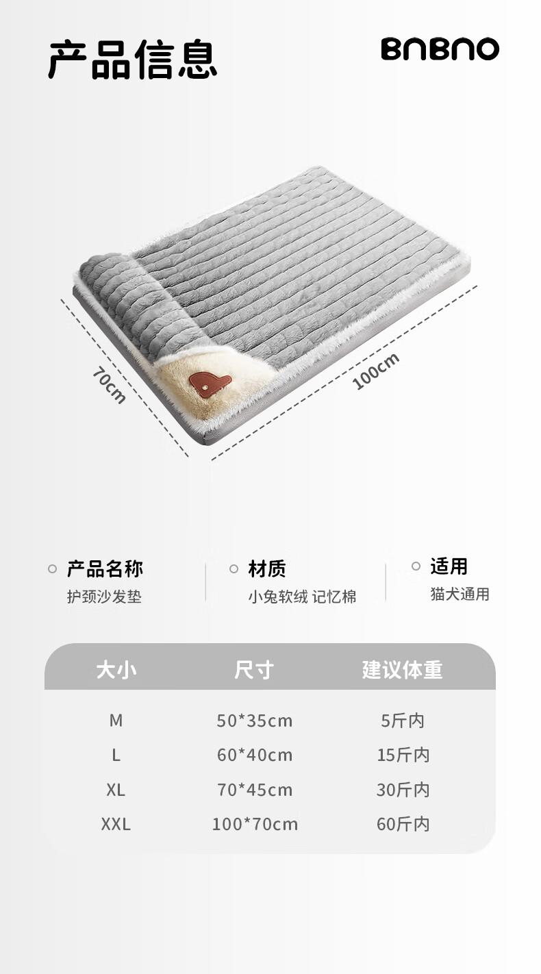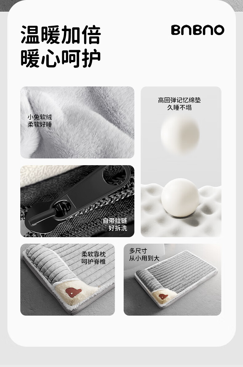 BNBNO狗垫子冬季睡垫四季通用狗窝地垫冬天保暖猫咪睡觉宠物床垫可拆洗