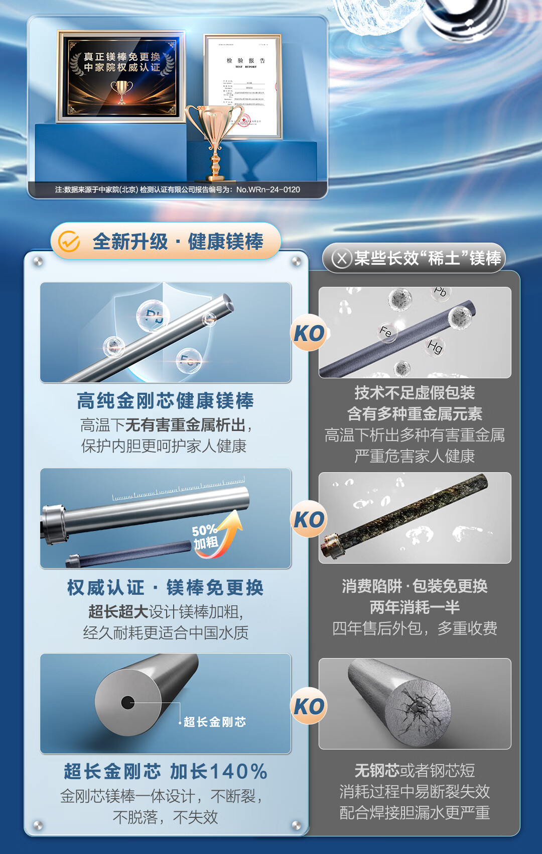 海尔(Haier)【咨询客服领补贴】热水器电热水器60升ME3一级能效家用储水式 金刚无缝胆速热镁棒免更换WIFI智联 60L 2200W 80%客户首选ME3行业第一