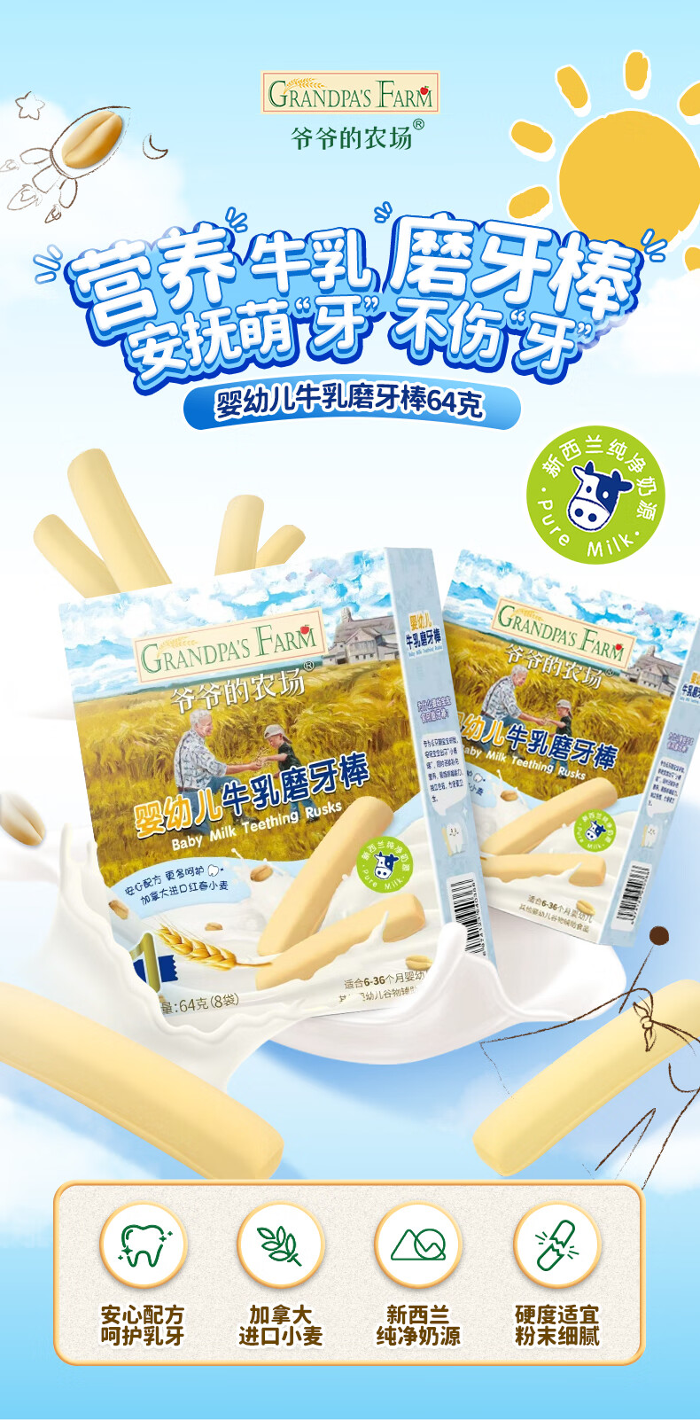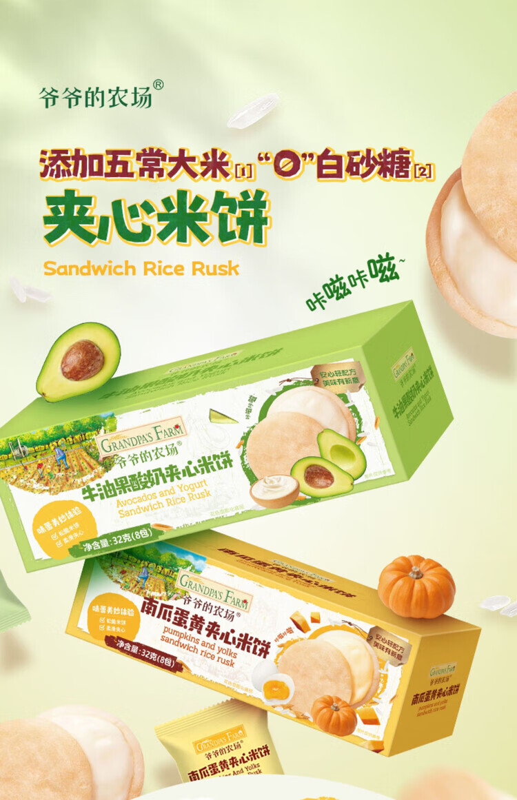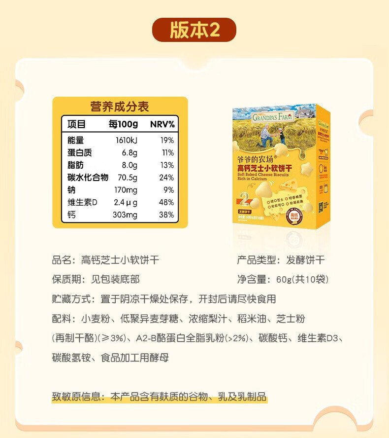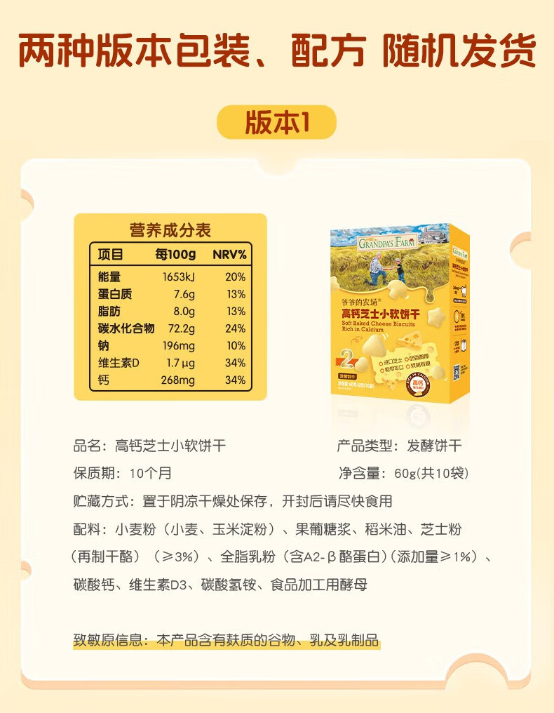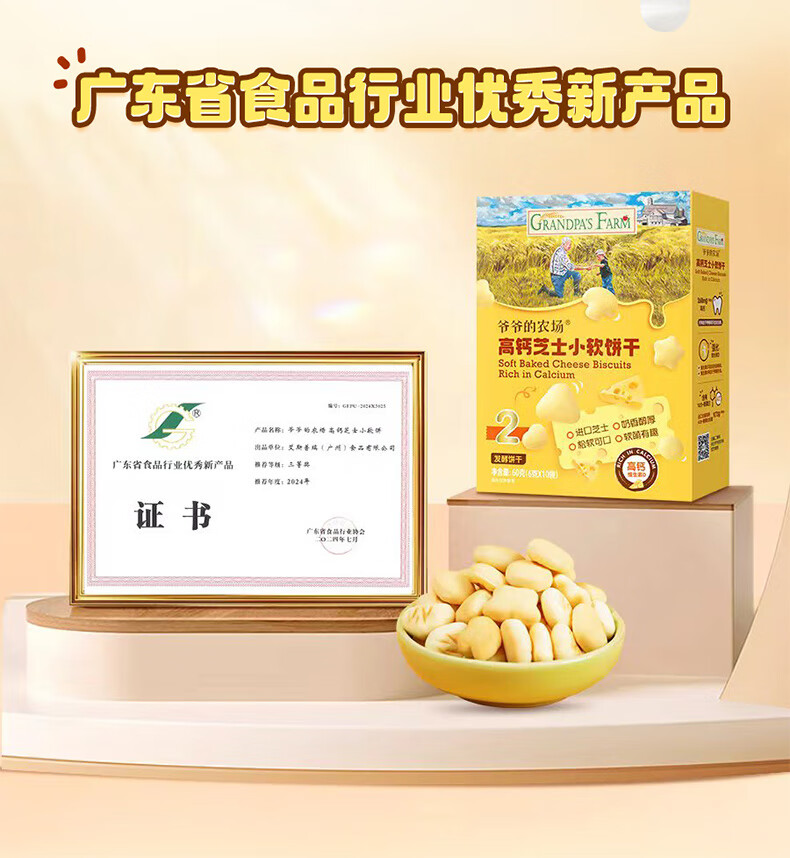 爷爷的农场宝宝零食小软饼干 牛乳磨牙棒夹心米饼虾片儿童零食 【加钙+维D】高钙芝士小软饼60g