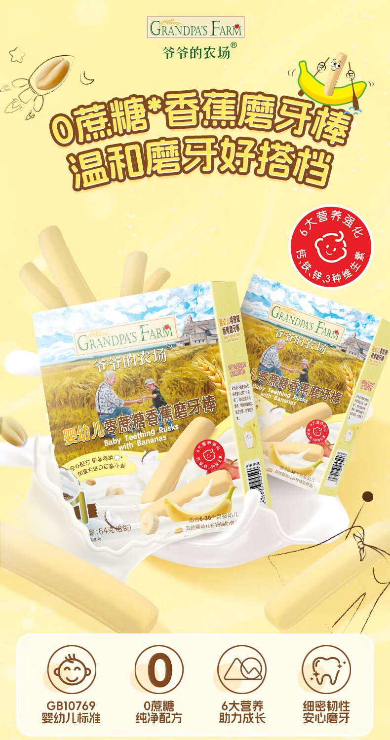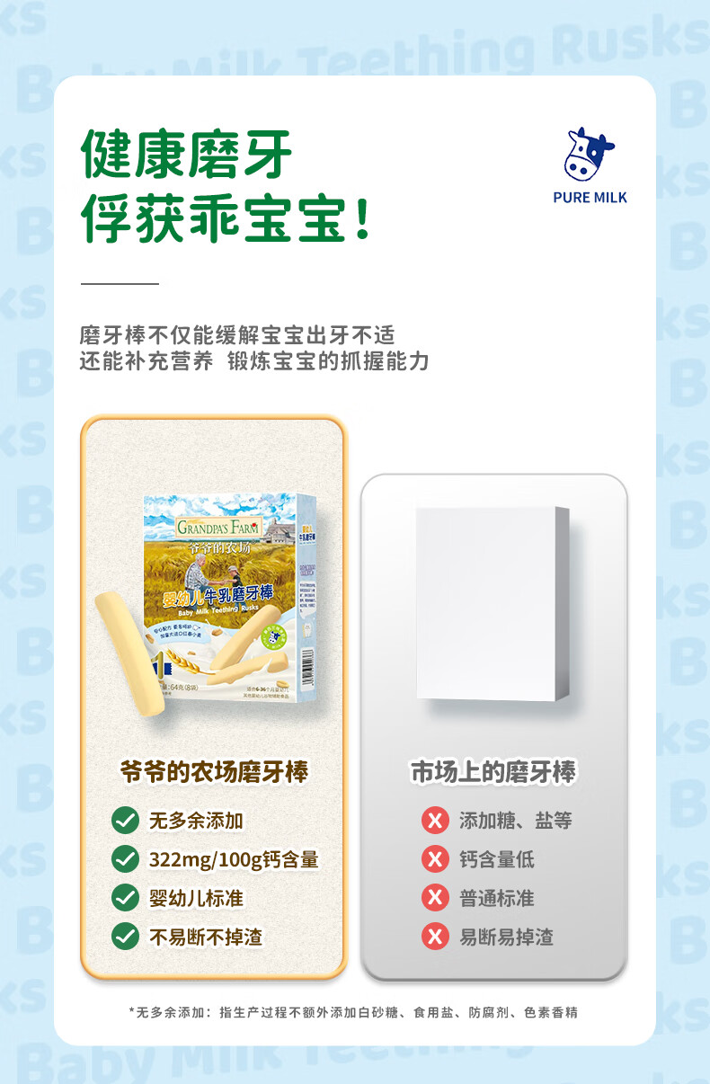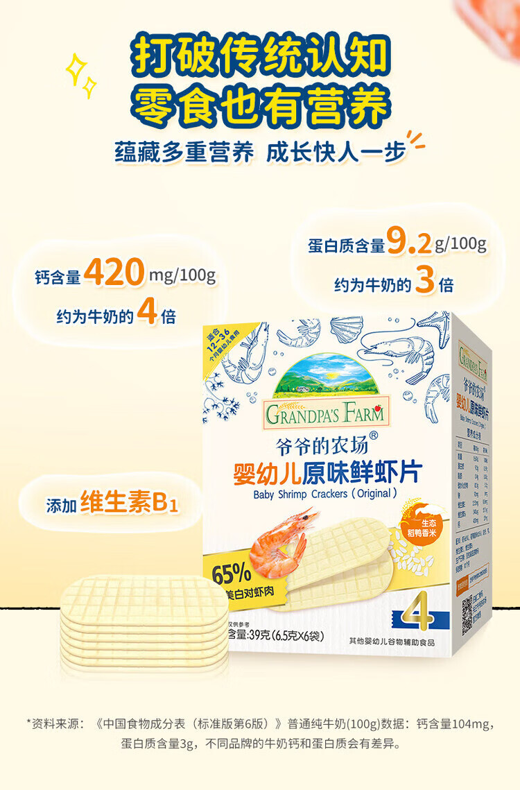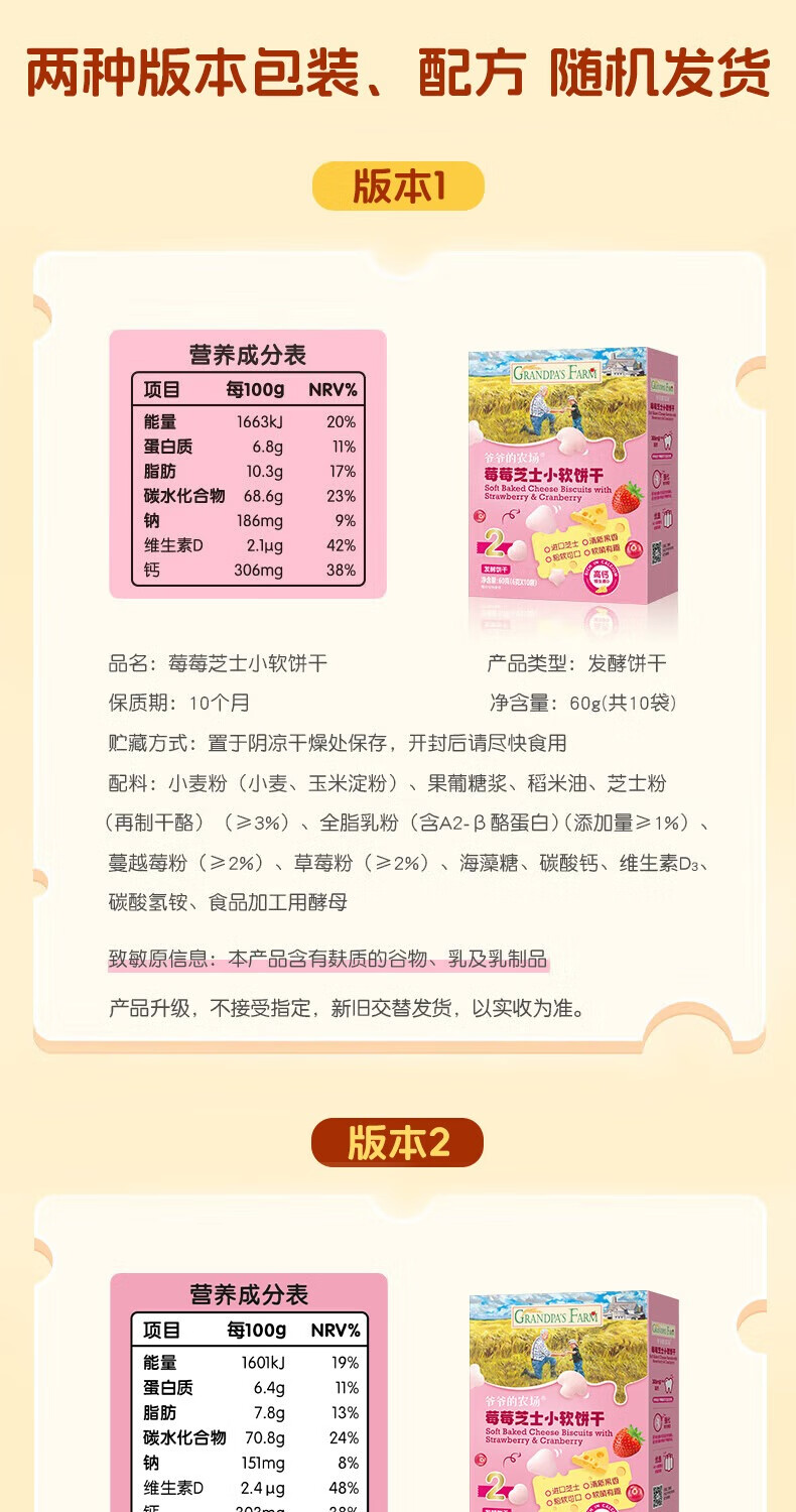 爷爷的农场宝宝零食小软饼干 牛乳磨牙棒夹心米饼虾片儿童零食 【加钙+维D】高钙芝士小软饼60g