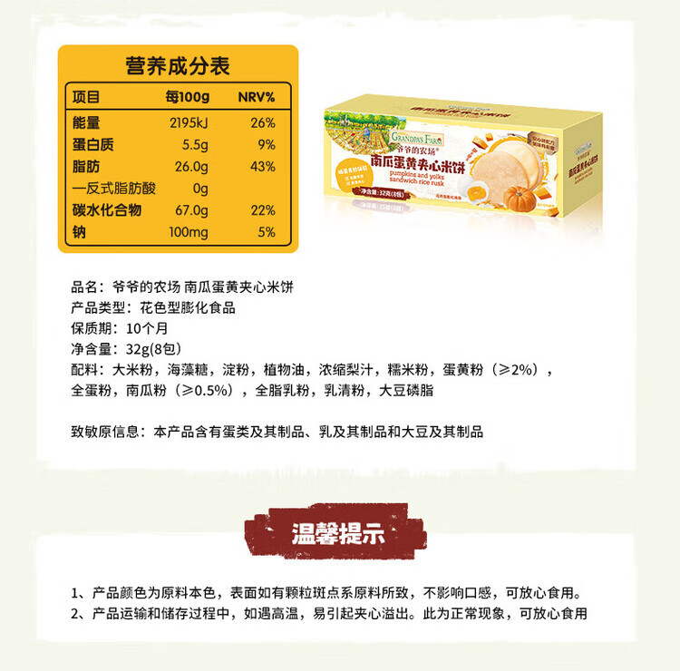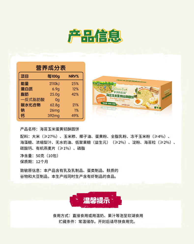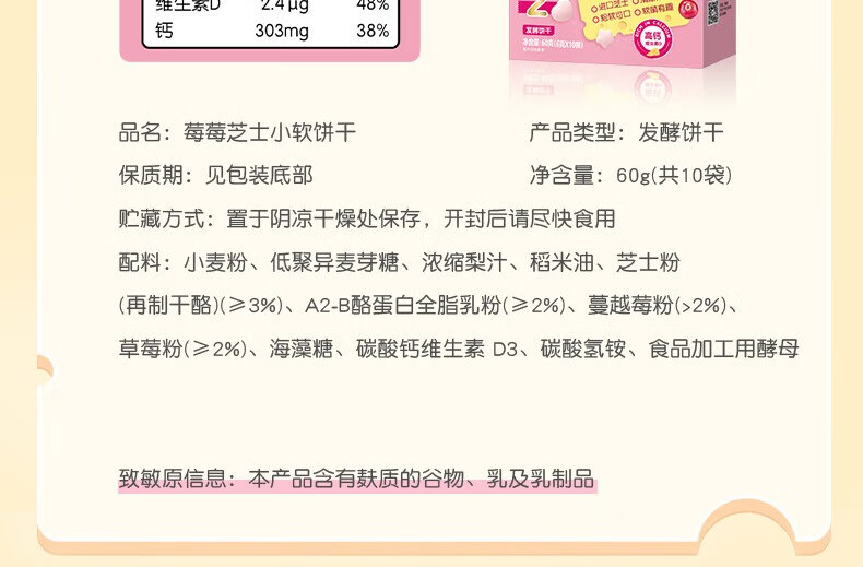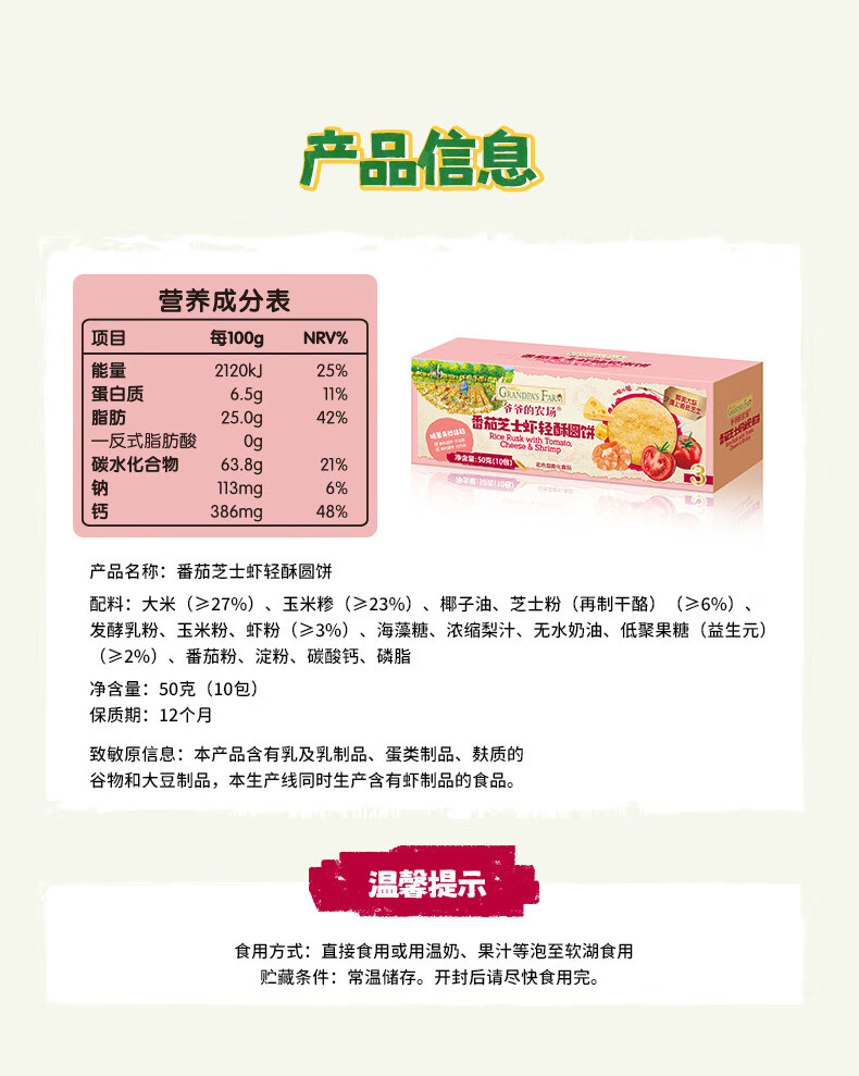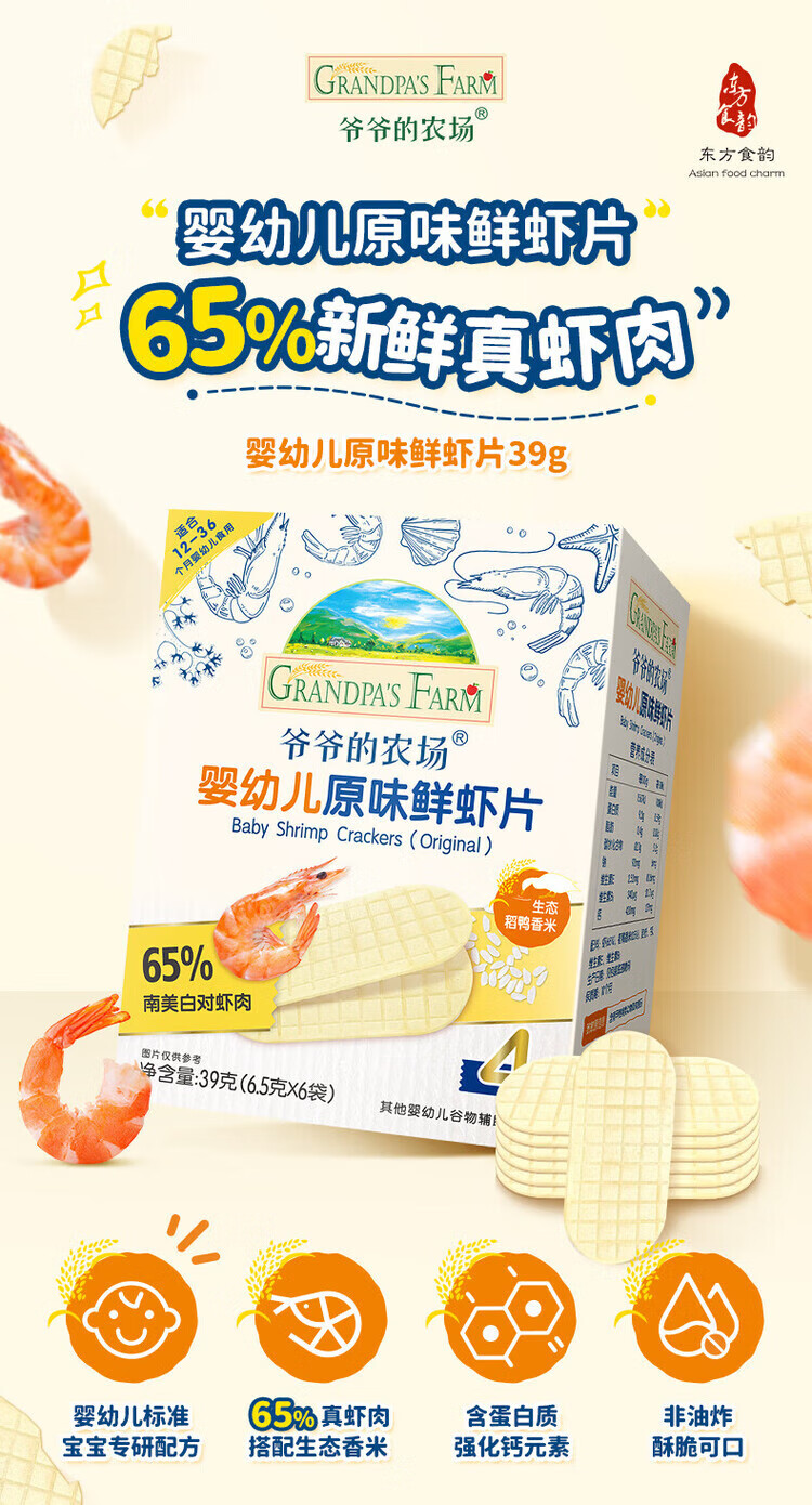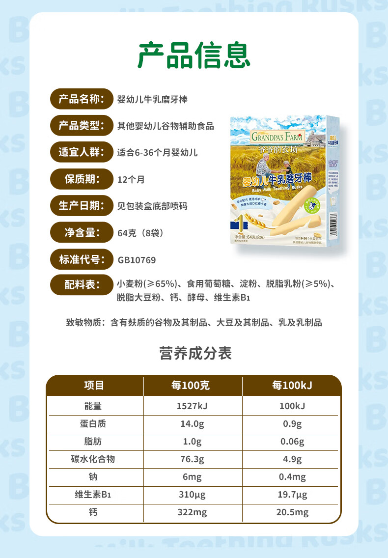 爷爷的农场宝宝零食小软饼干 牛乳磨牙棒夹心米饼虾片儿童零食 【加钙+维D】高钙芝士小软饼60g