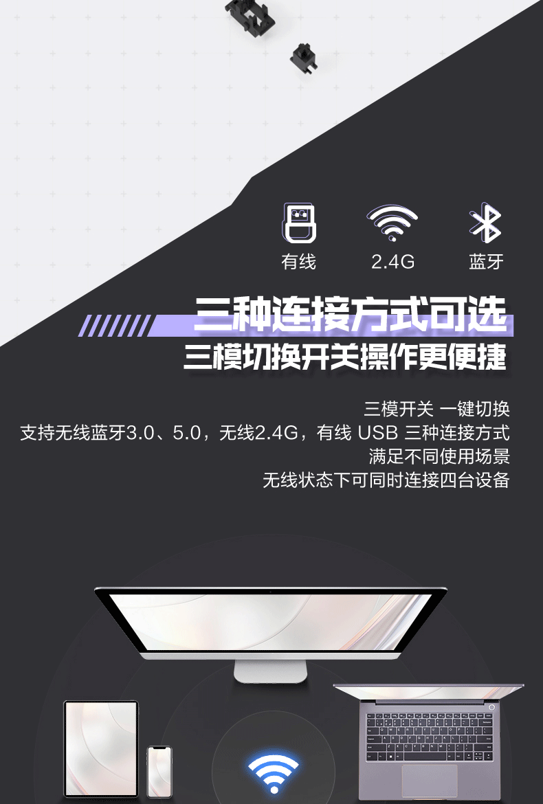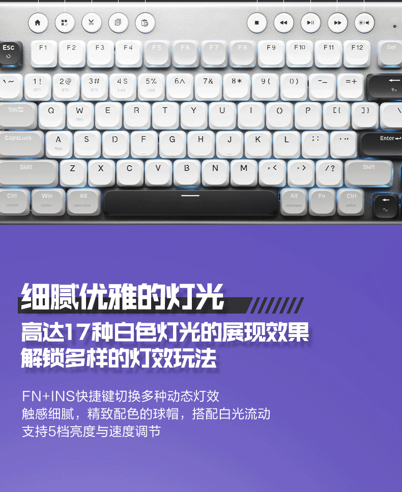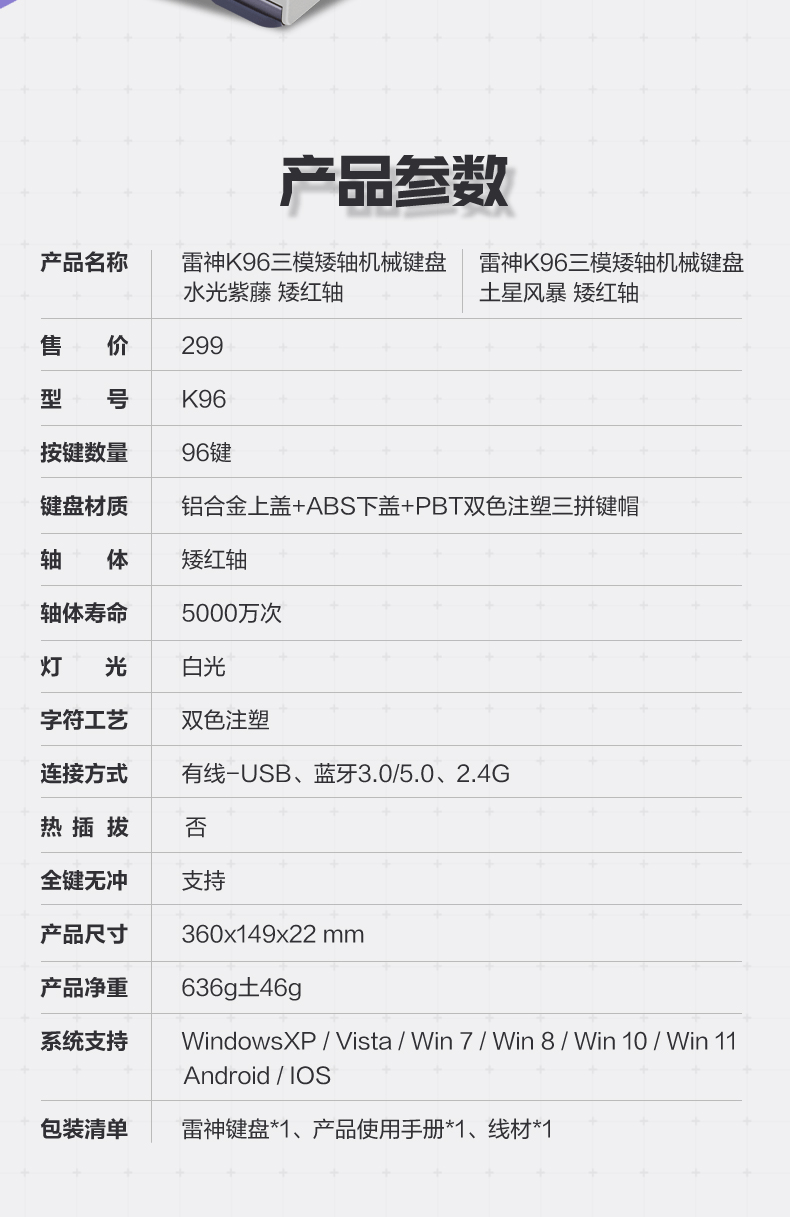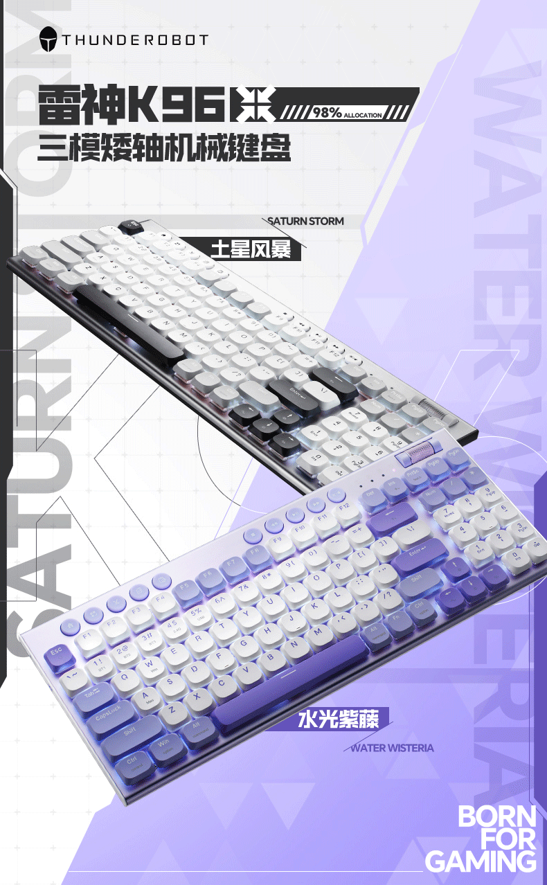 雷神(ThundeRobot)K96土星风暴三模矮轴机械键盘2.4G/蓝牙/有线无线办公家用 Mac/iPad轻音办公键盘 PBT键帽96键
