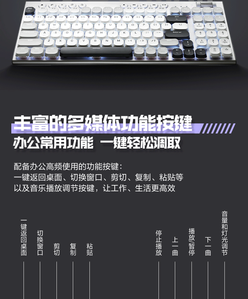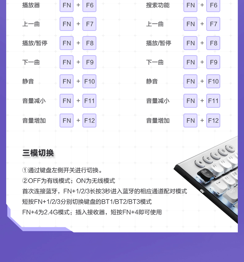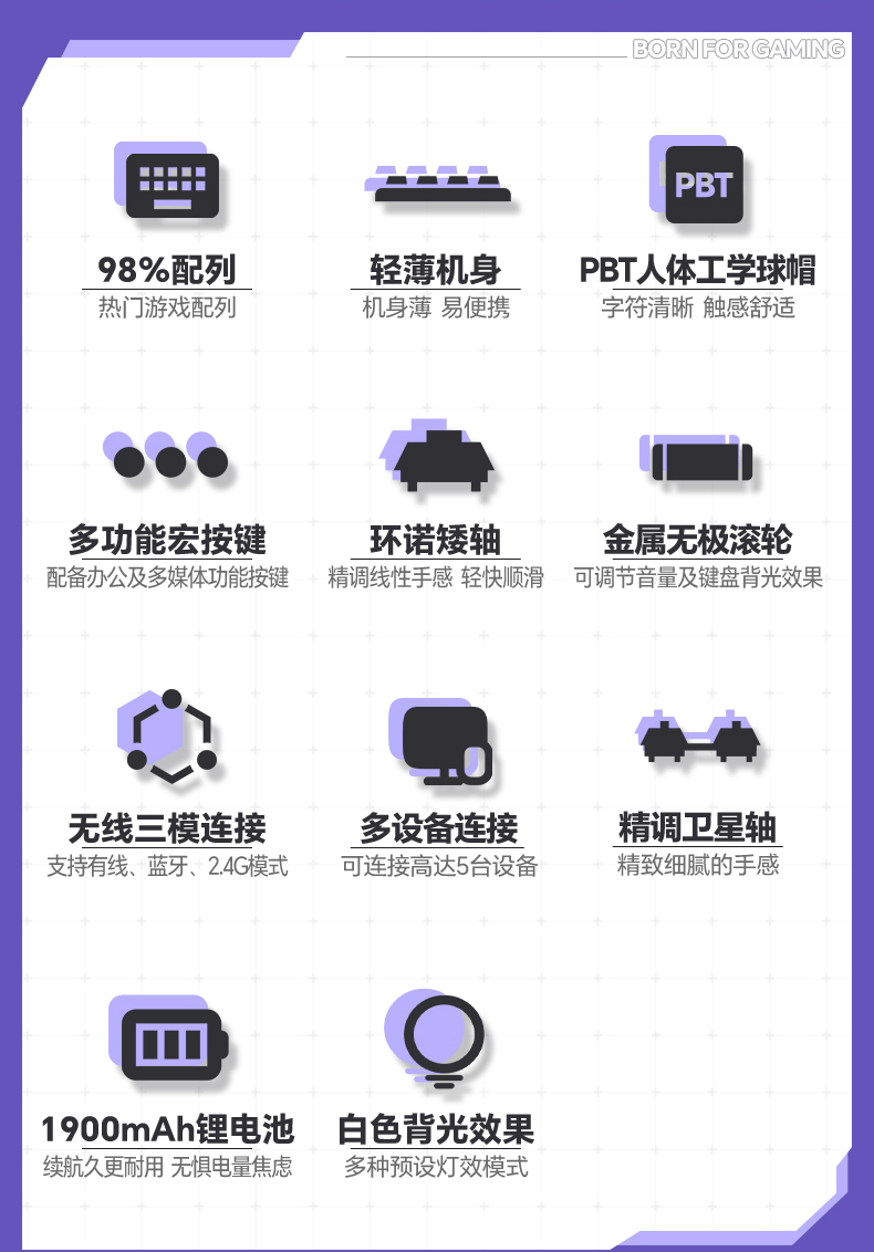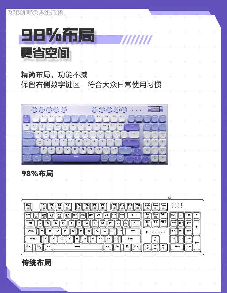 雷神(ThundeRobot)K96土星风暴三模矮轴机械键盘2.4G/蓝牙/有线无线办公家用 Mac/iPad轻音办公键盘 PBT键帽96键