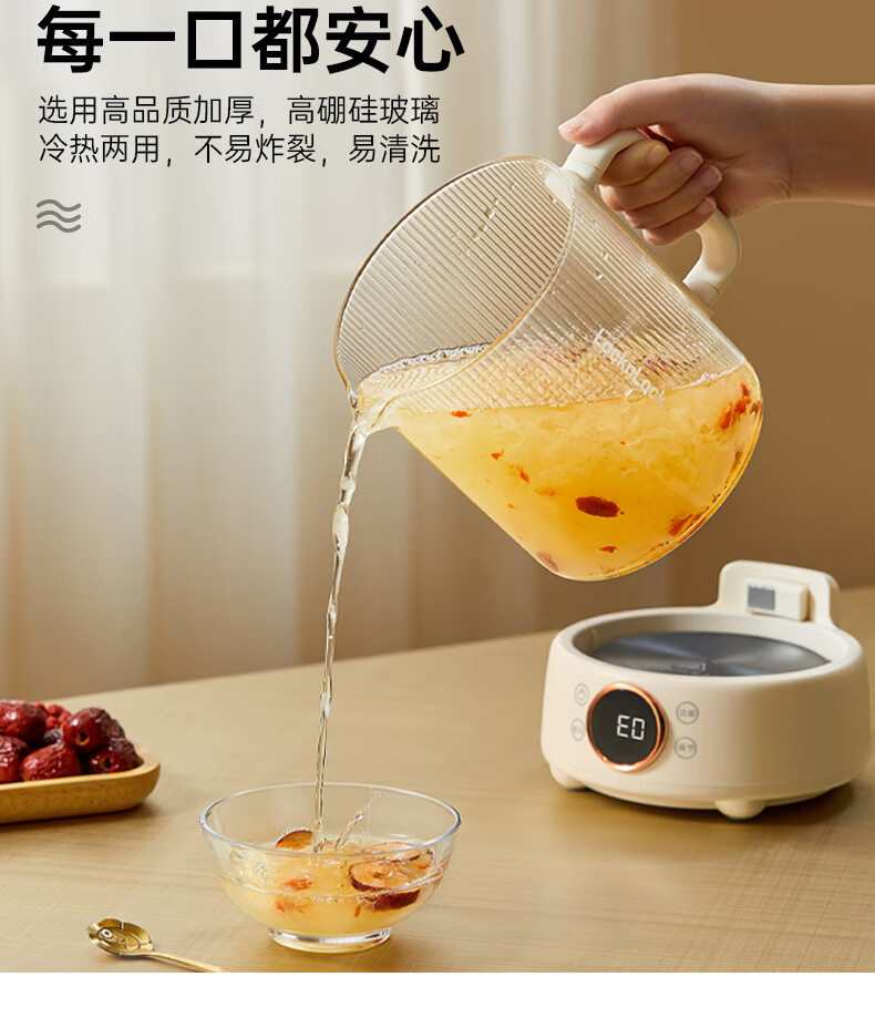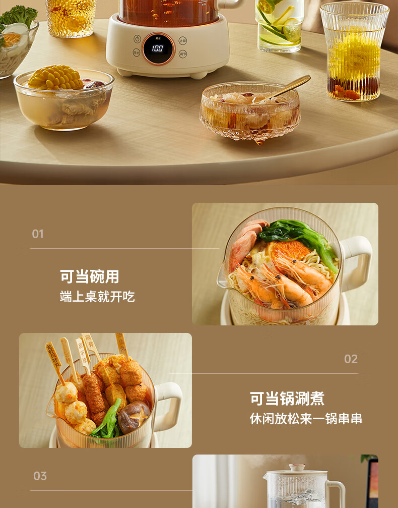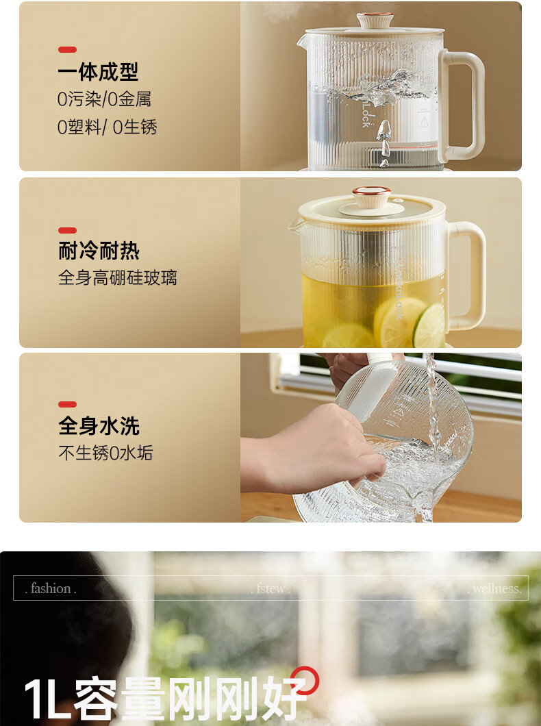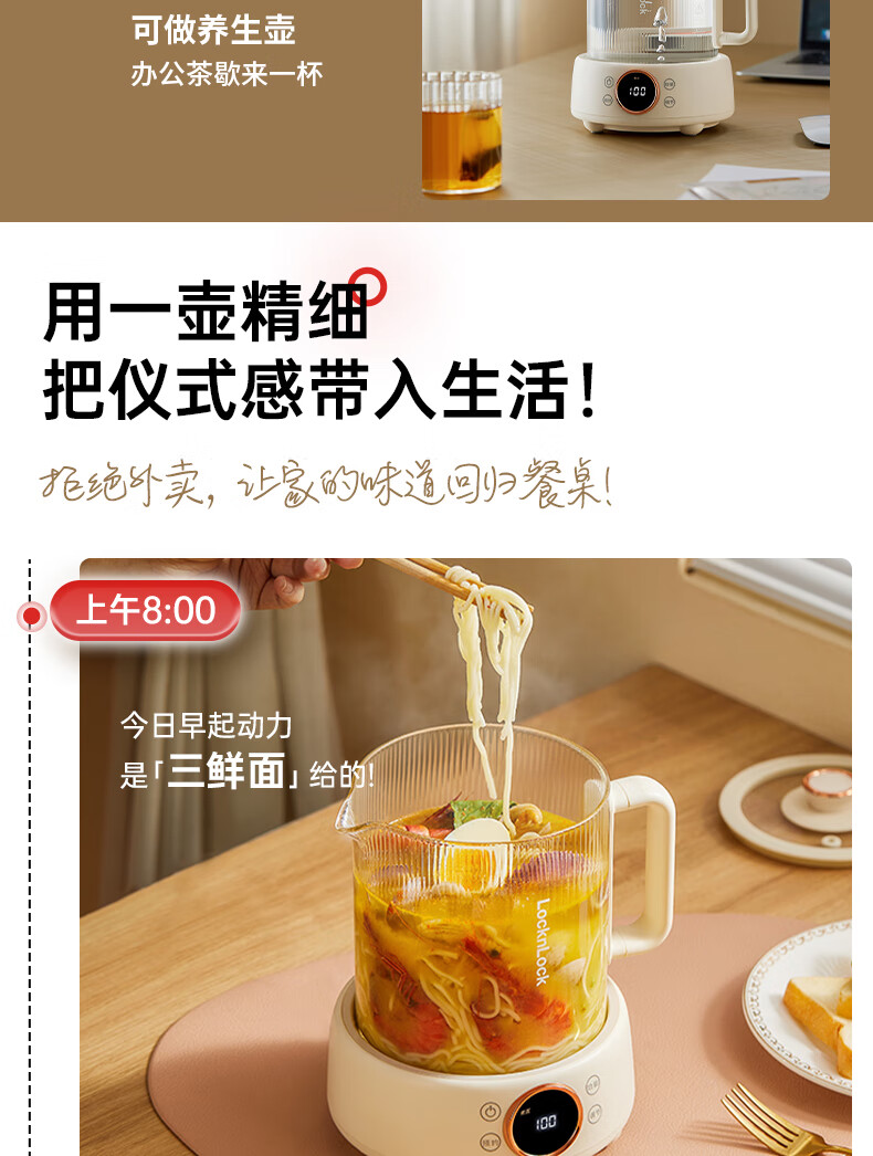 美的全玻璃养生壶 办公室烧水壶 家用多功能煮茶壶 花茶煮茶器 迷你小型电热水壶 围炉煮茶壶 【全玻璃】0金属0胶水0涂层 1L