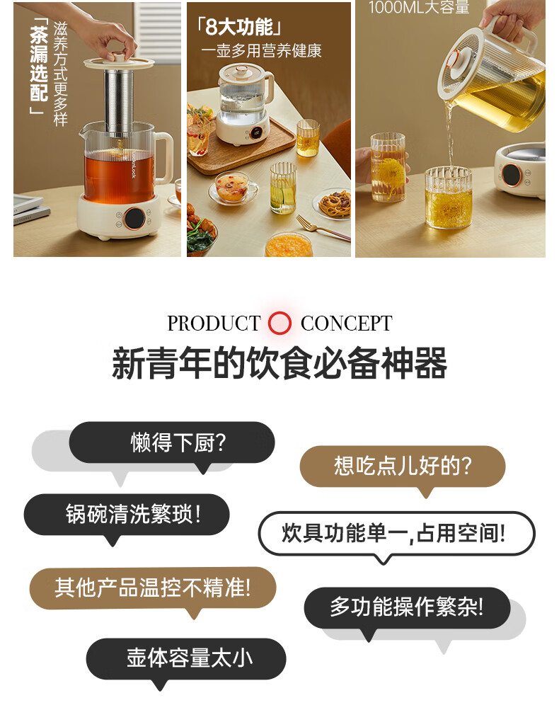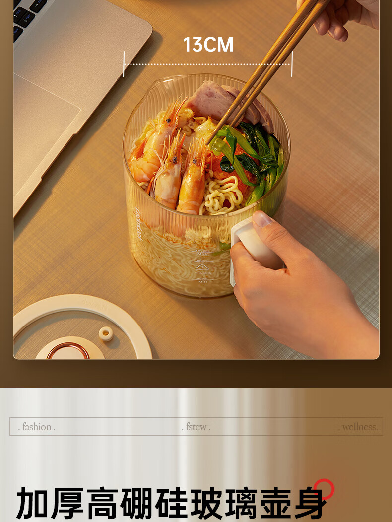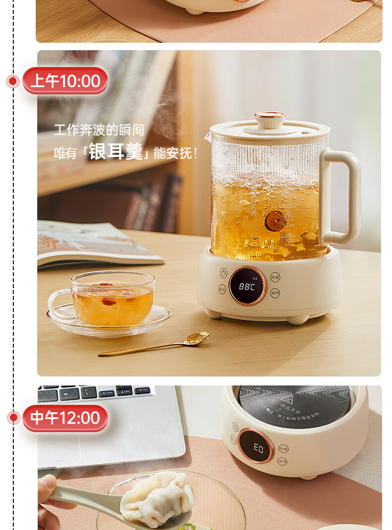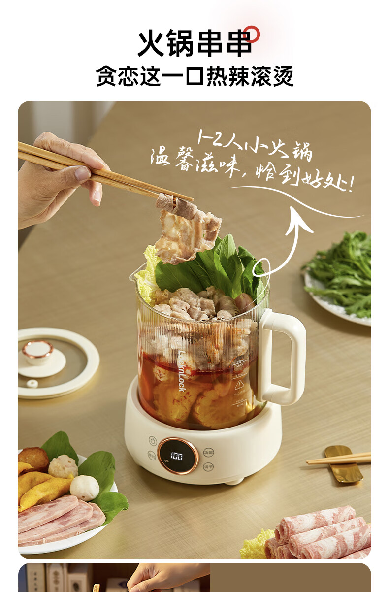 美的全玻璃养生壶 办公室烧水壶 家用多功能煮茶壶 花茶煮茶器 迷你小型电热水壶 围炉煮茶壶 【全玻璃】0金属0胶水0涂层 1L