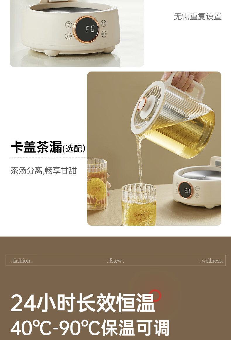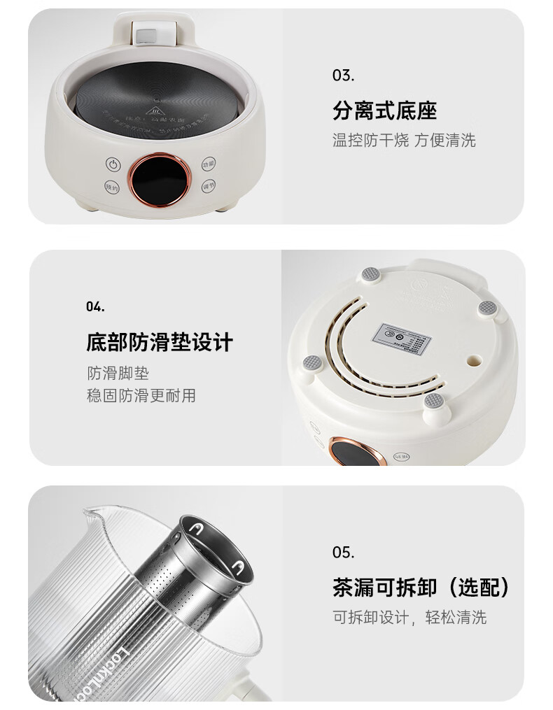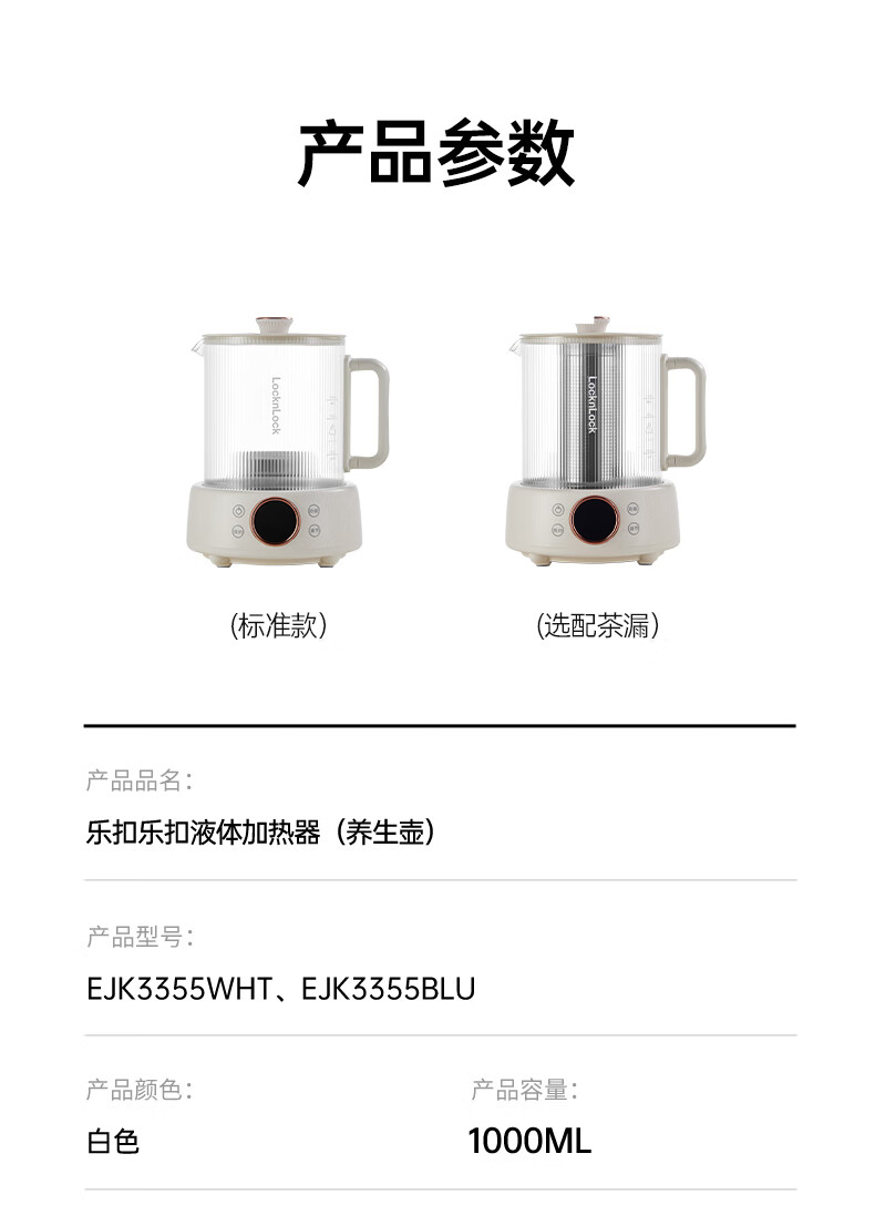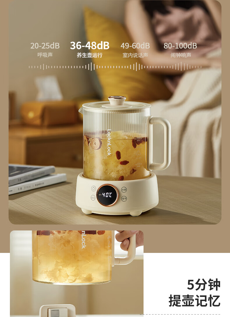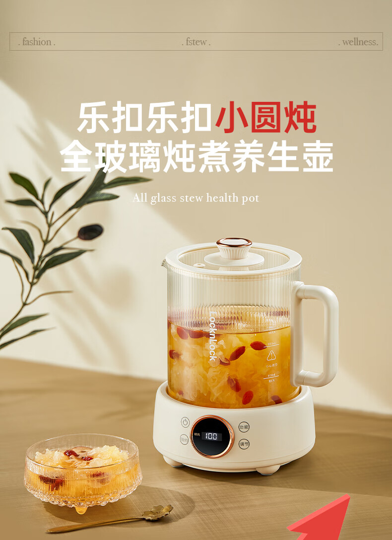 乐扣乐扣全玻璃养生壶电热水壶分体式烧水煮茶壶小花茶壶恒温加热保温迷你泡茶壶1L 炖煮款-无茶漏 1L