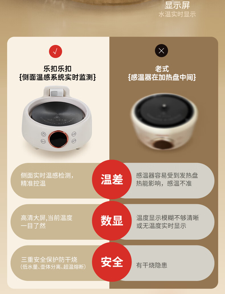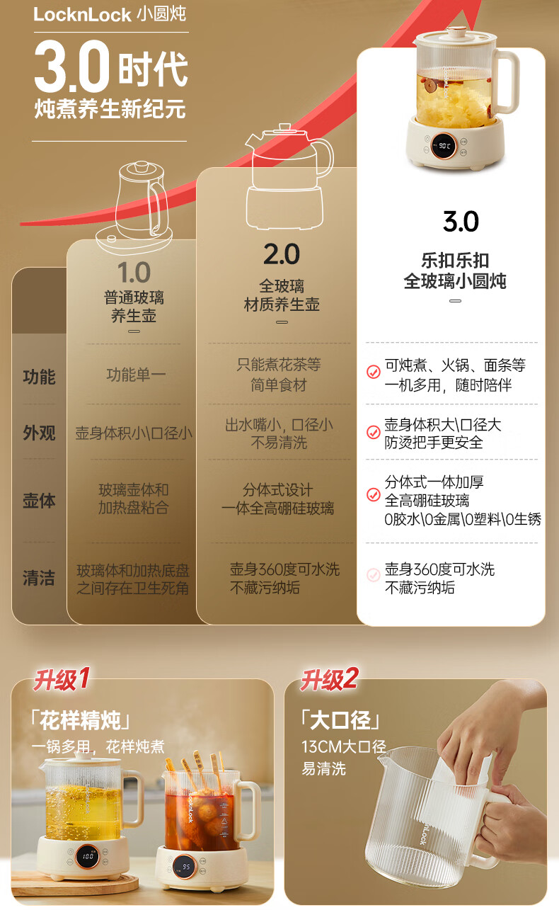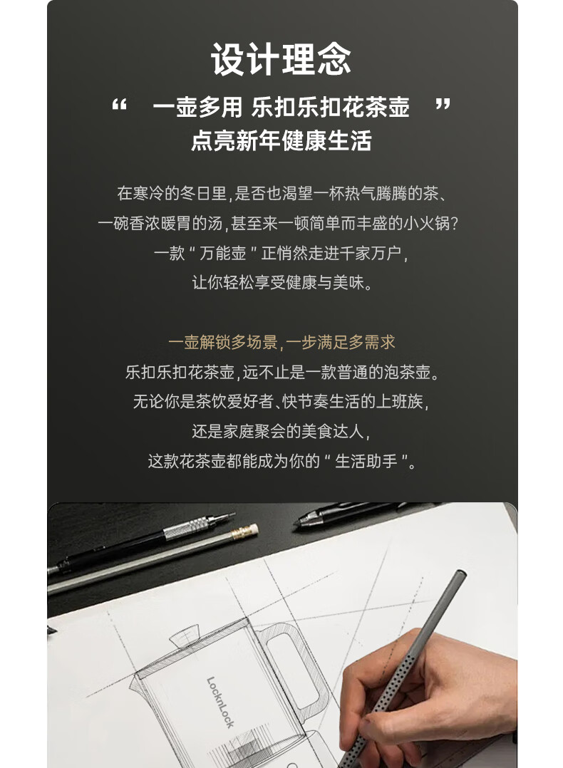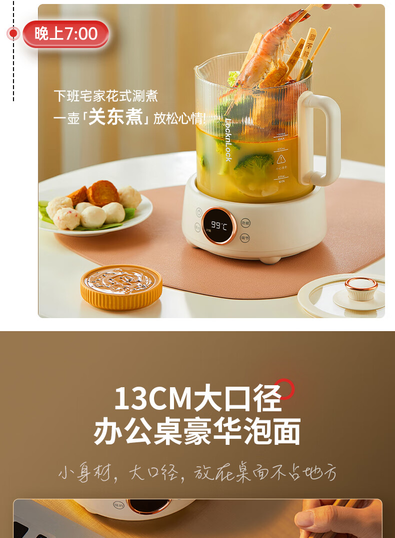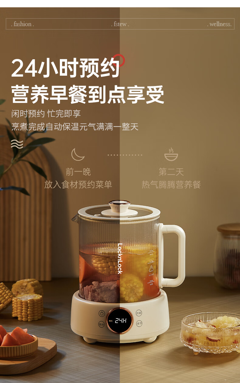 乐扣乐扣全玻璃养生壶电热水壶分体式烧水煮茶壶小花茶壶恒温加热保温迷你泡茶壶1L 炖煮款-无茶漏 1L