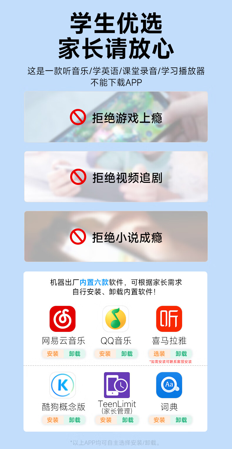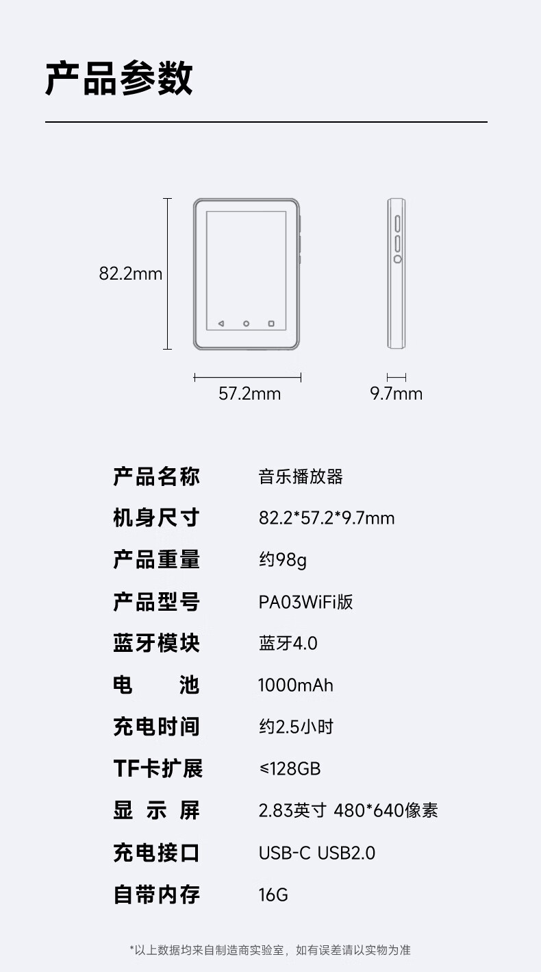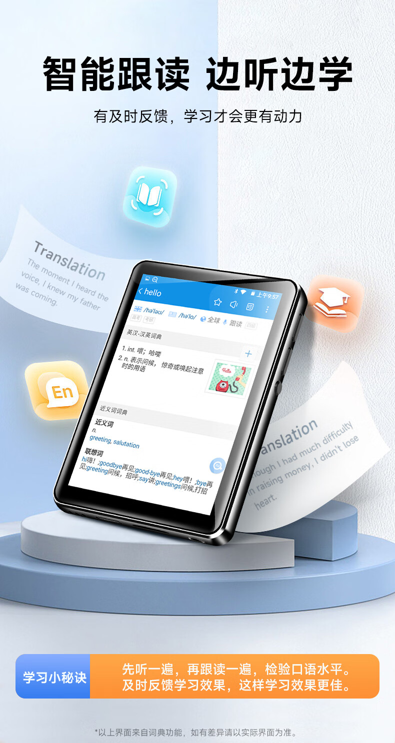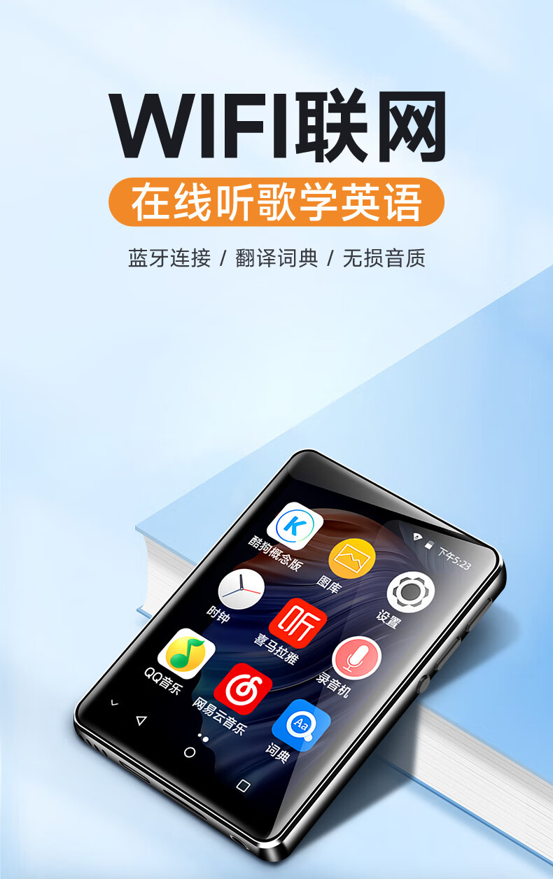 梵沐PA03 智能WIFI可上网mp3/mp4播放器 蓝牙学生随身听 2.8英寸触摸屏 词典翻译英语专用 16G