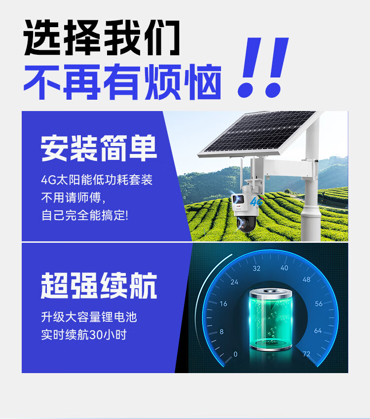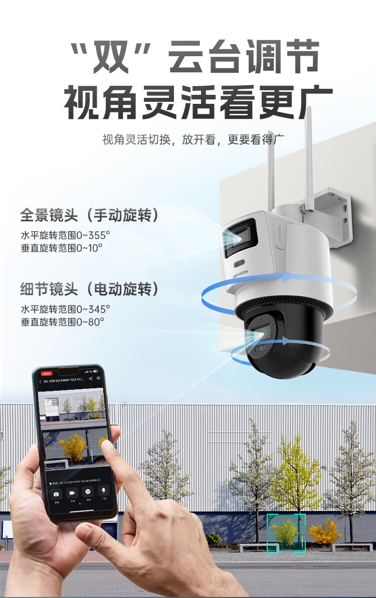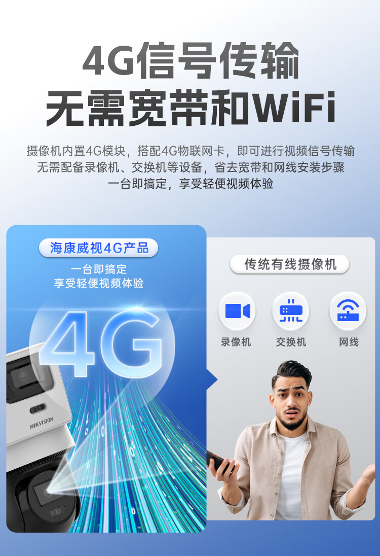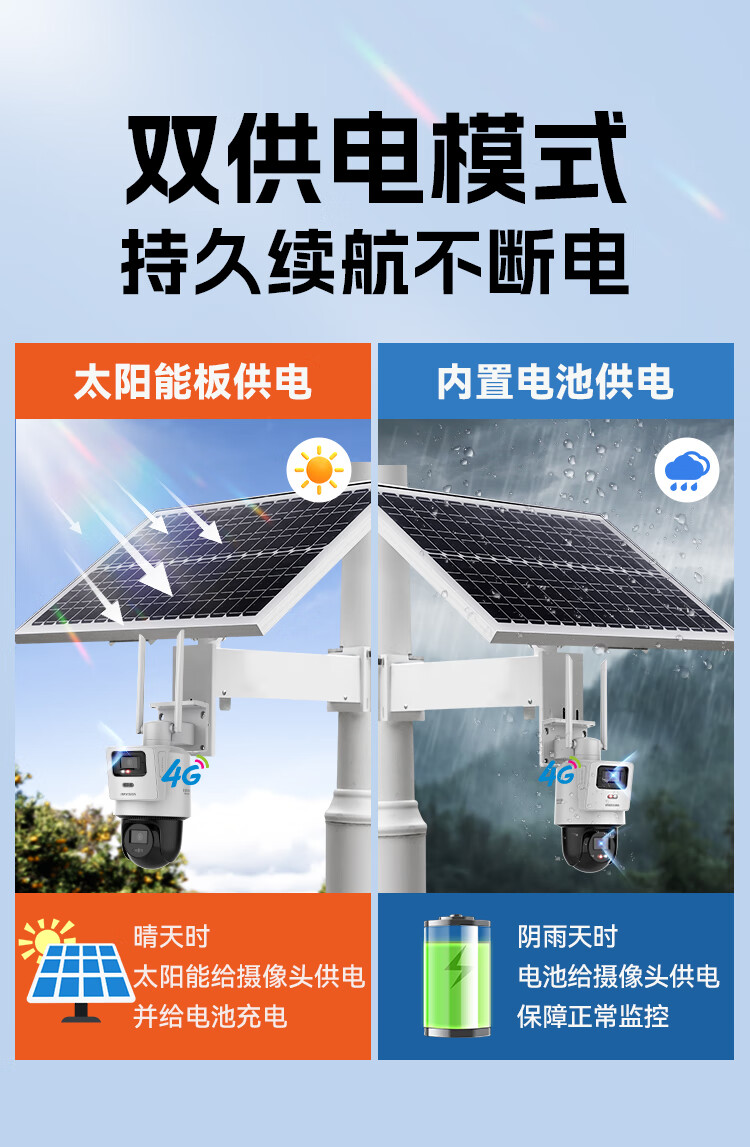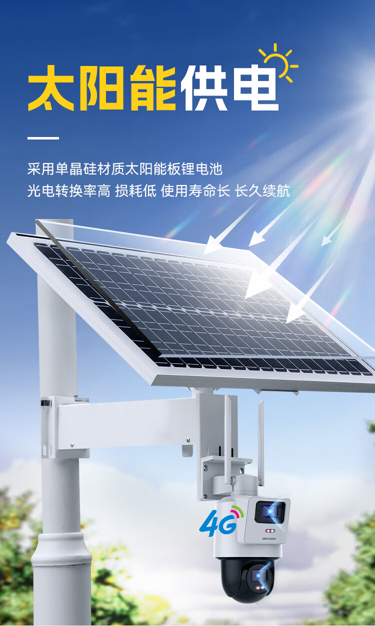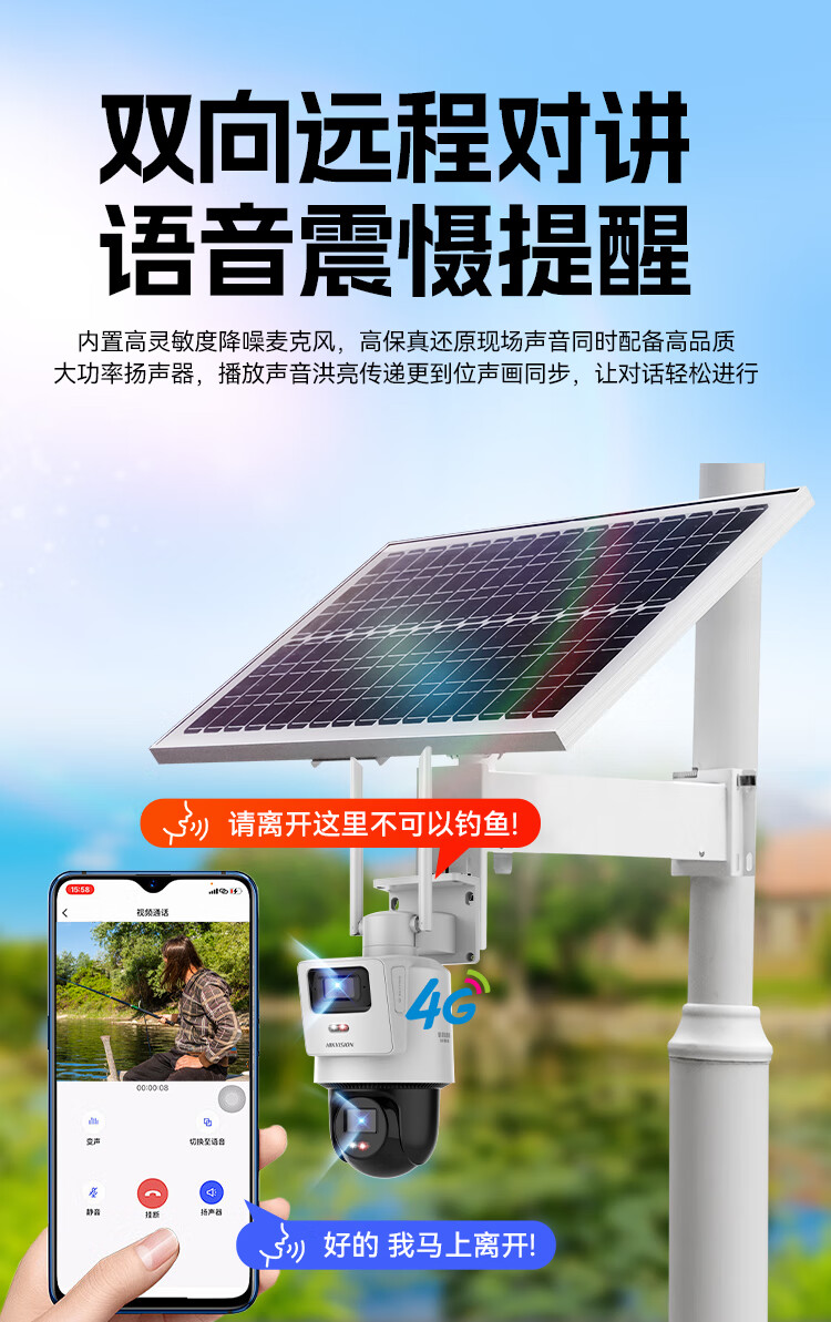 HIKVISION海康威视4G太阳能摄像头免插电监控器终身免流量360度无死角800万户外语音对讲球机60w30AH送64g