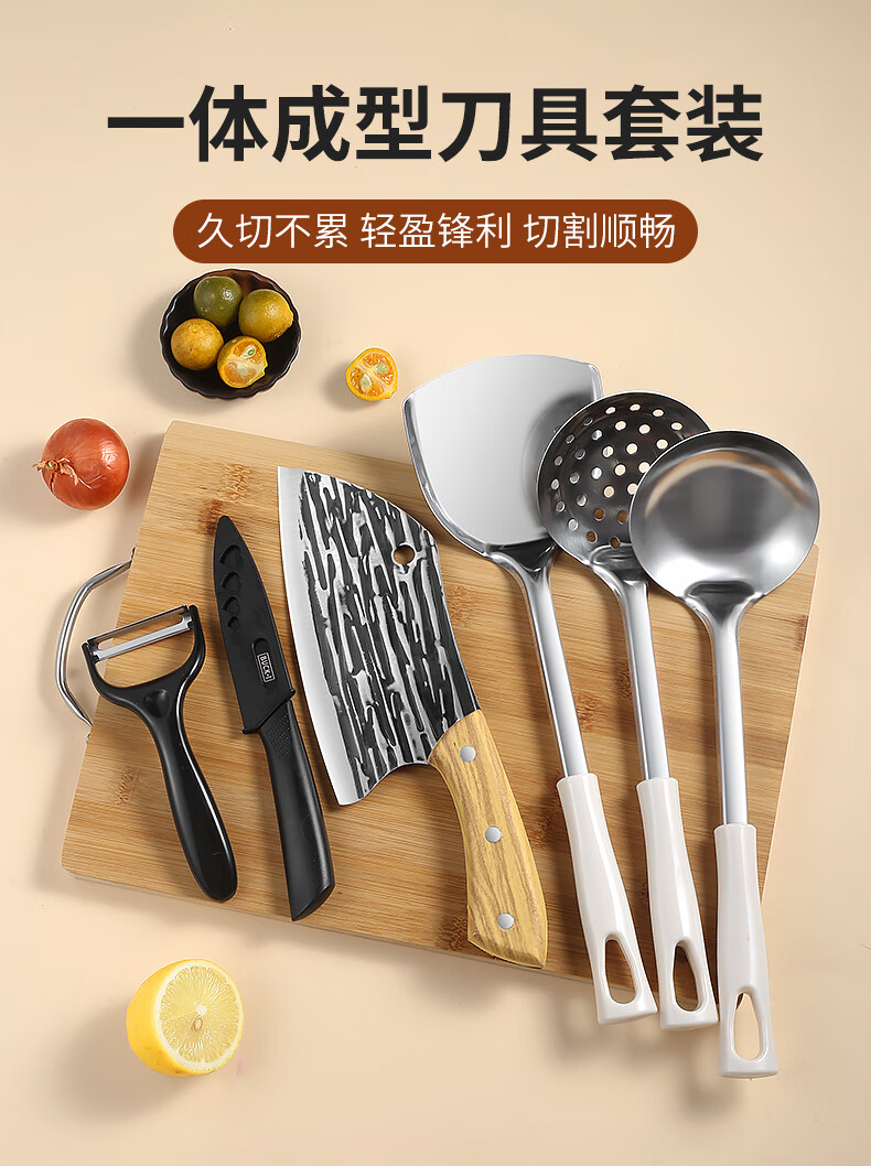 匠小品龙泉刀具套装手工锻打刀家用菜刀菜板二合一厨房全套厨具砧板组合 【全套】菜刀菜板七件套