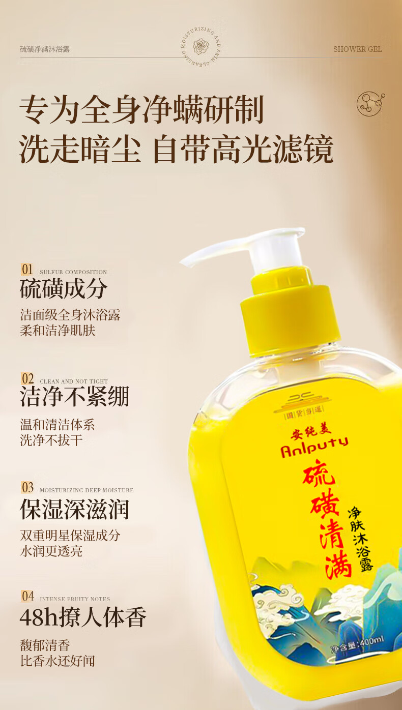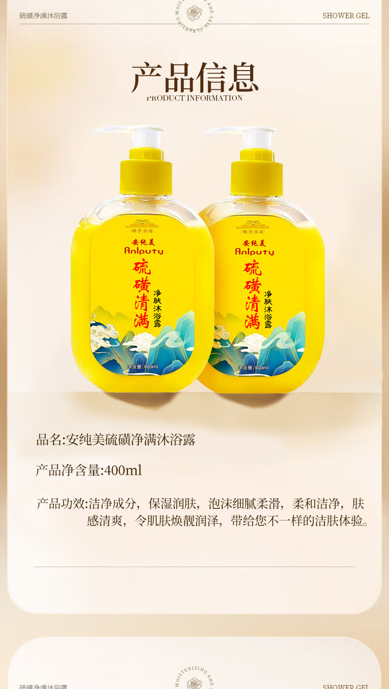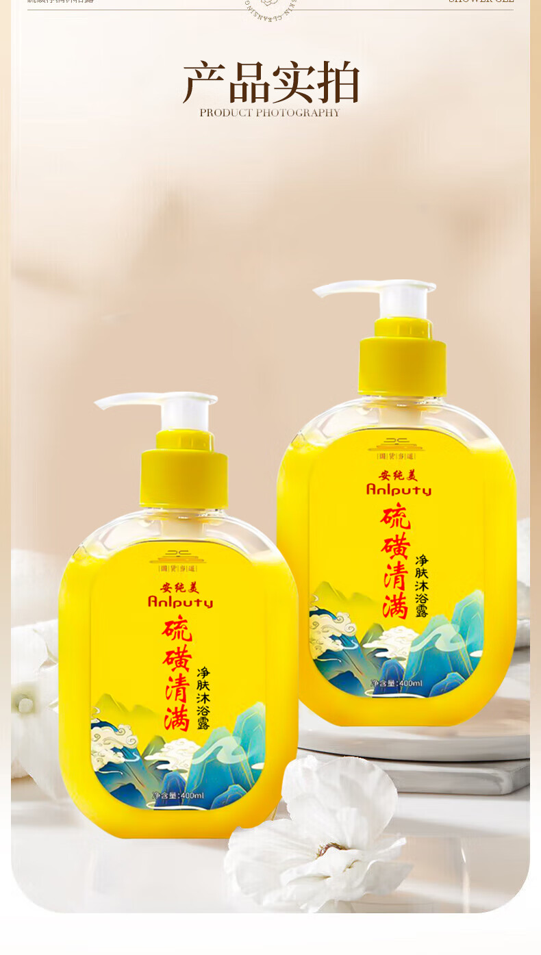 安纯美沐浴露清洁后背油腻粗糙痘痘鸡皮角质搓澡搓泥宝硫磺皂液体香皂 硫磺沐浴露*2瓶