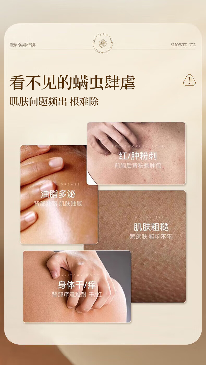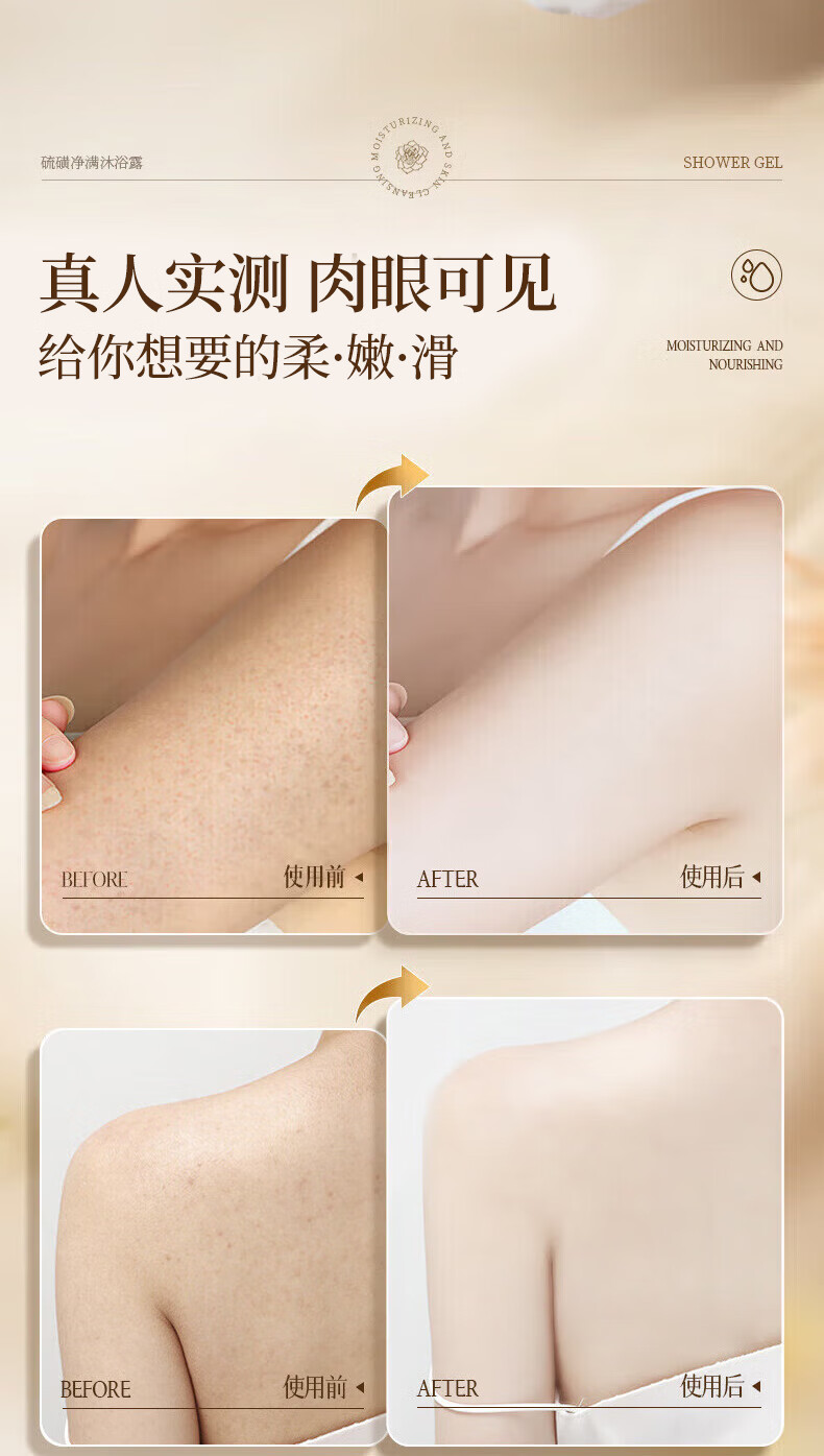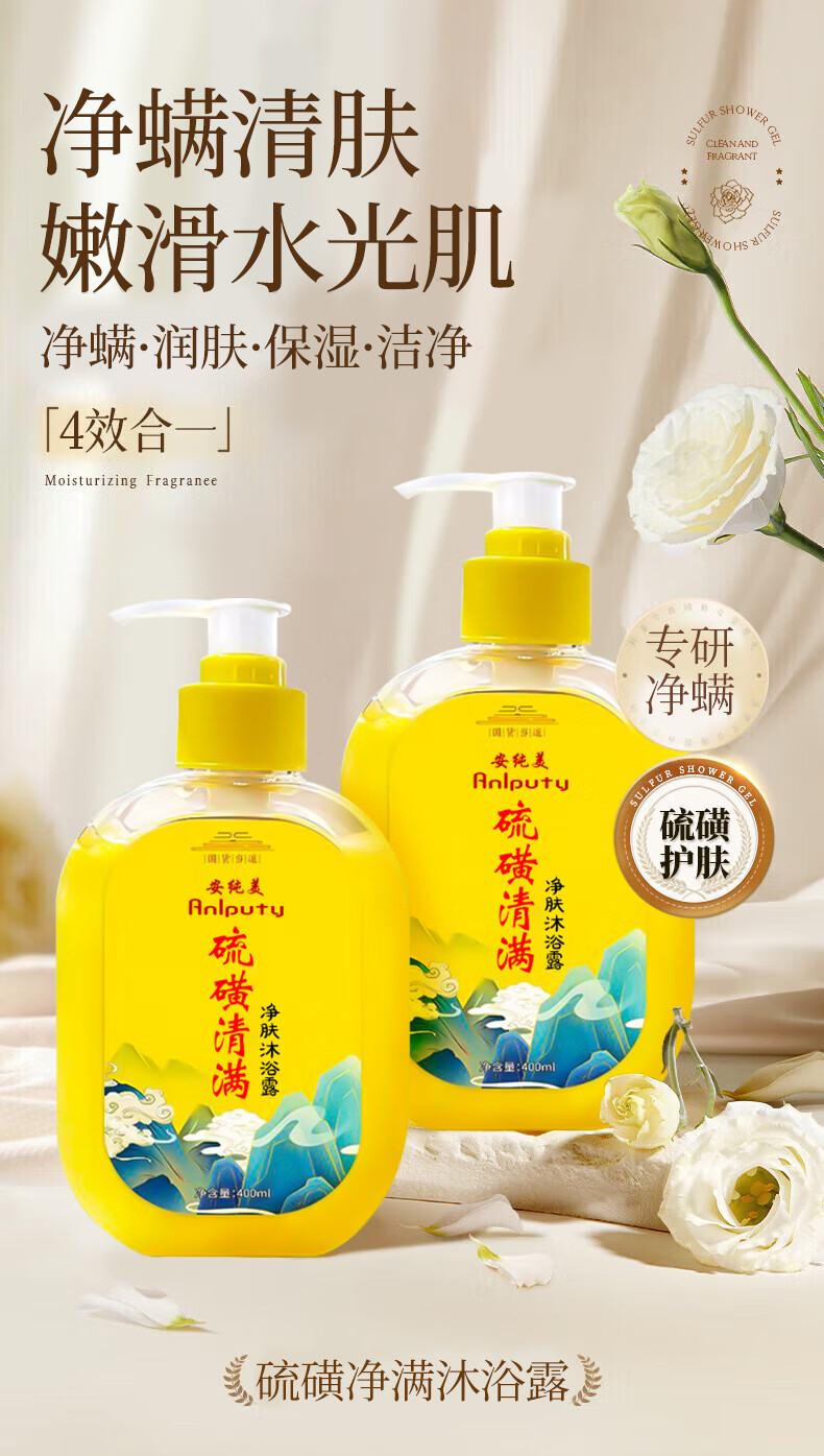 安纯美沐浴露清洁后背油腻粗糙痘痘鸡皮角质搓澡搓泥宝硫磺皂液体香皂 硫磺沐浴露*2瓶