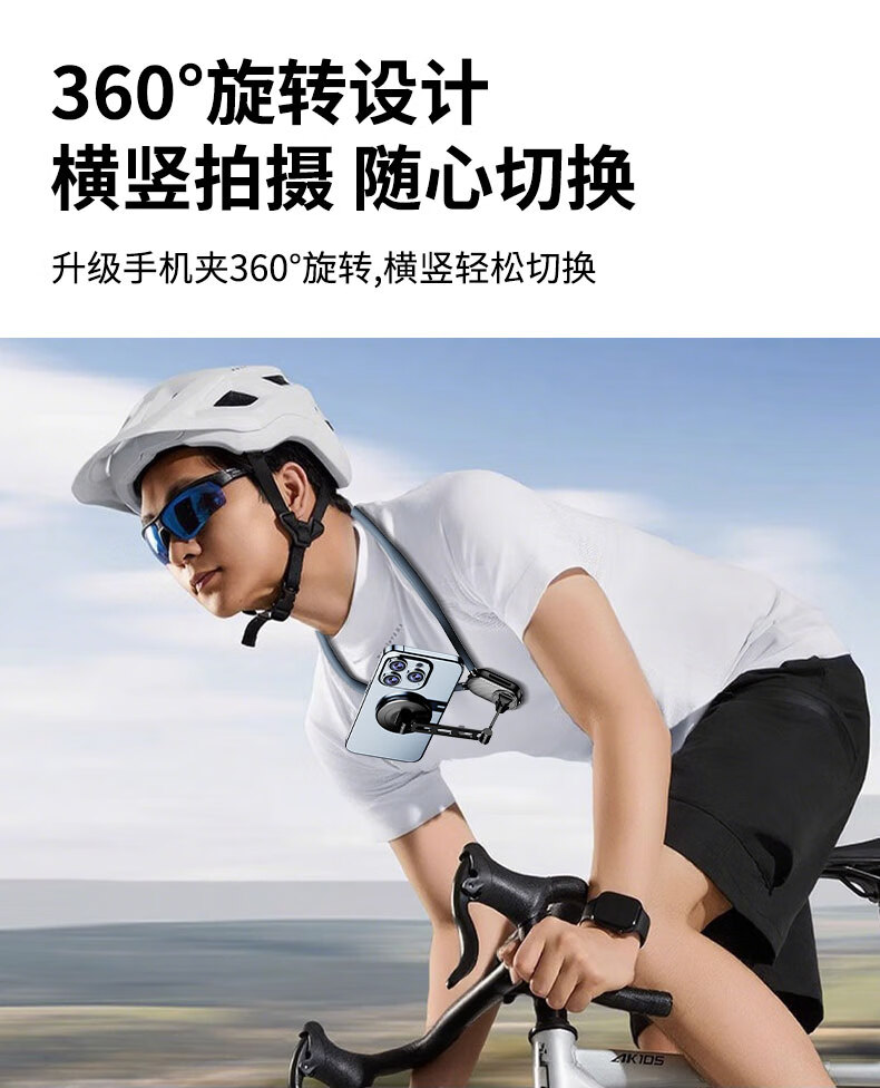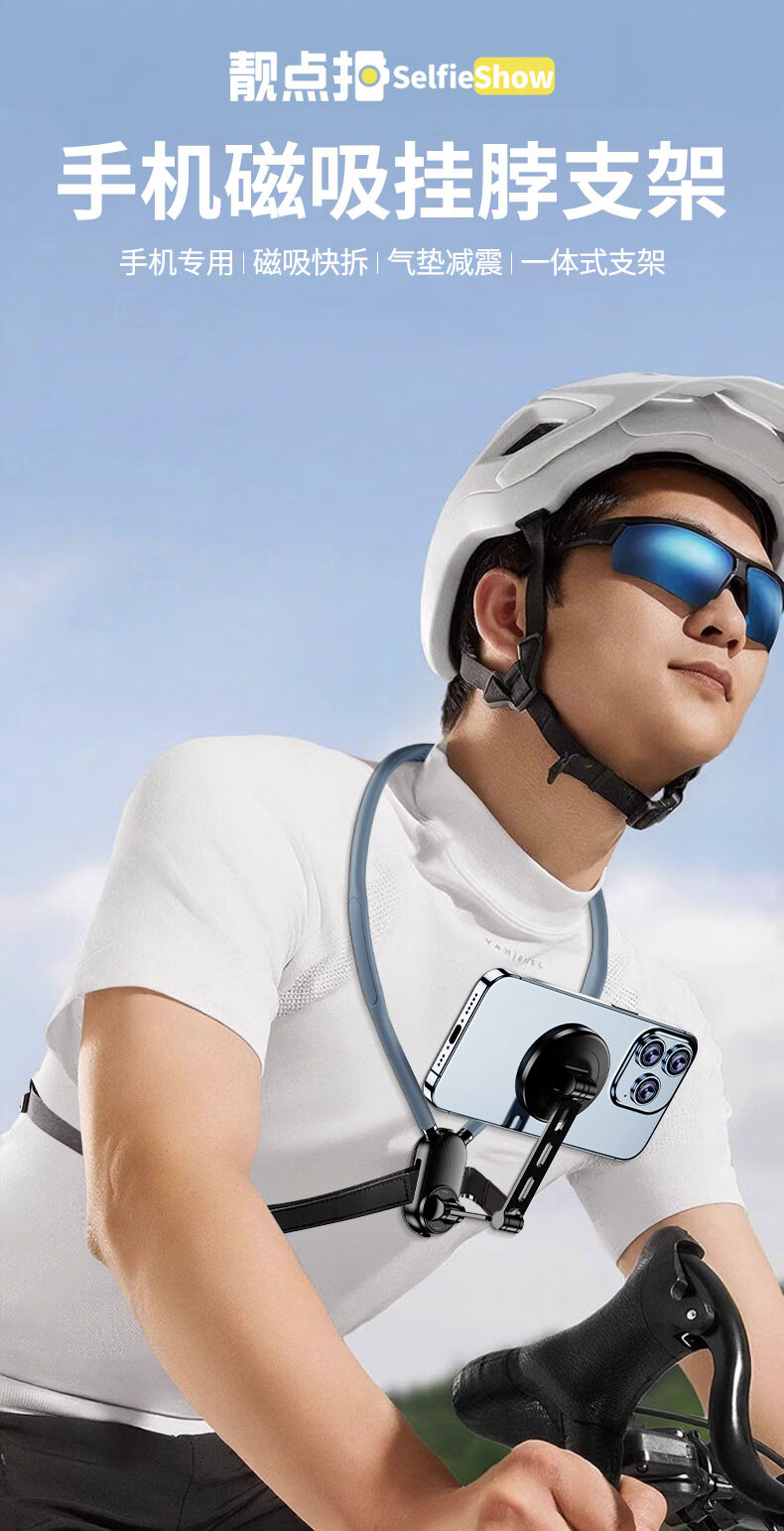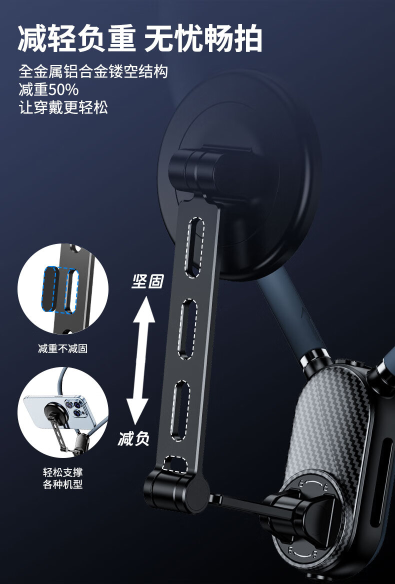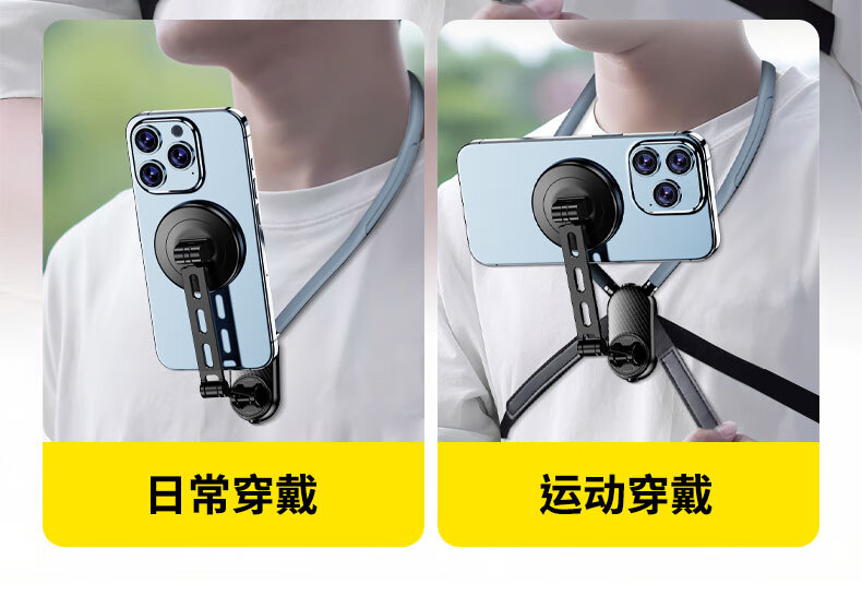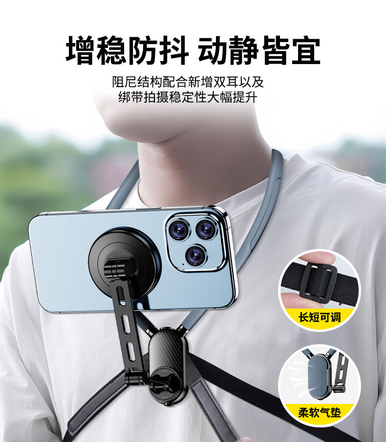 靓点拍挂脖手机支架胸前固定拍摄第一视角磁吸 相机支架大疆OsmoACtion4/3直播骑行旅行开车录制户外vlog 【防抖夹持款】三合一丨手机相机通用丨四轴调节更灵活