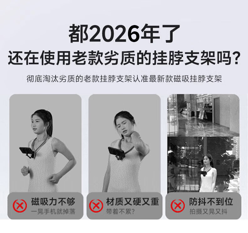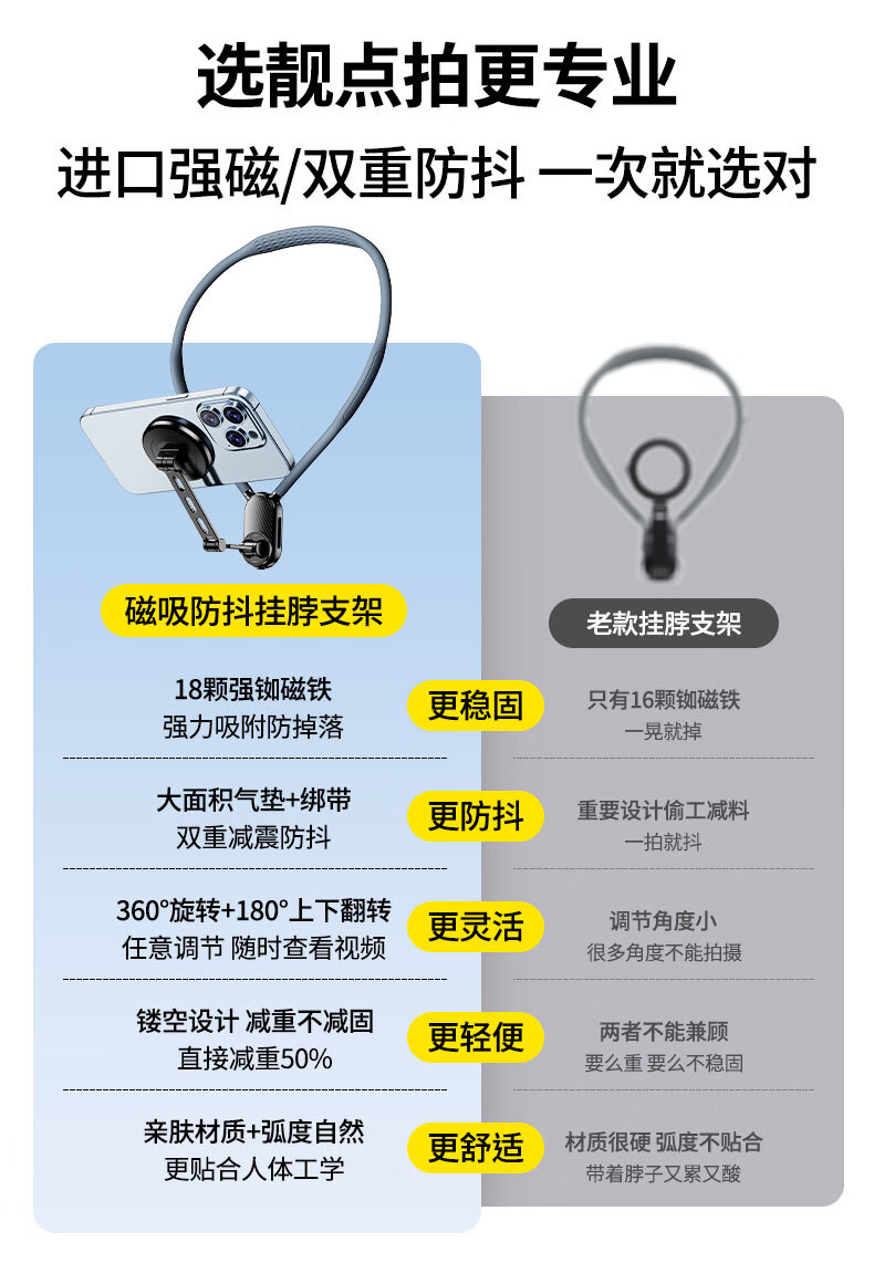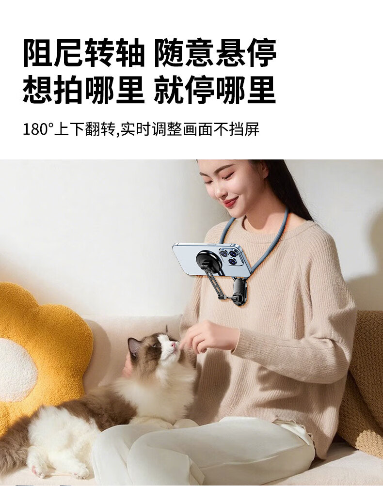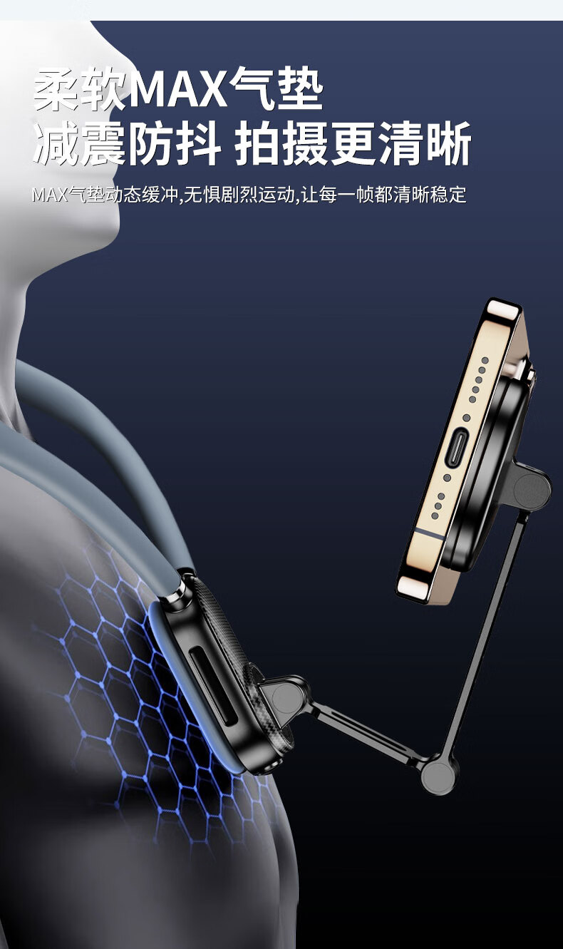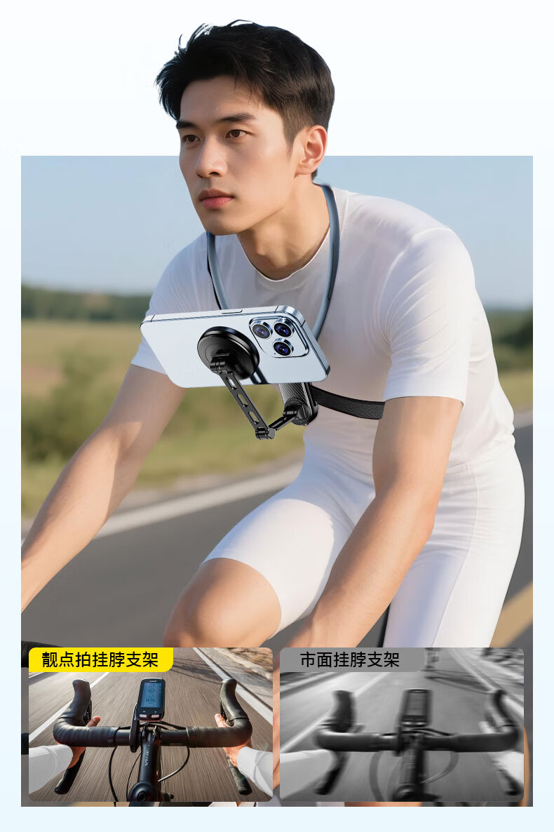 靓点拍挂脖手机支架胸前固定拍摄第一视角磁吸 相机支架大疆OsmoACtion4/3直播骑行旅行开车录制户外vlog 【防抖夹持款】三合一丨手机相机通用丨四轴调节更灵活