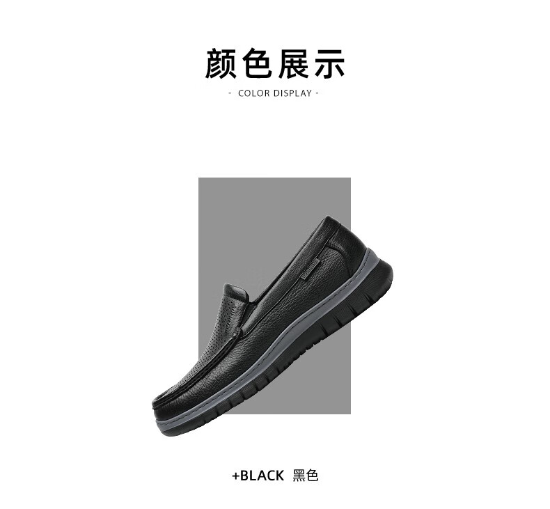 卡帝乐鳄鱼皮鞋男商务休闲鞋真皮中老年爸爸牛皮职场西装通勤套脚一脚蹬男鞋 黑色[四季款]6219 41 [皮鞋码]