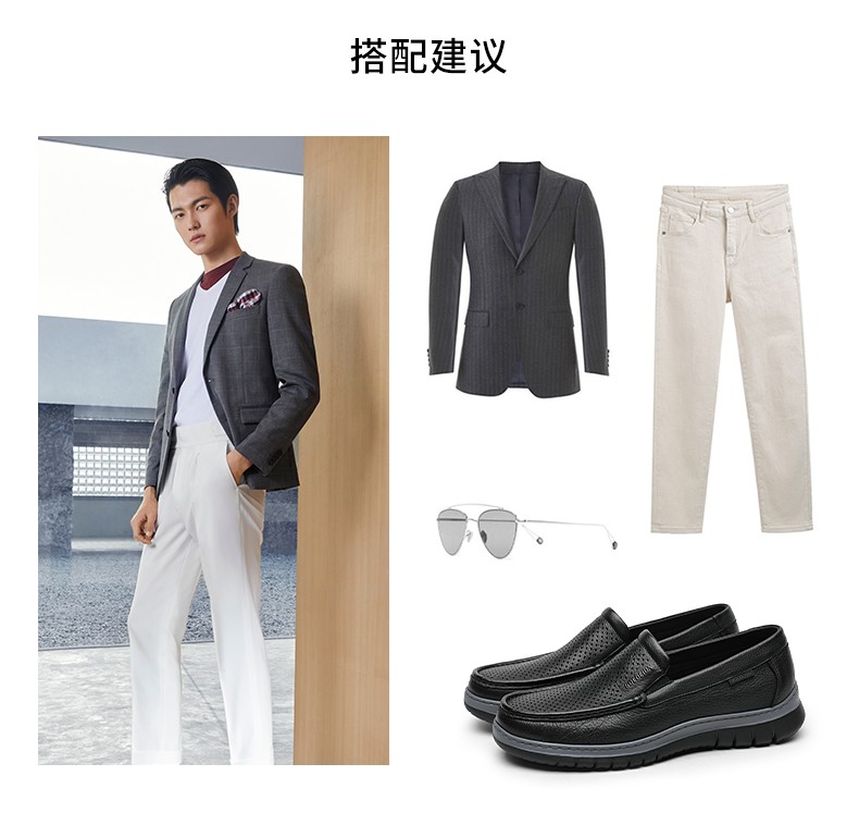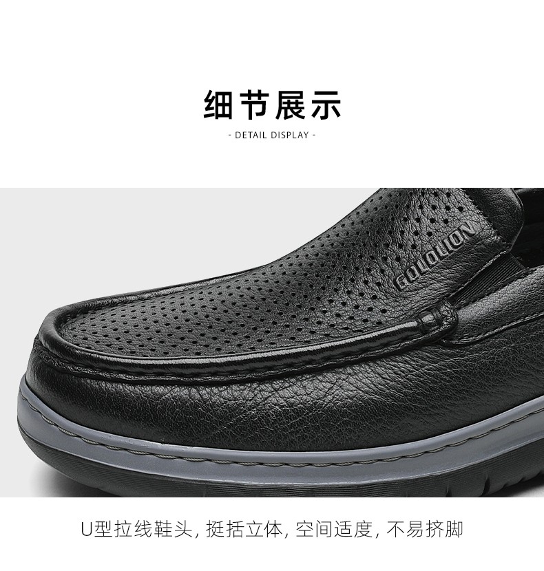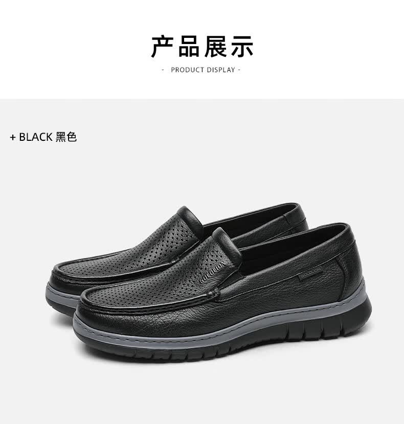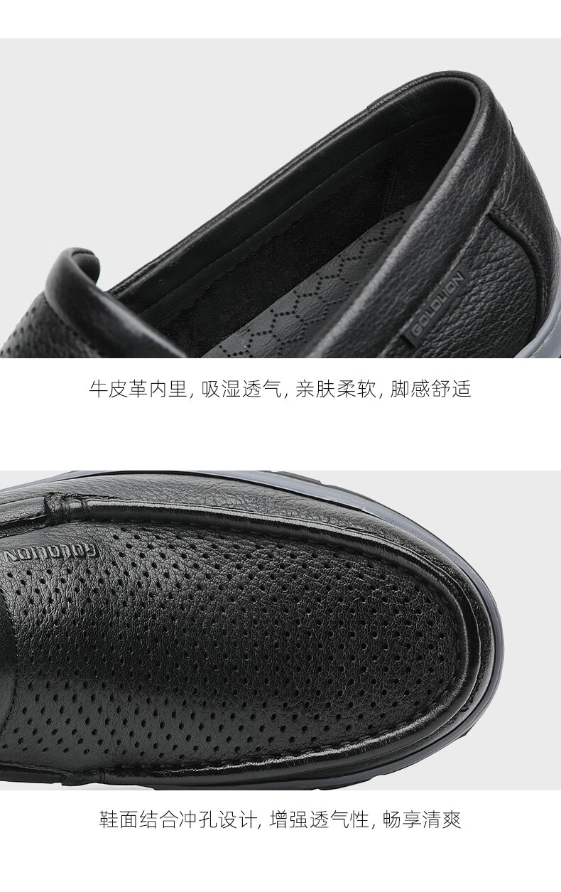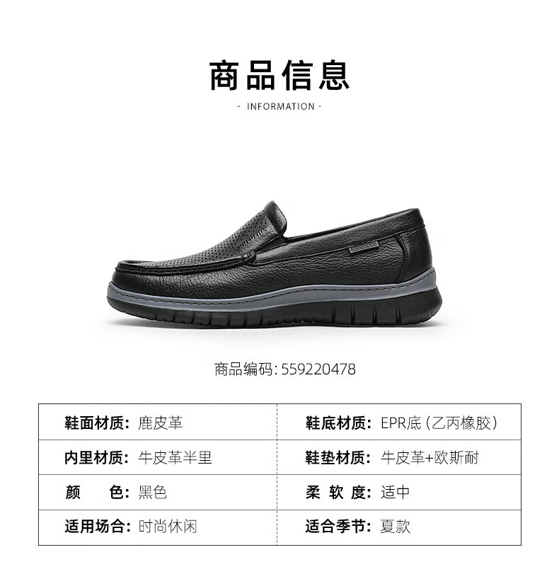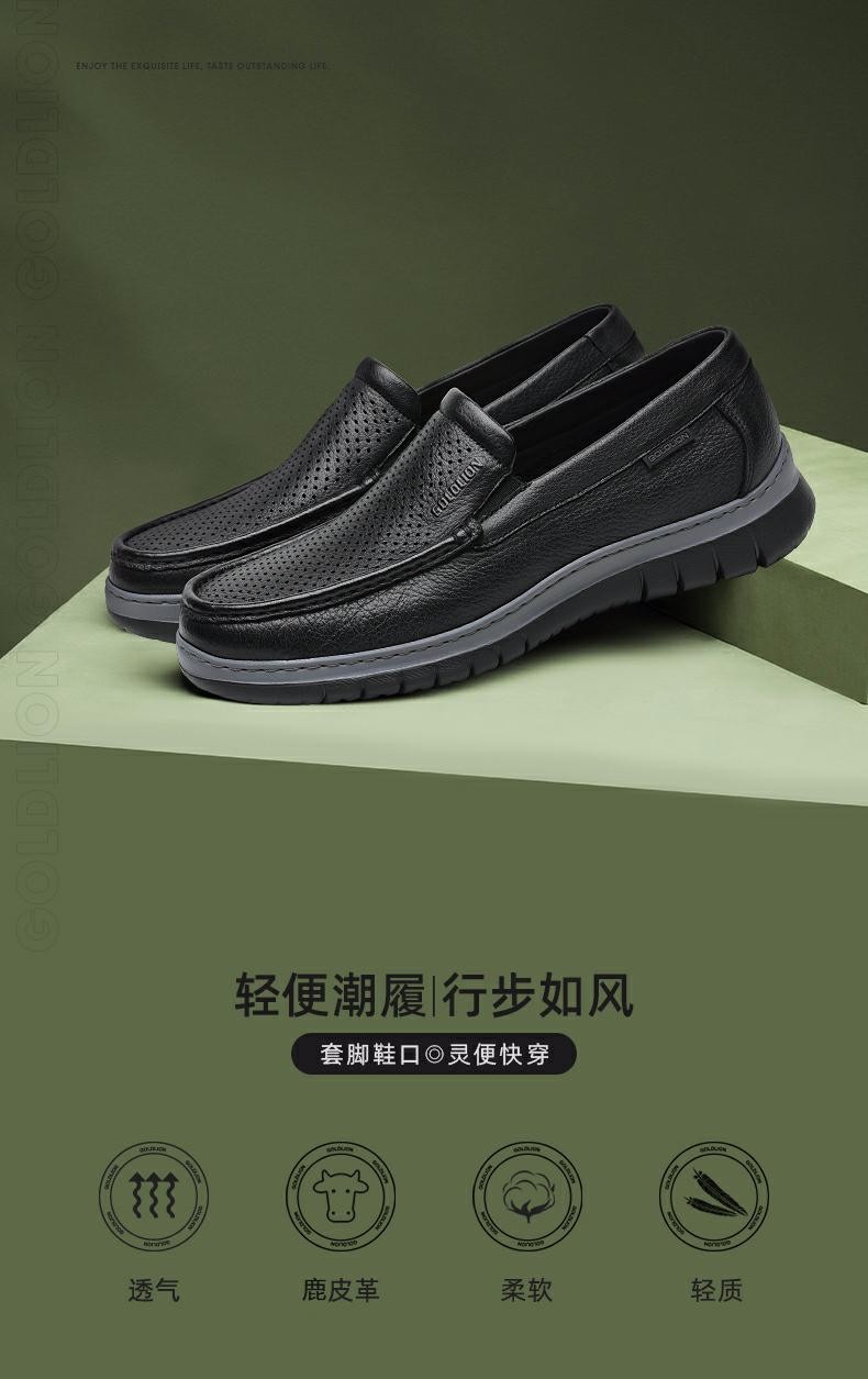 金利来(Goldlion)凉鞋男鞋皮鞋男鹿皮革透气爸爸鞋商务休闲鞋乐福鞋男士皮鞋套脚鞋 黑色 40