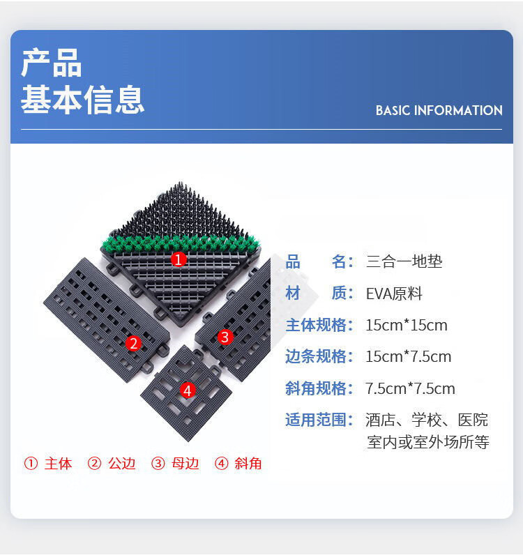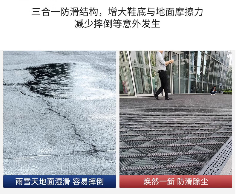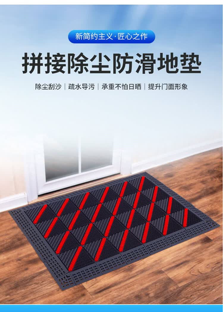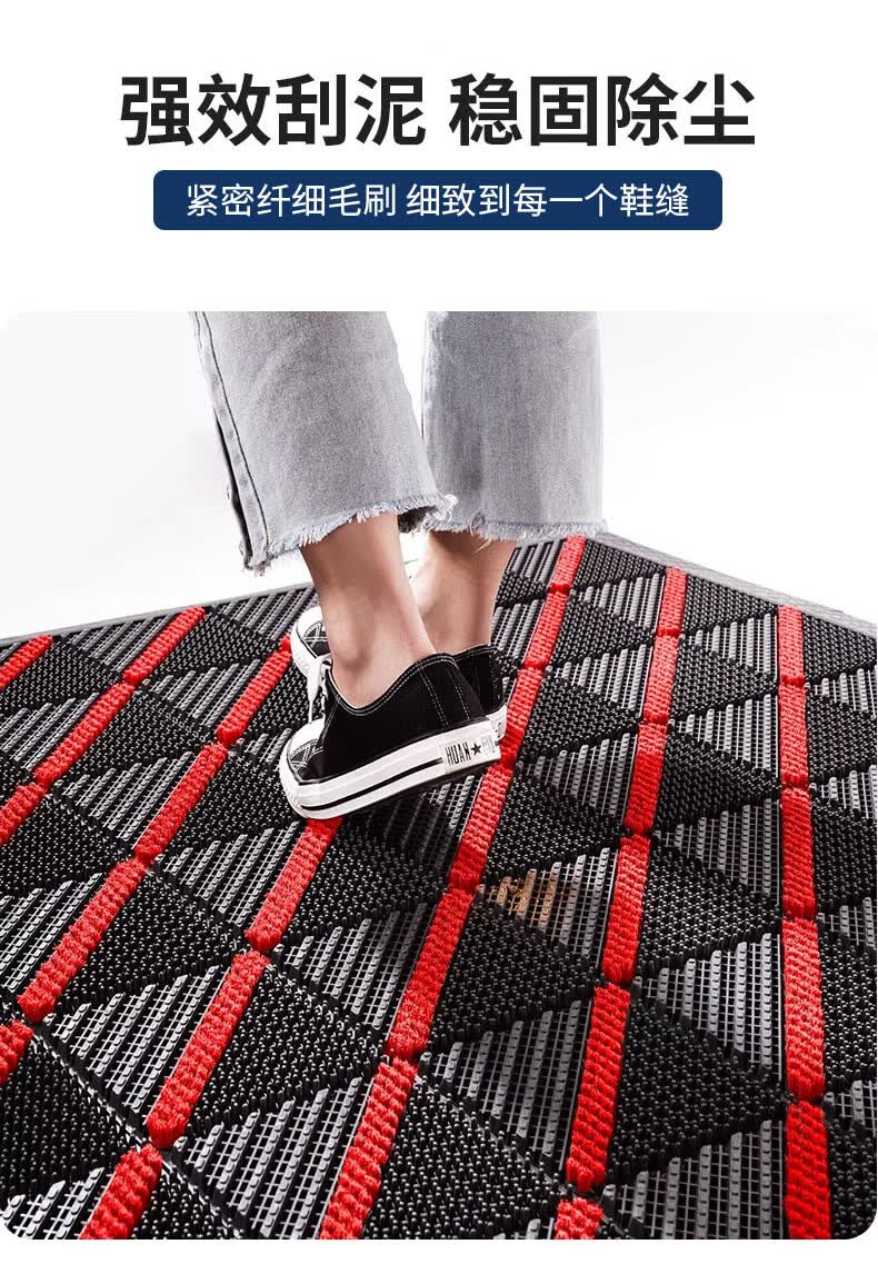室外刮泥蹭土防滑脚垫酒店入户门塑料镂空地毯三合一除尘拼接地垫 单刷-灰块灰刷 60cm*90cm +橡胶锤