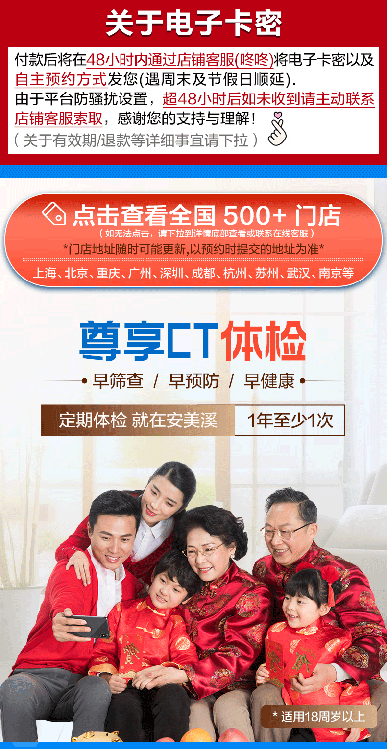 美年大健康瑞慈体检尊享CT体检B套餐男士女士全国成人通用体检卡 高阶版(2人份多减20)(美年瑞慈)(店长推荐) 2个工作日内店铺客服(咚咚)发您电子卡密自主预约
