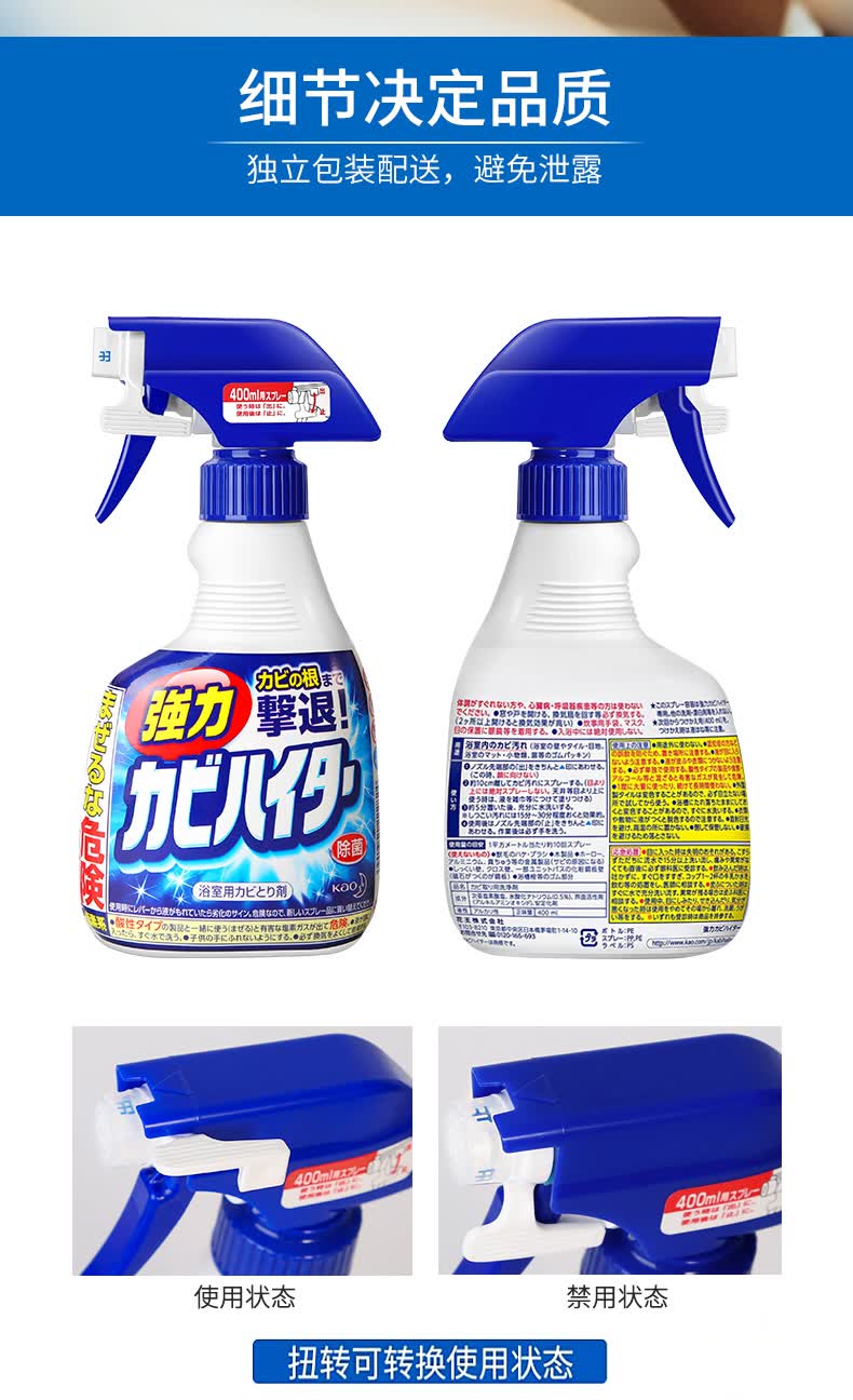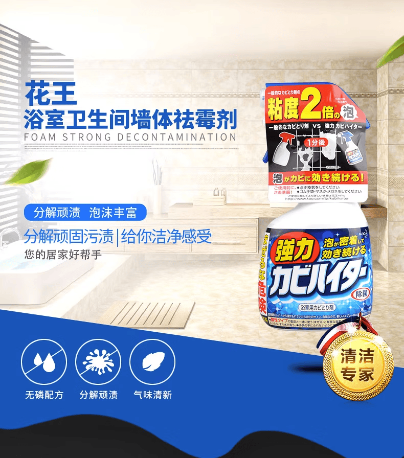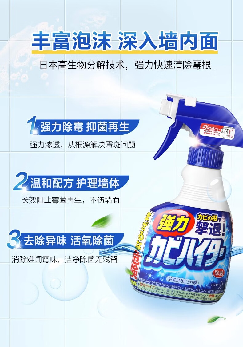 花王(KAO)强力除霉剂400m*2浴室墙面墙体除霉喷雾啫喱瓷砖卫浴清洁清洗剂