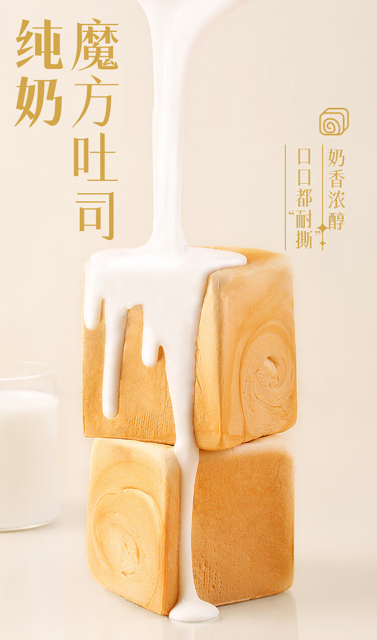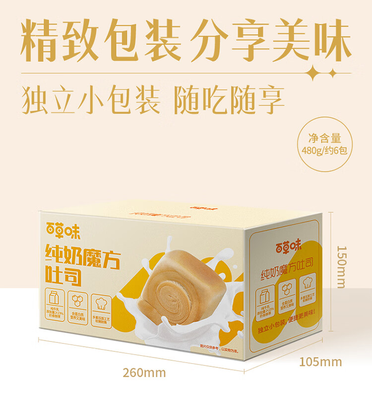 百草味纯奶魔方面包480g手撕面包整箱早餐代餐吐司休闲零食点心元旦团购