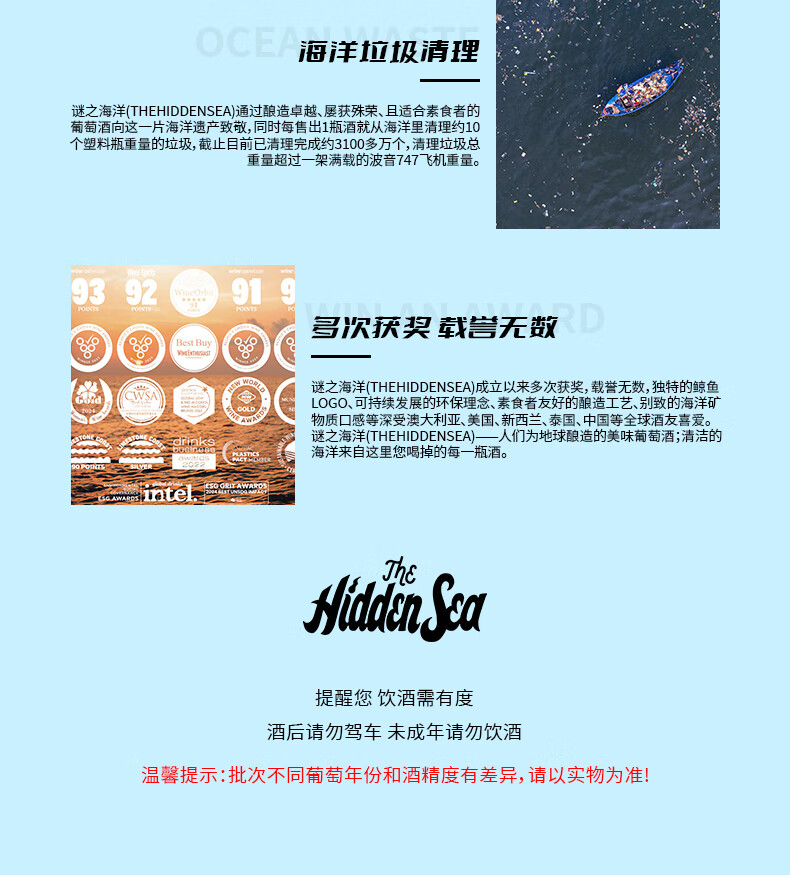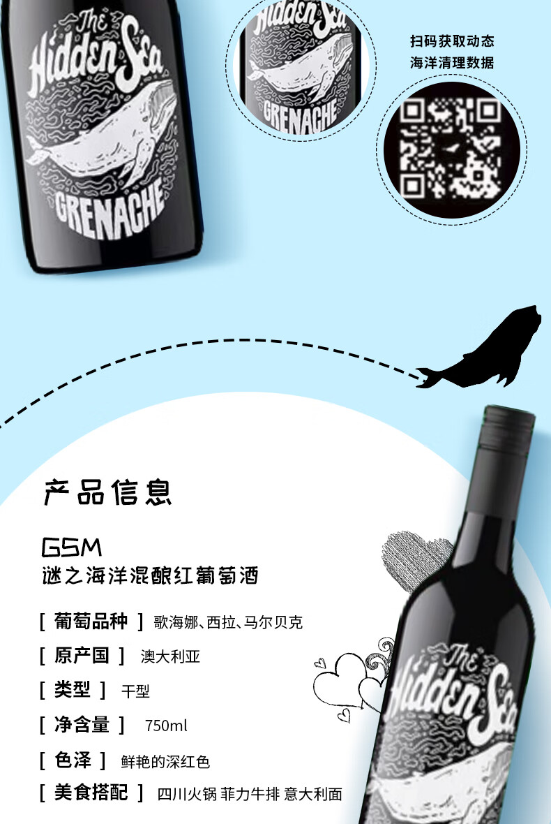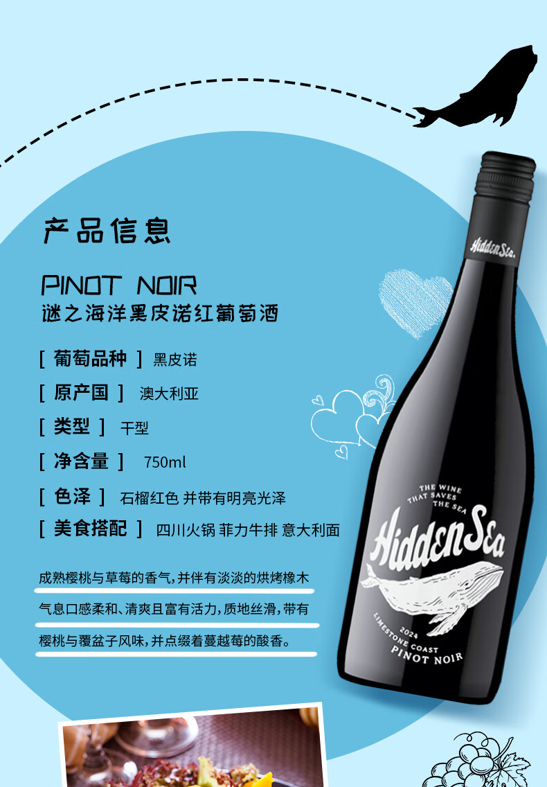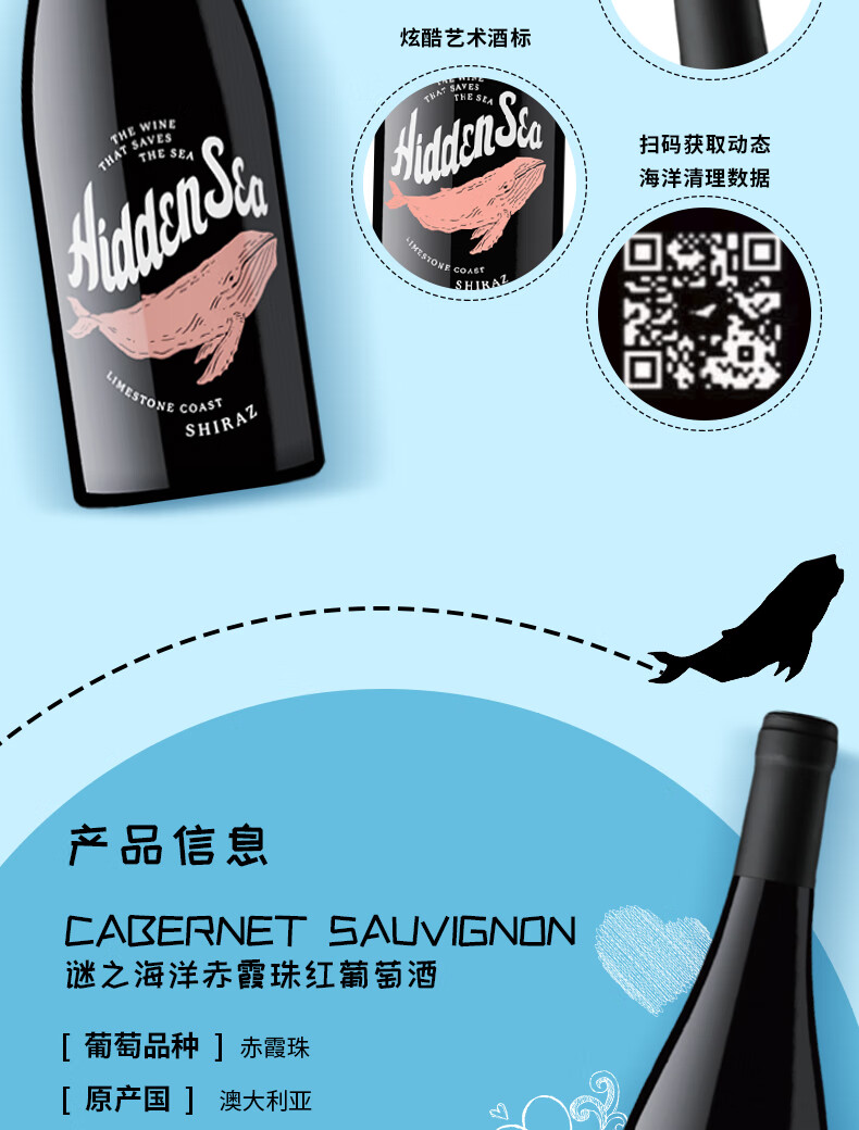 谜之海洋thehiddensea澳洲进口酒 红酒干红葡萄酒750ml ins网红酒 微醺酒 西勒麒麟干红葡萄酒750ml*6箱装