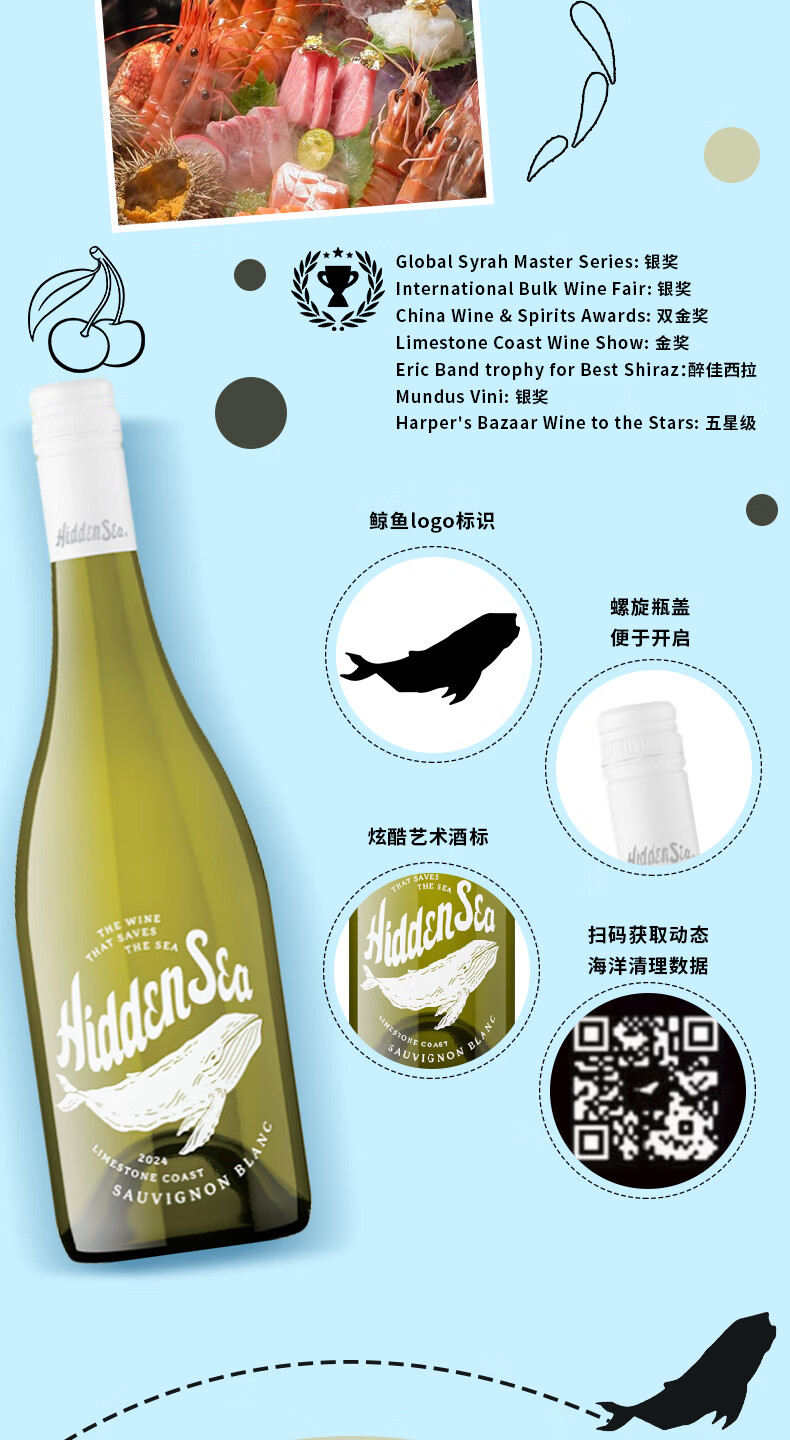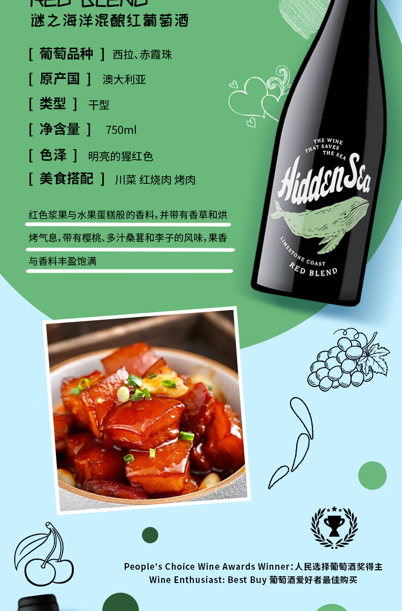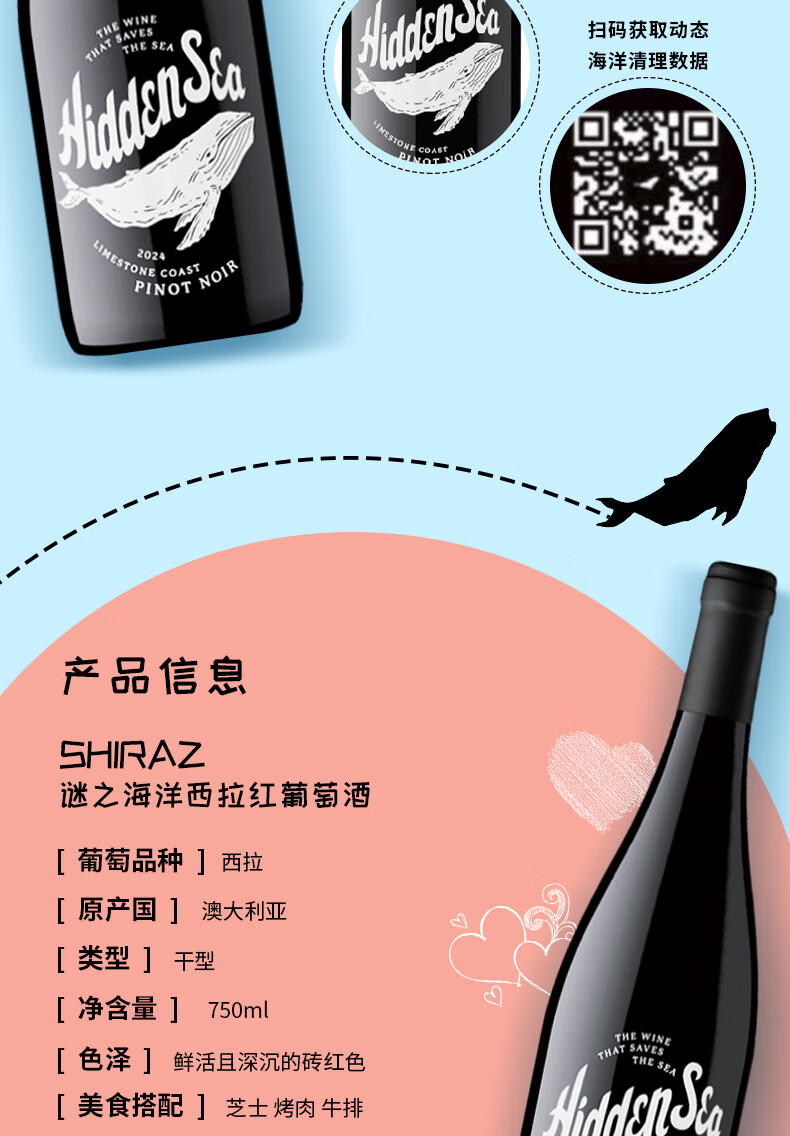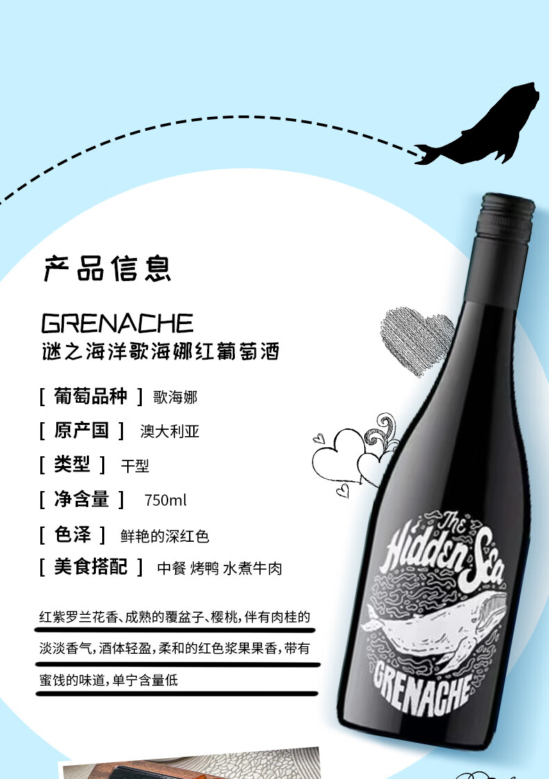 谜之海洋thehiddensea澳洲进口酒 红酒干红葡萄酒750ml ins网红酒 微醺酒 西勒麒麟干红葡萄酒750ml*6箱装