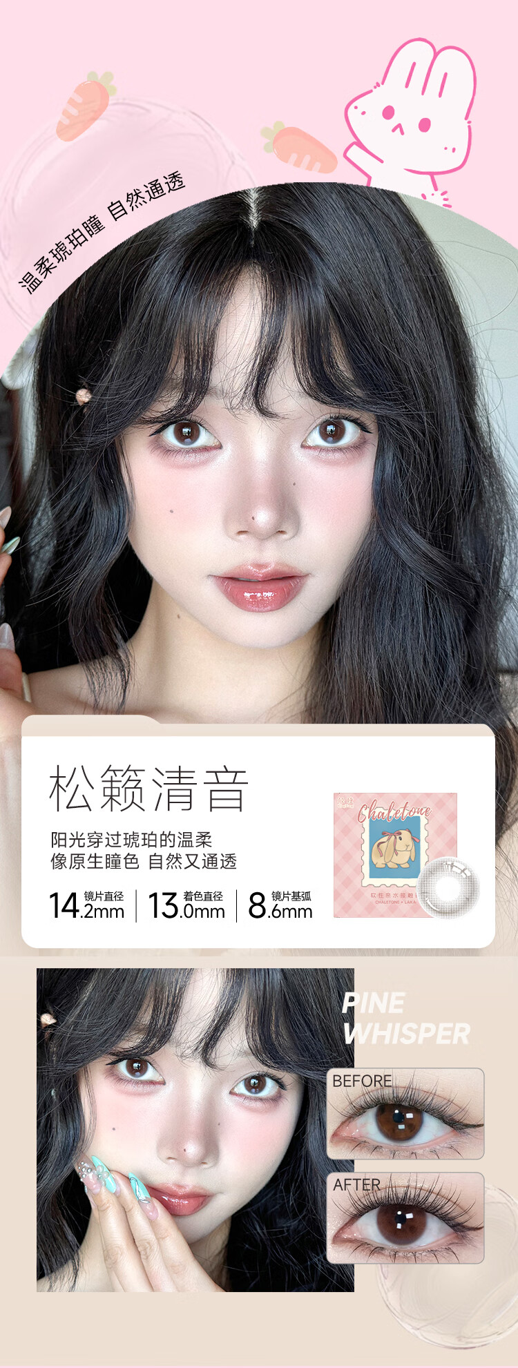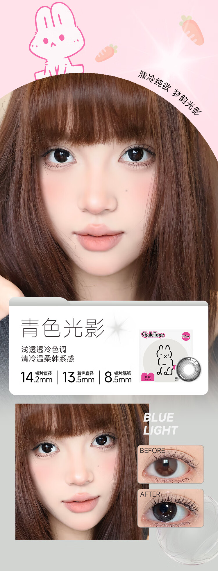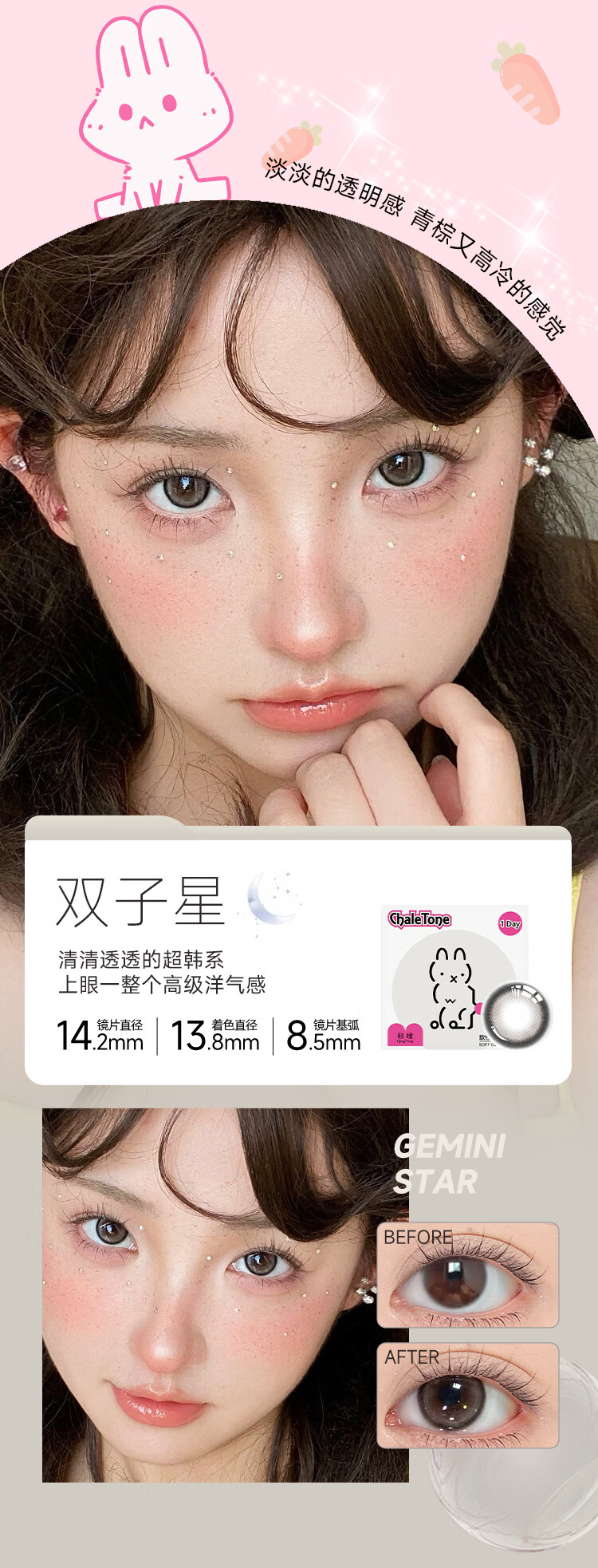 轻瞳美瞳自然款水润舒适新手三明治工艺日抛【12片装】彩色隐形眼镜 【双子星】青棕又高冷-6片2盒装 100度