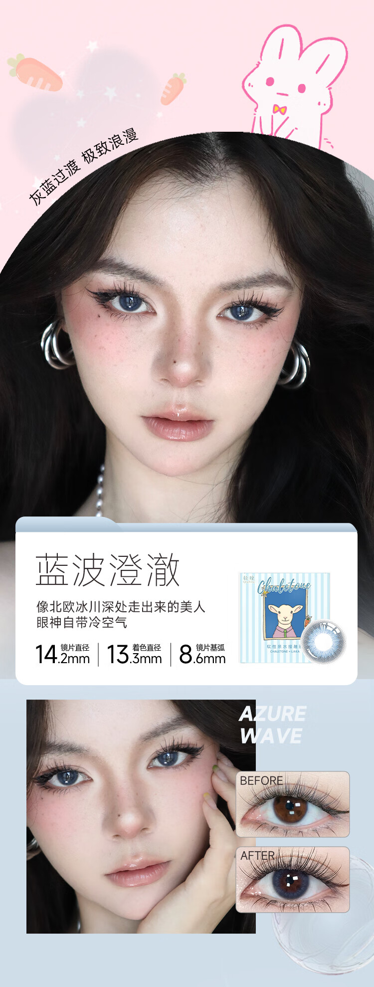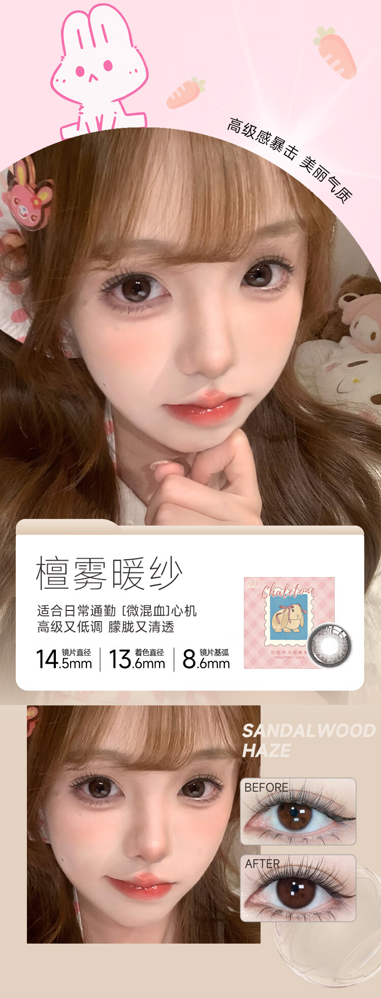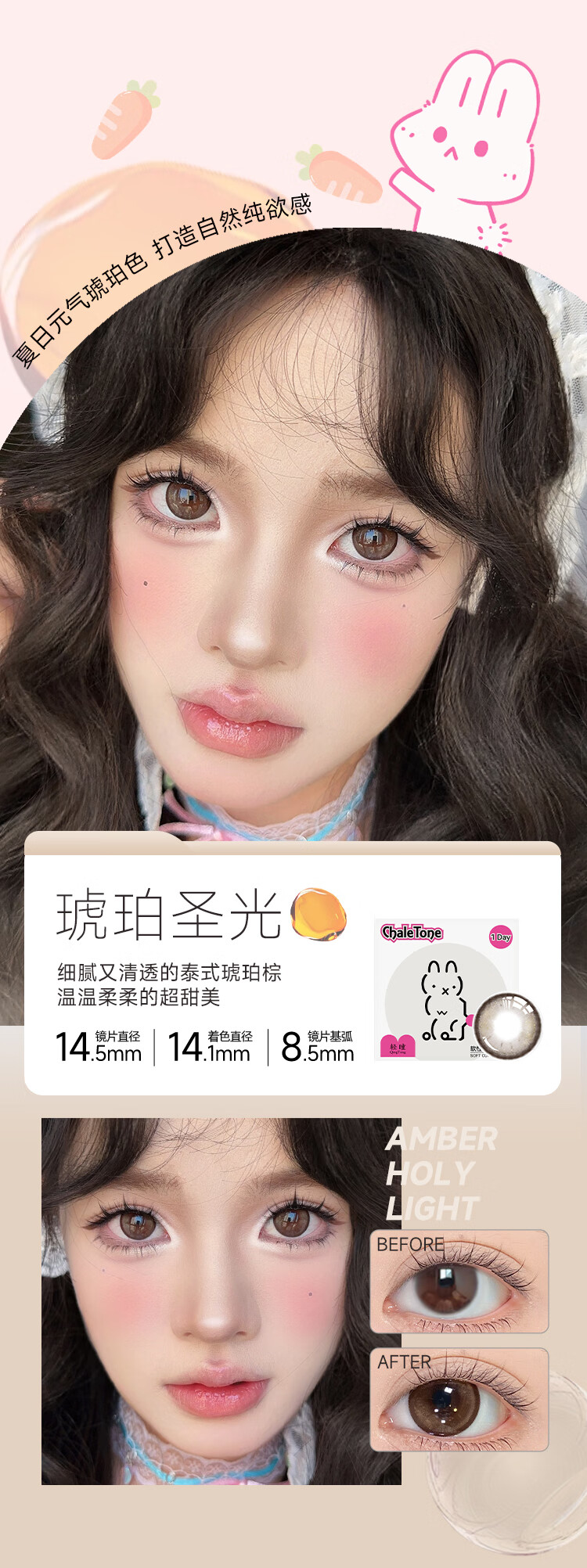轻瞳美瞳自然款水润舒适新手三明治工艺日抛【12片装】彩色隐形眼镜 【双子星】青棕又高冷-6片2盒装 100度
