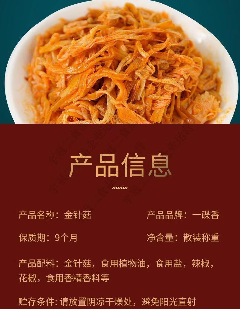 金针菇500g独立小包装香辣即食下饭菜麻辣素食休闲零食小吃 金针菇500g