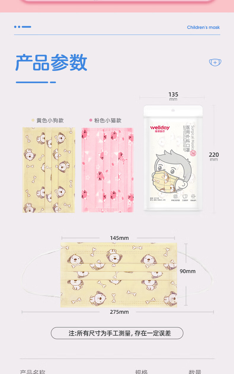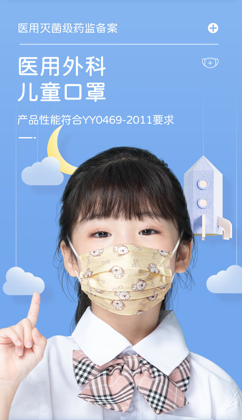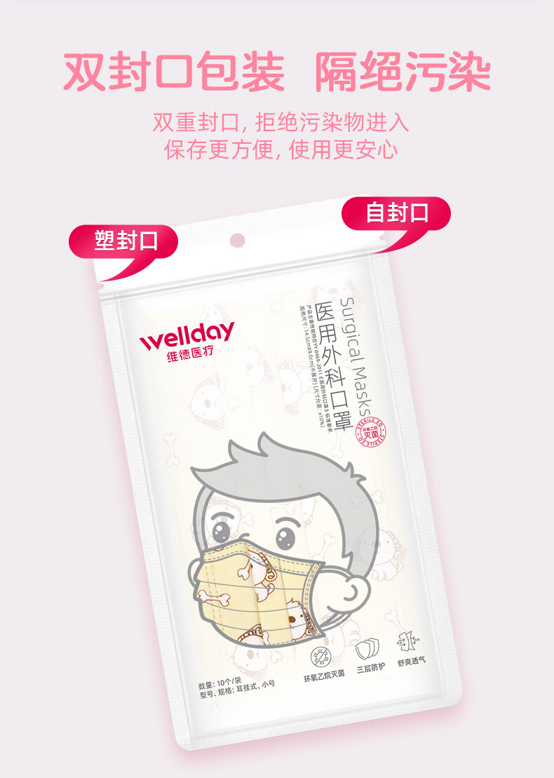维德(WELLDAY)儿童医用外科口罩三层防护灭菌级防病毒细节飞沫秋冬季透气防风 医用外科灭菌级【100只】小黄狗