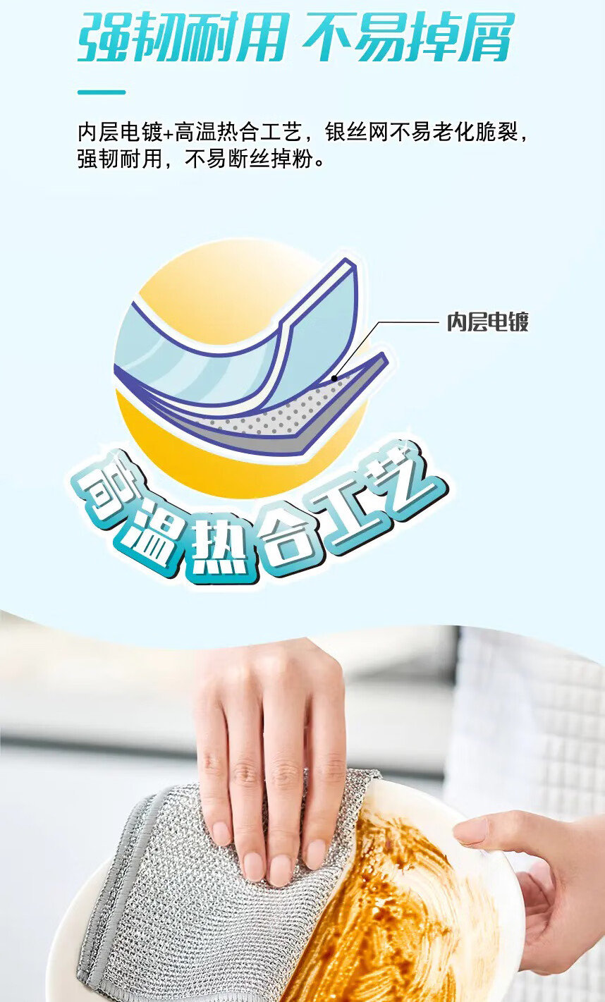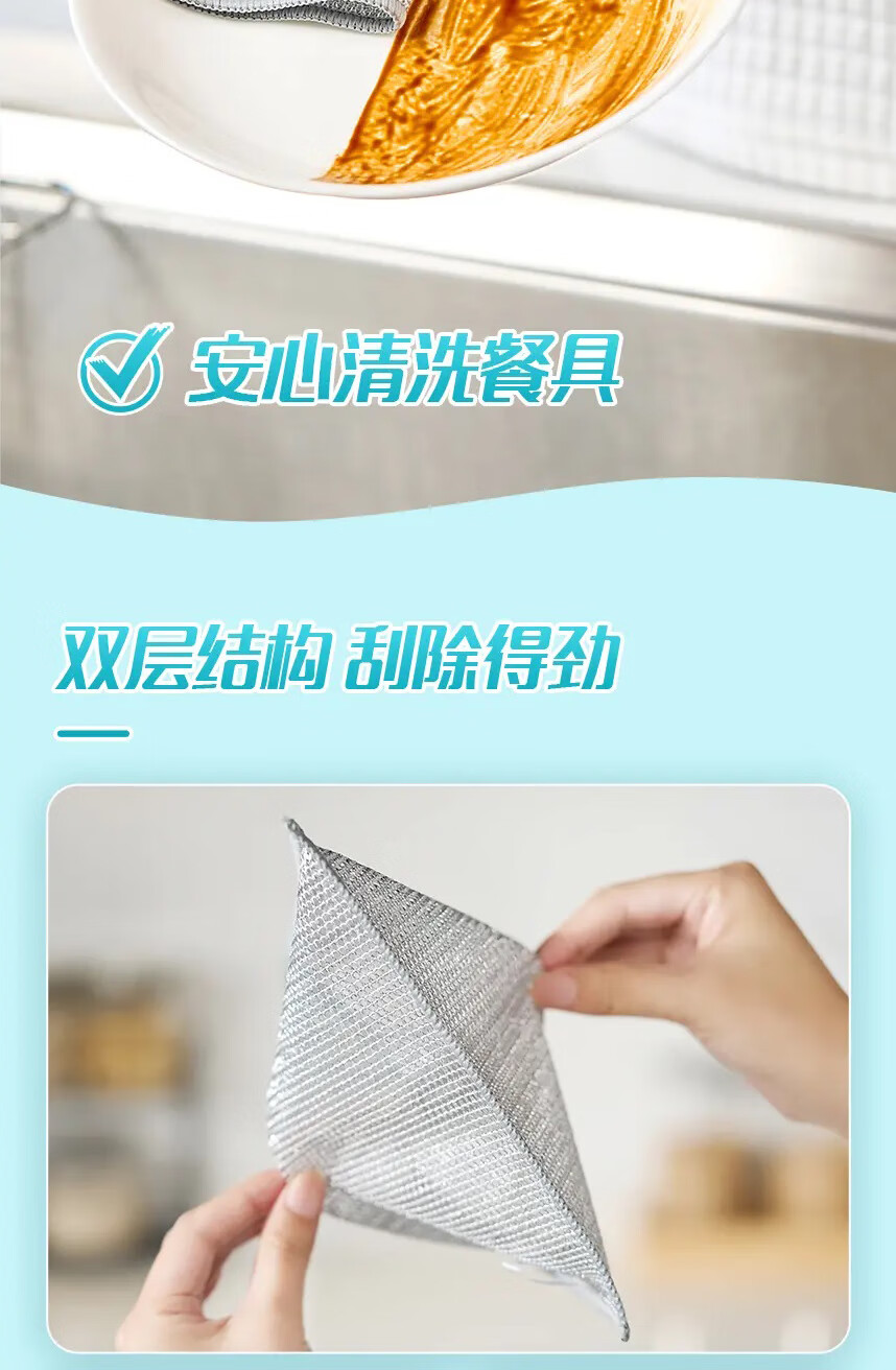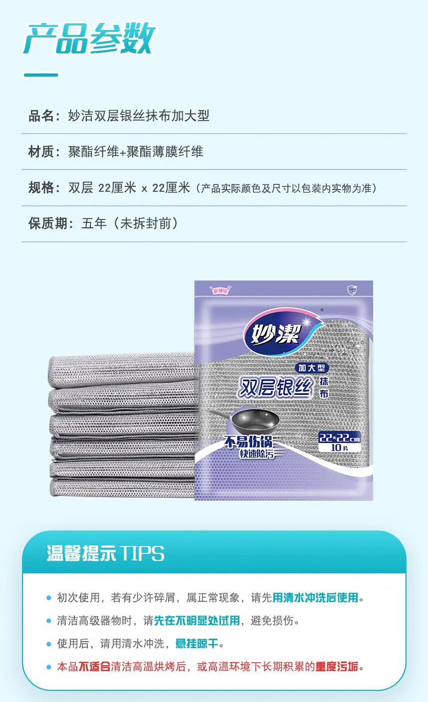 妙洁双层银丝抹布加大型 厨房刷锅类钢丝球不易伤锅洗碗布 1包共10片