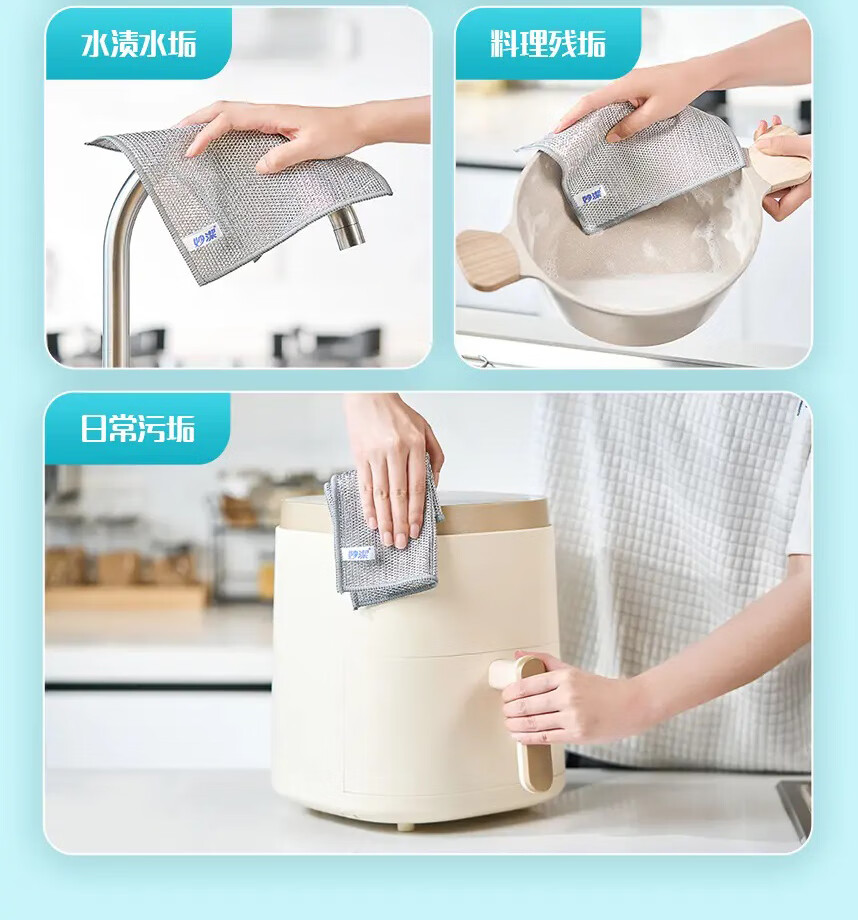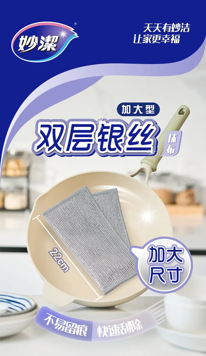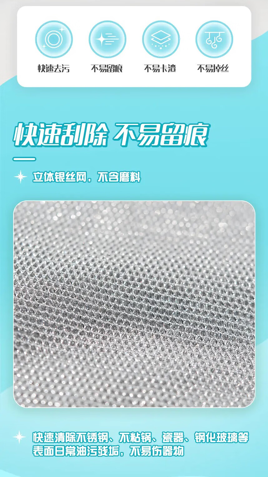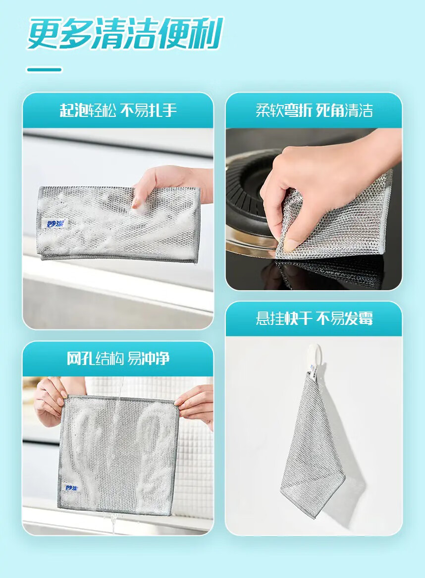 妙洁双层银丝抹布加大型 厨房刷锅类钢丝球不易伤锅洗碗布 1包共10片