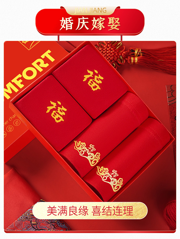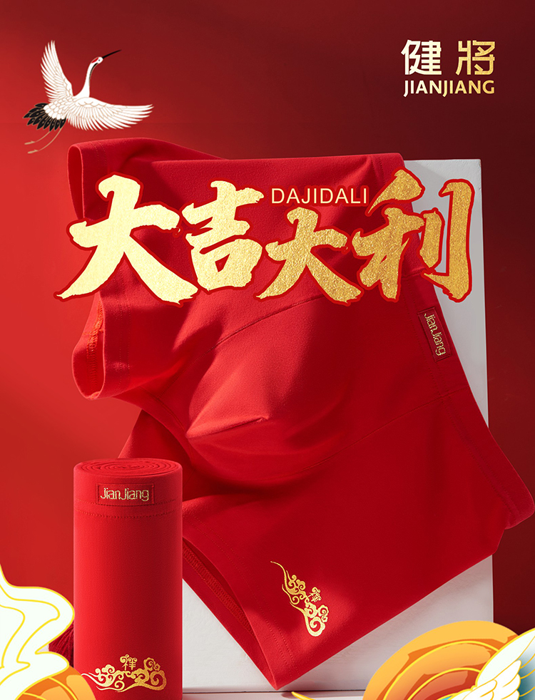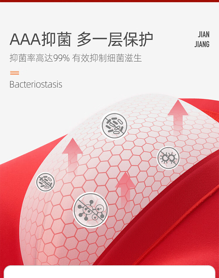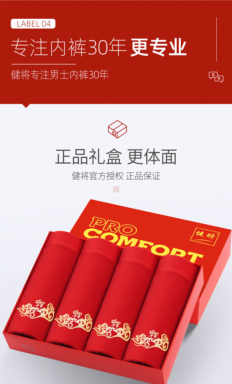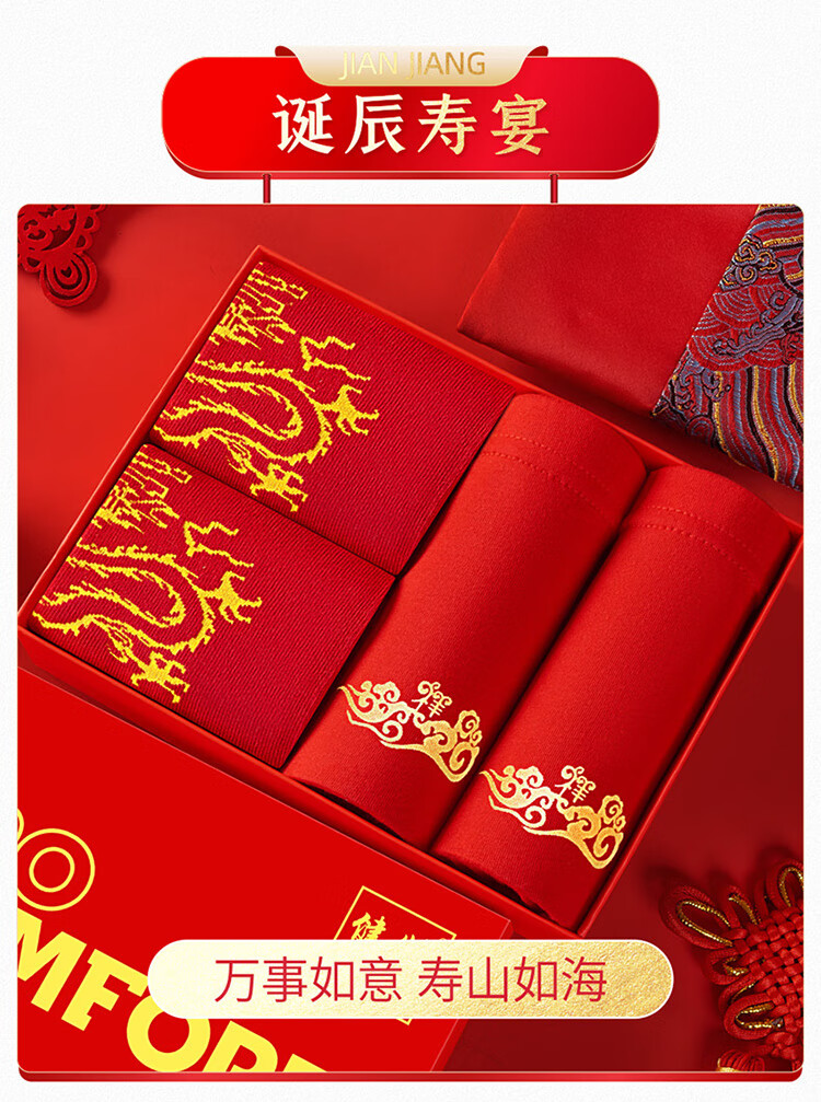 健将男士红内裤男马年本命年纯棉抑菌平角裤大码肥佬透气男式四角裤头 中国红装内裤 3条 5XL (腰3.2-3.4尺 重190-210斤)