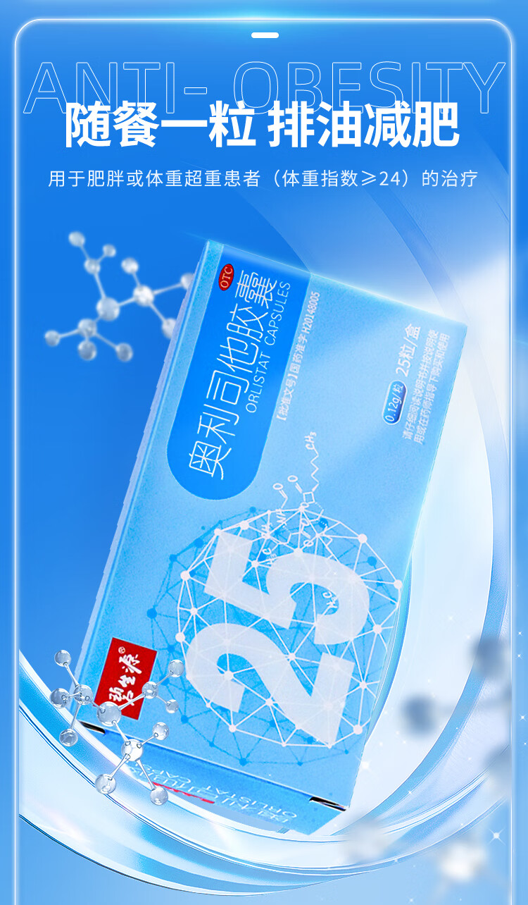 [碧生源]奥利司他胶囊 0.12g*25粒 1盒装 0.12g*25粒 减肥 排油瘦身减脂 OTC减肥药 正品奥利司他国药准字 排油体验