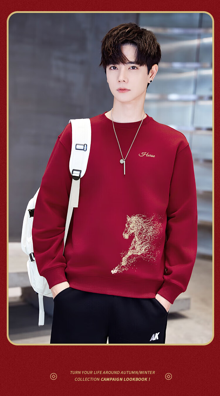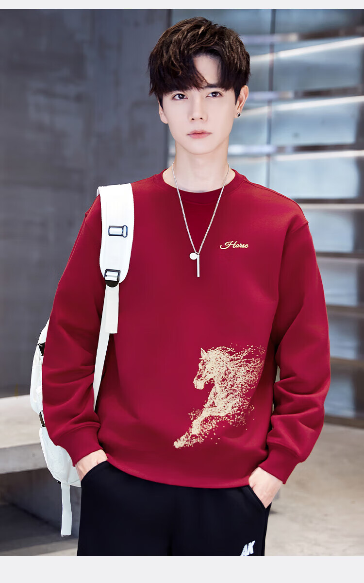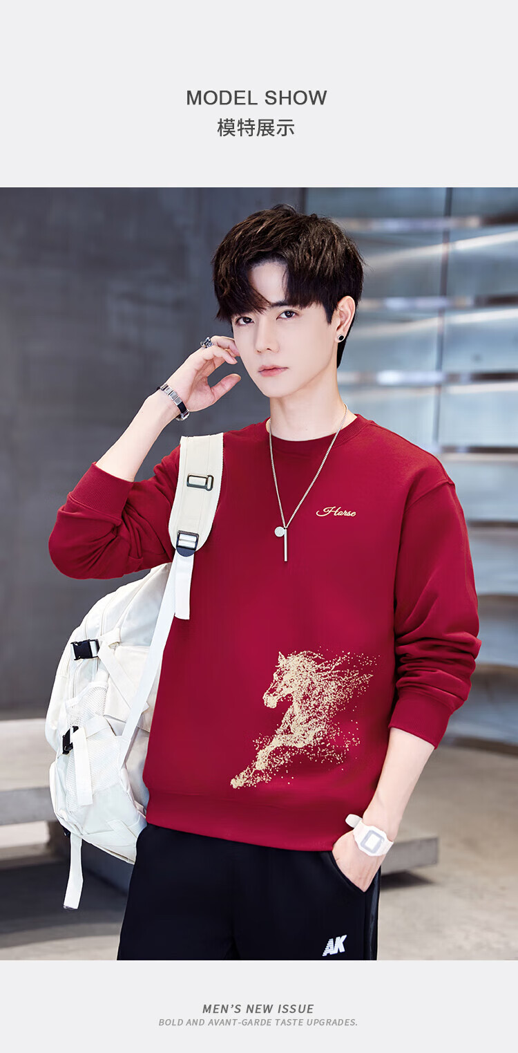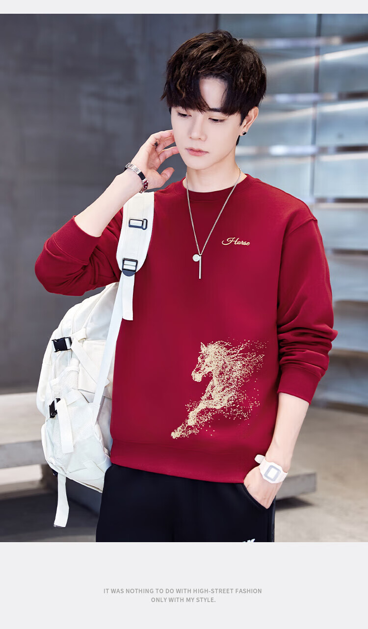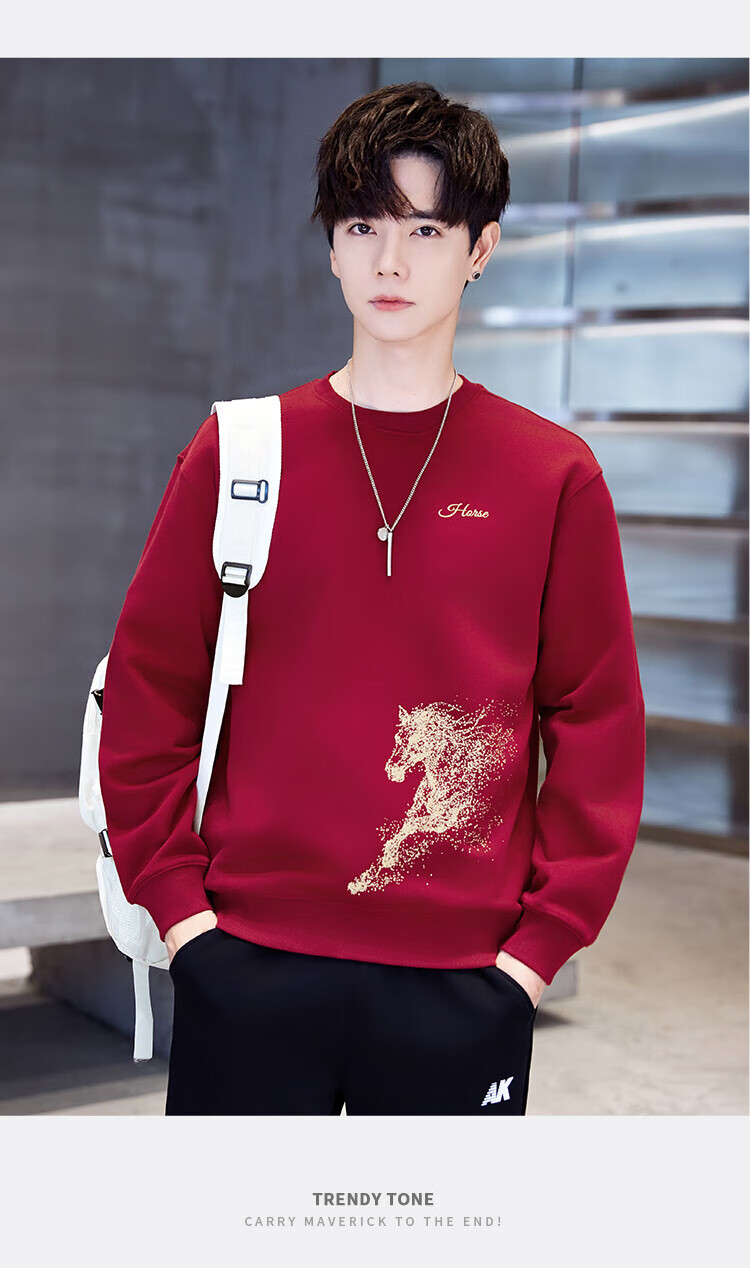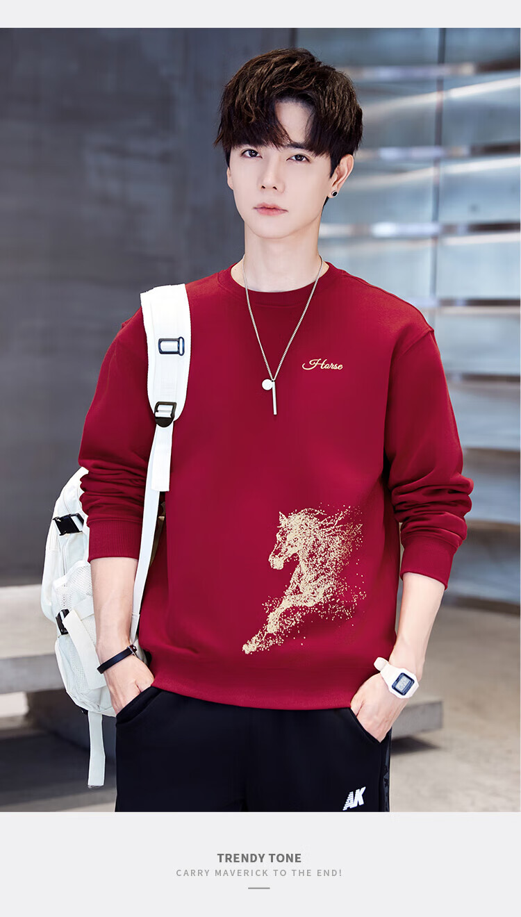 TEEK马年本命年衣服重磅纯棉男士卫衣国潮酒红色生肖印花拜年喜庆外套 【常规款】YW2933酒红色 L