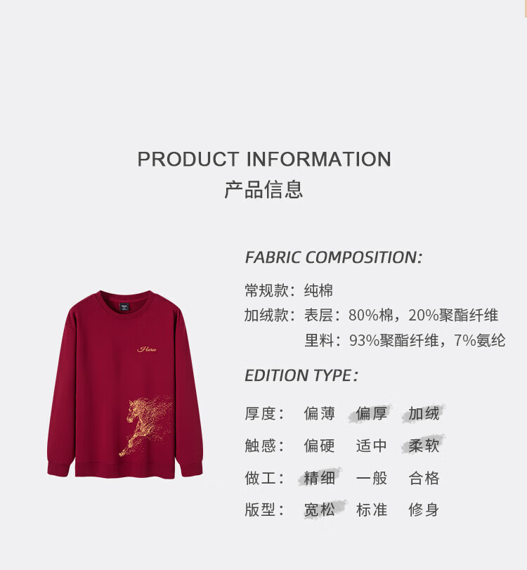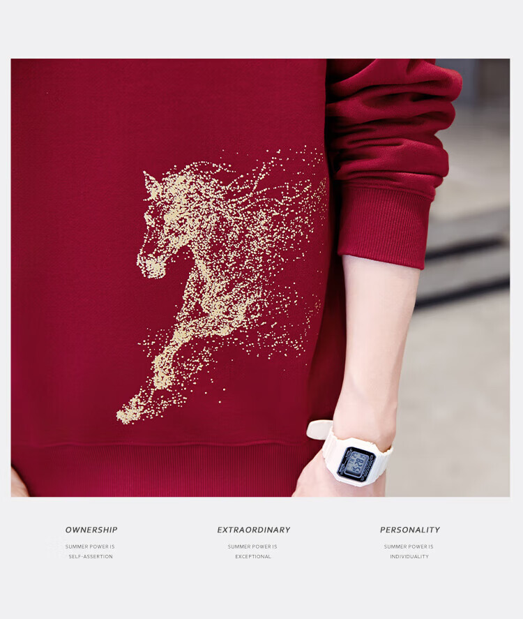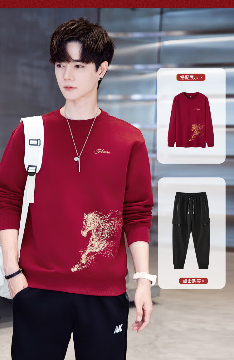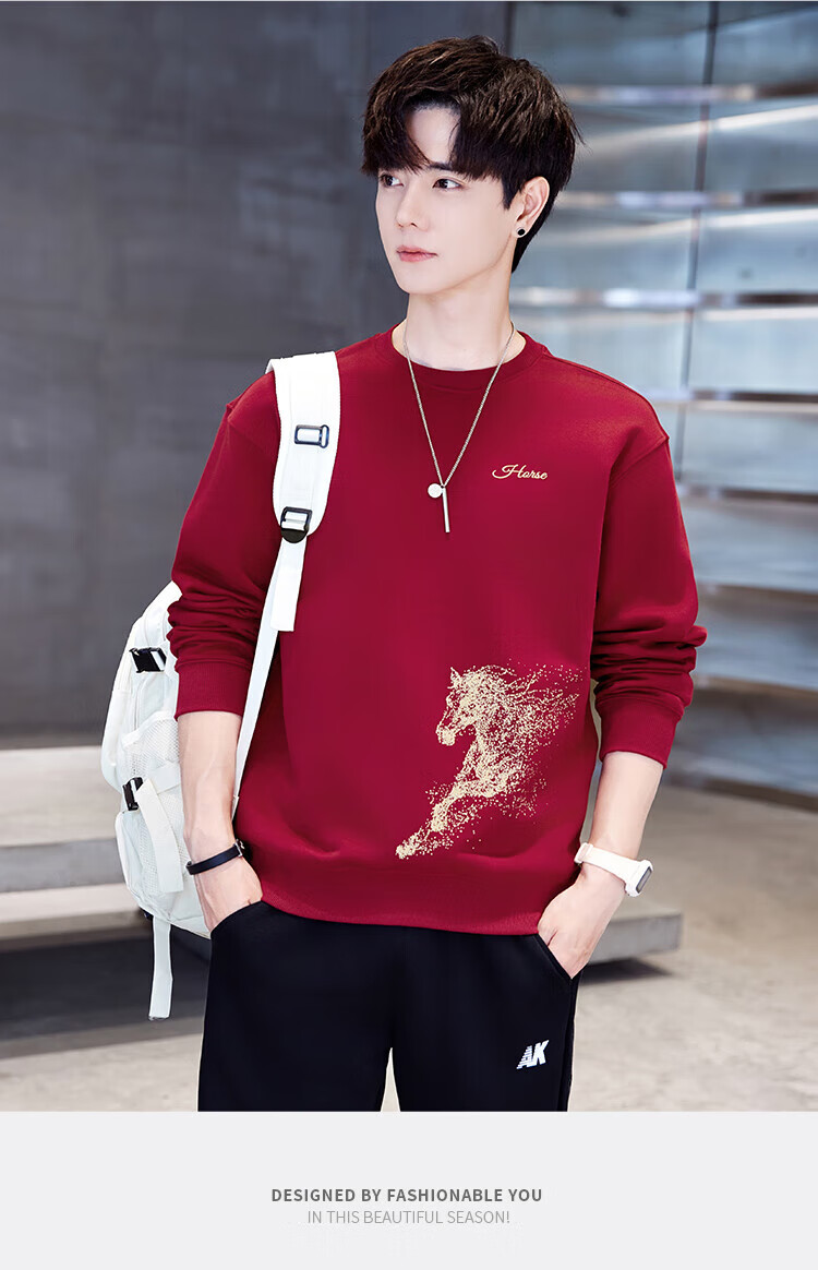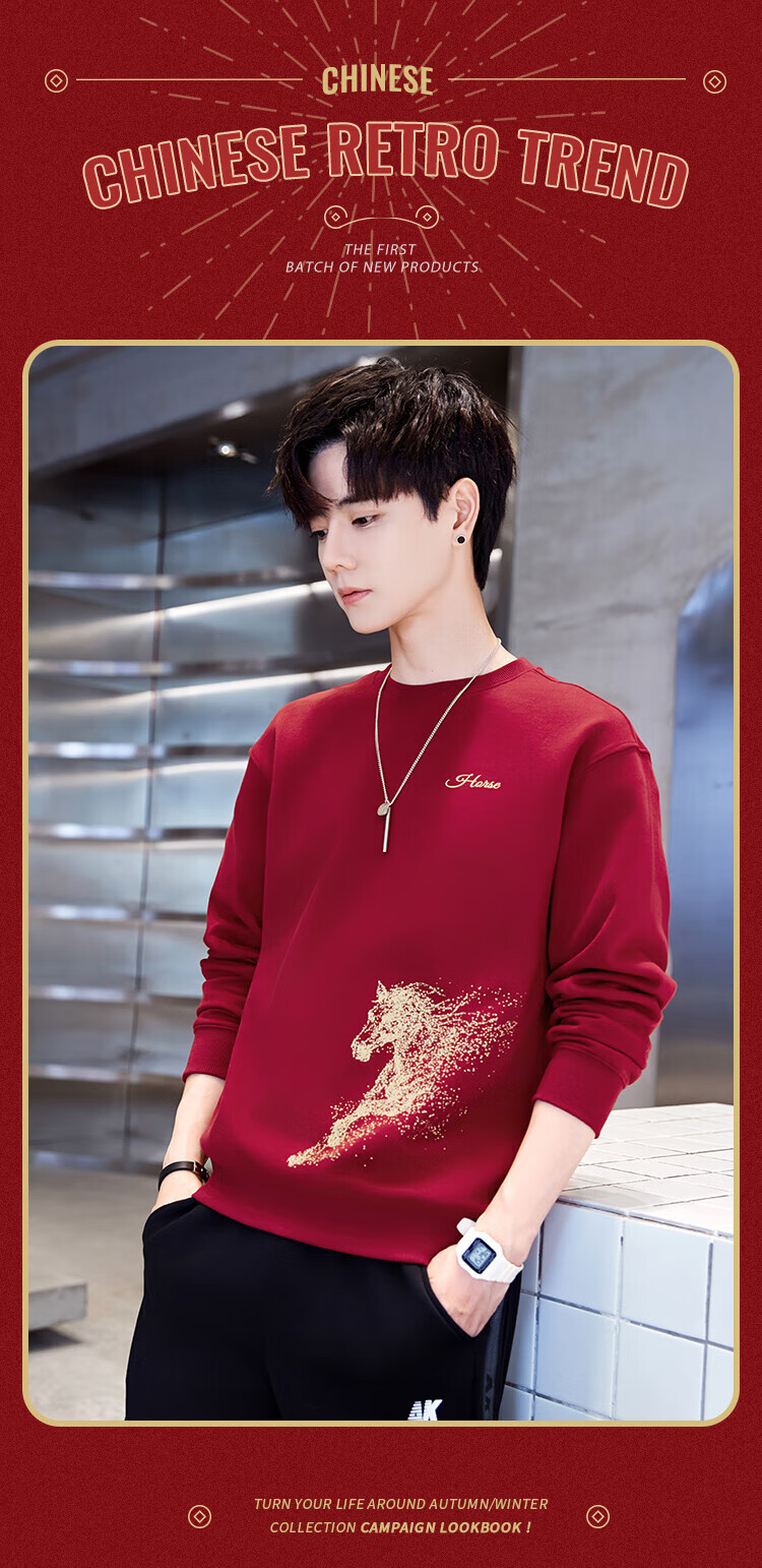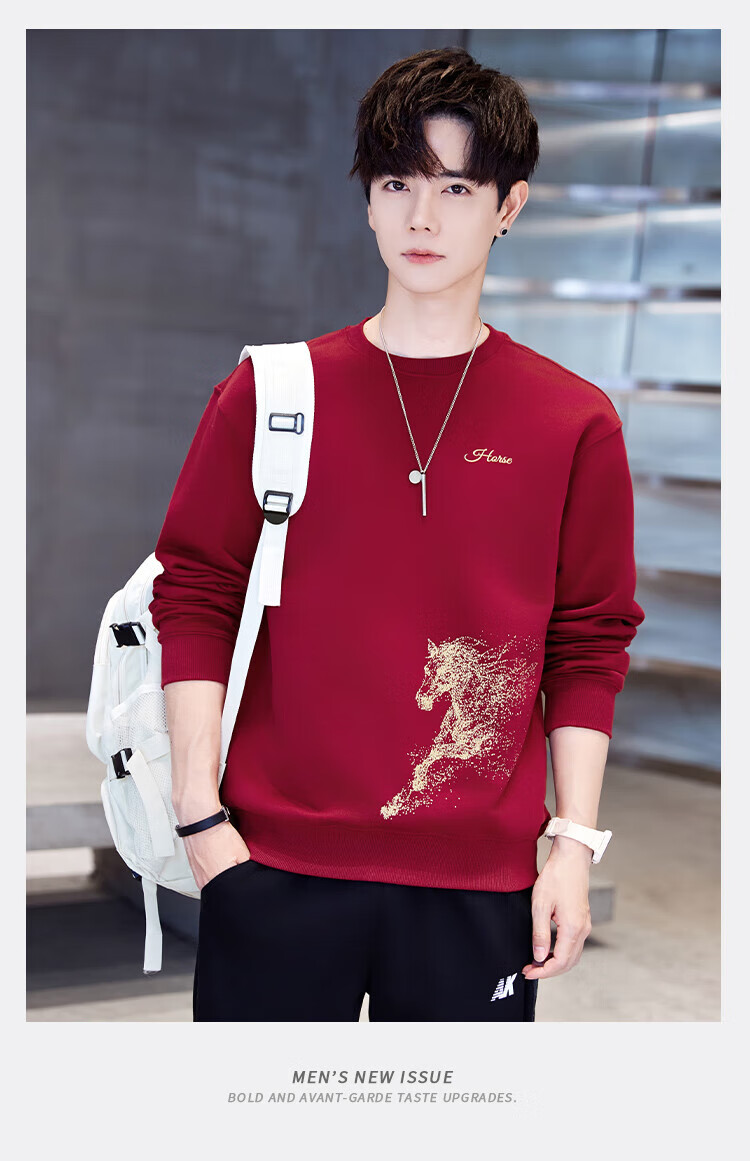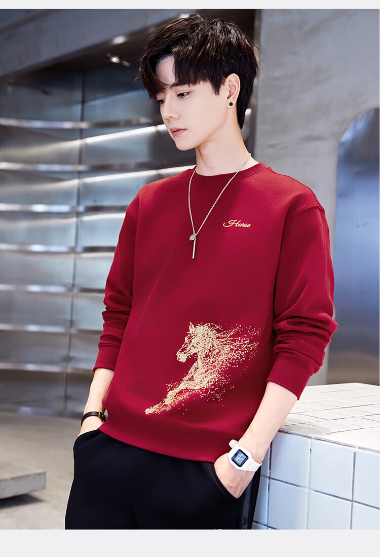 TEEK马年本命年衣服重磅纯棉男士卫衣国潮酒红色生肖印花拜年喜庆外套 【常规款】YW2933酒红色 L